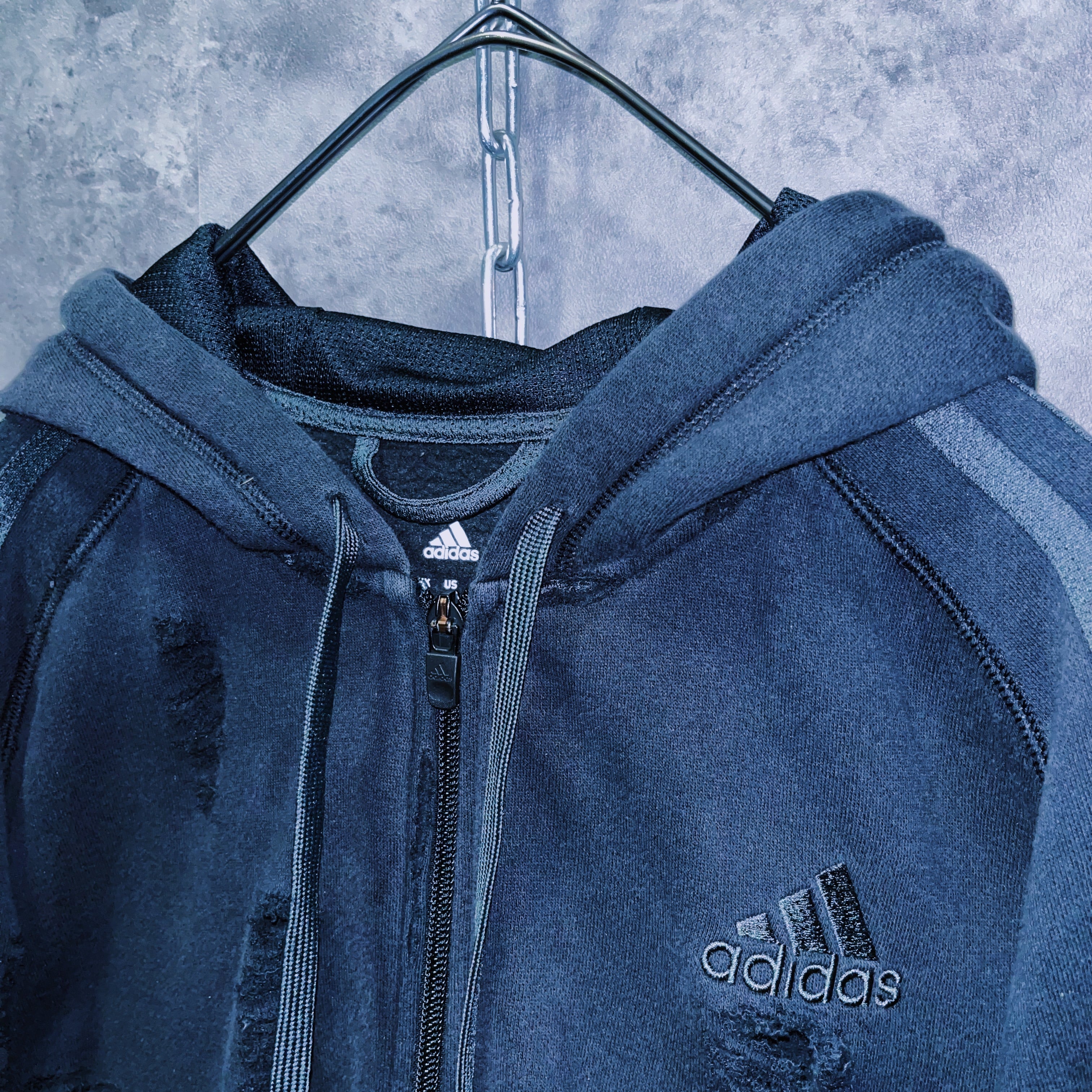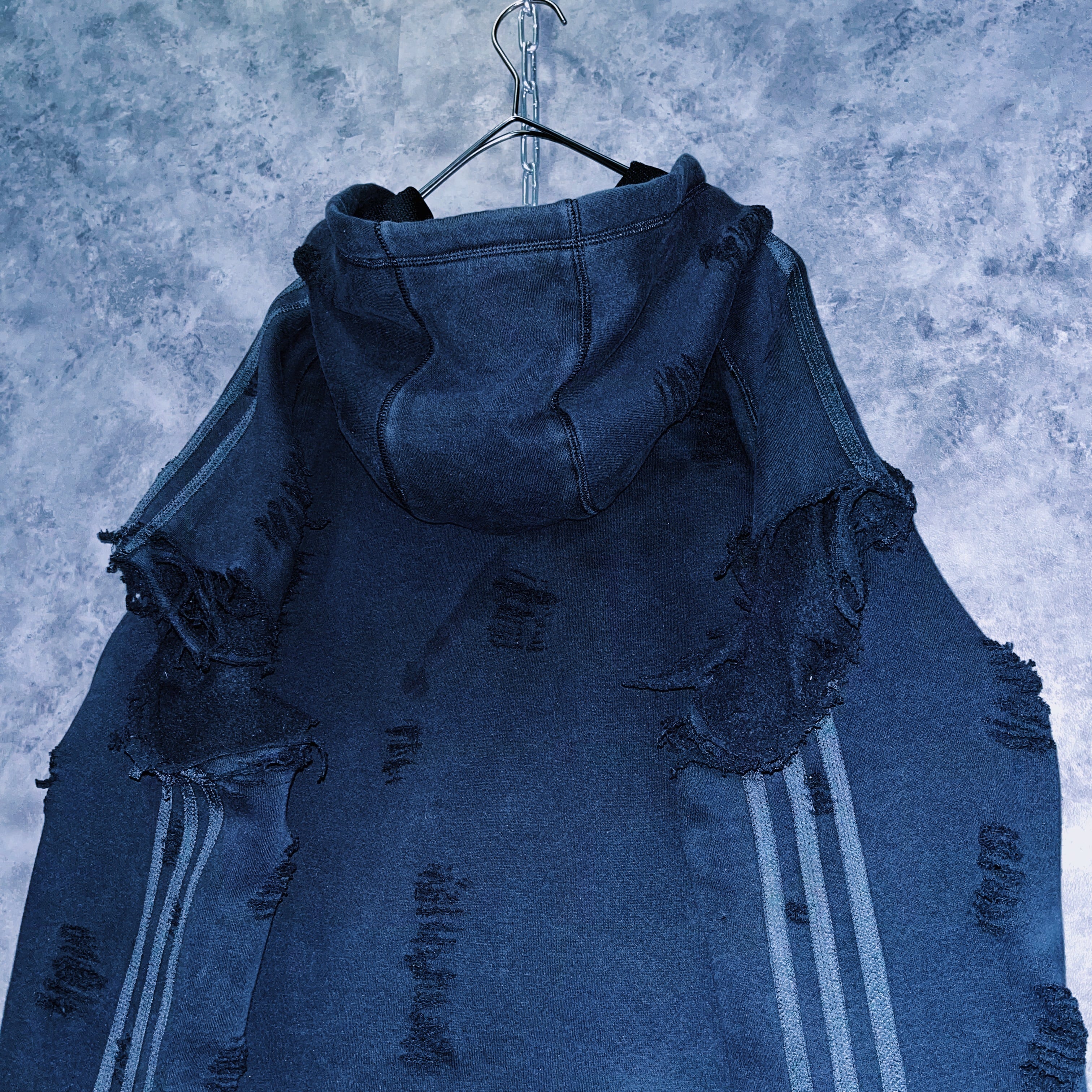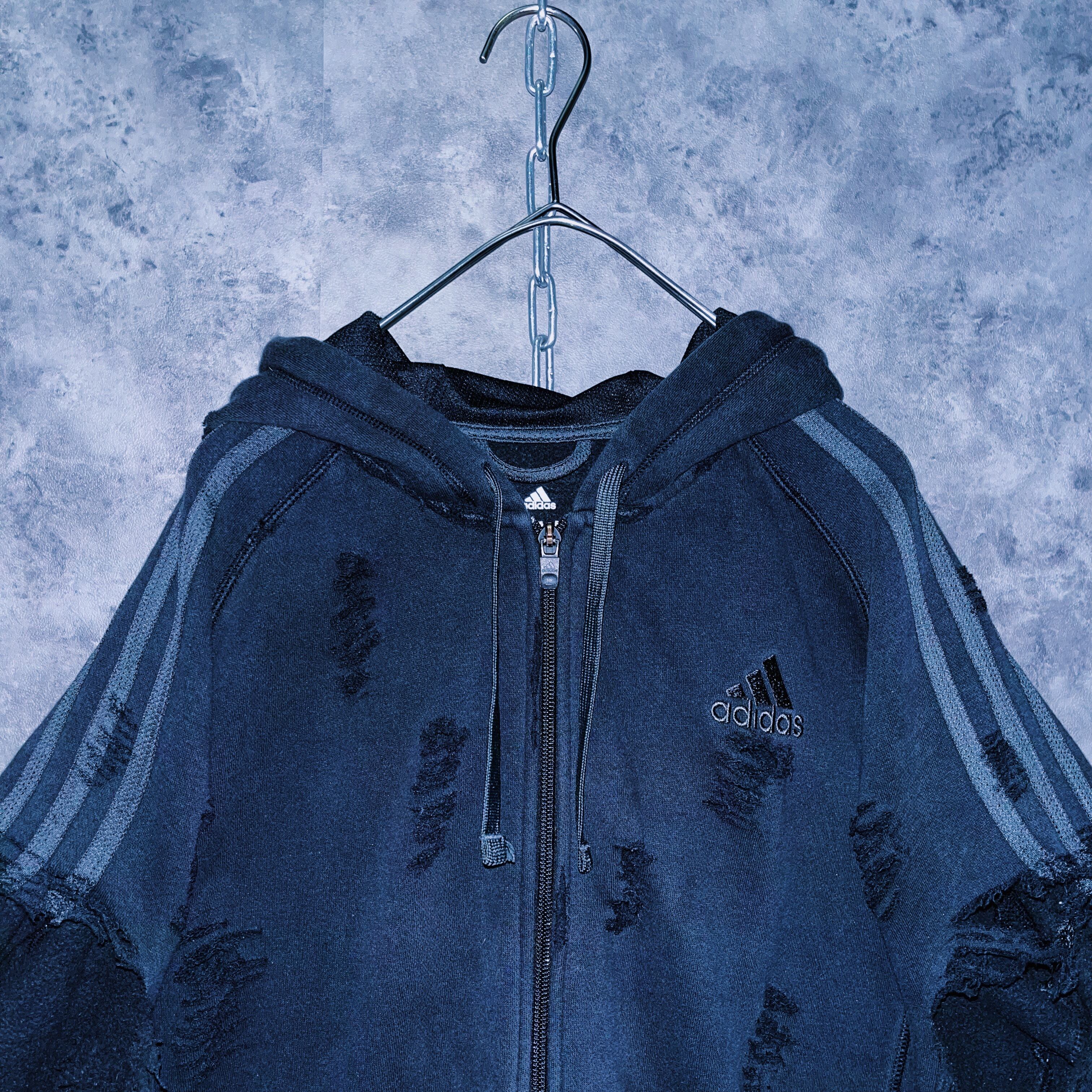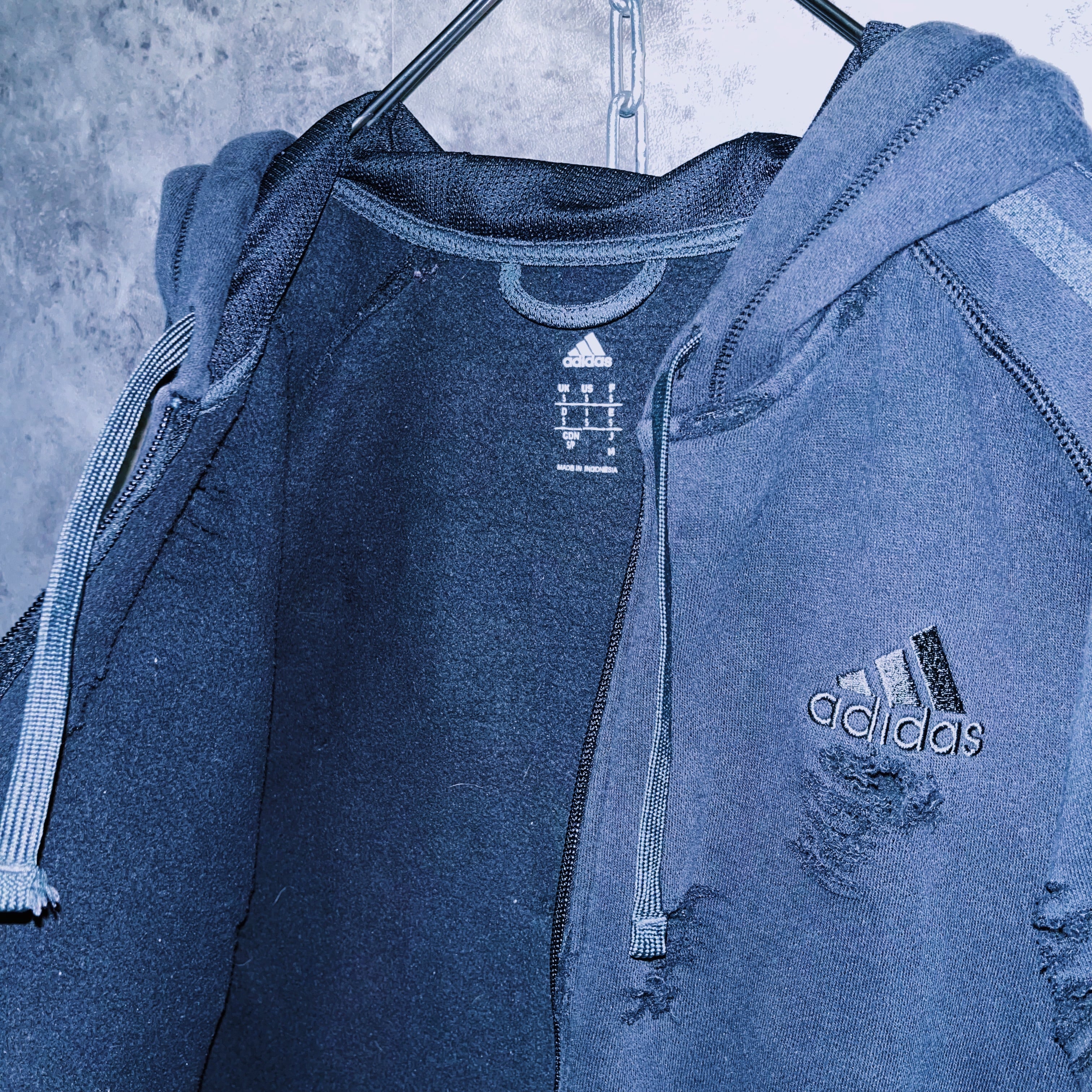 ヴィンテージ“adidas”スリーストライプデザインボロカスタムジップフーディ
