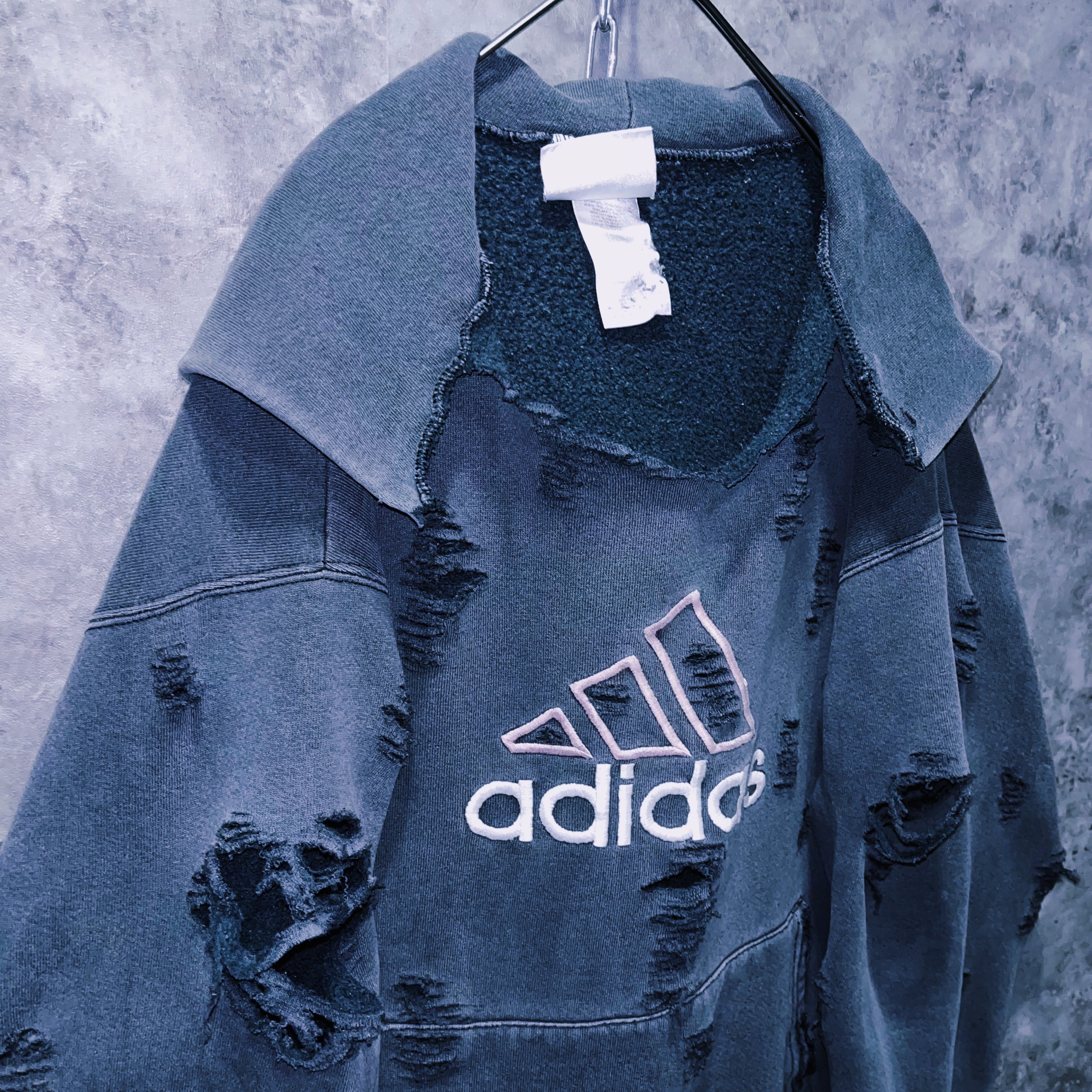 ヴィンテージ“adidas”パフォーマンスロゴエンブロイダリーデザインボロカスタムスウェットフーディ