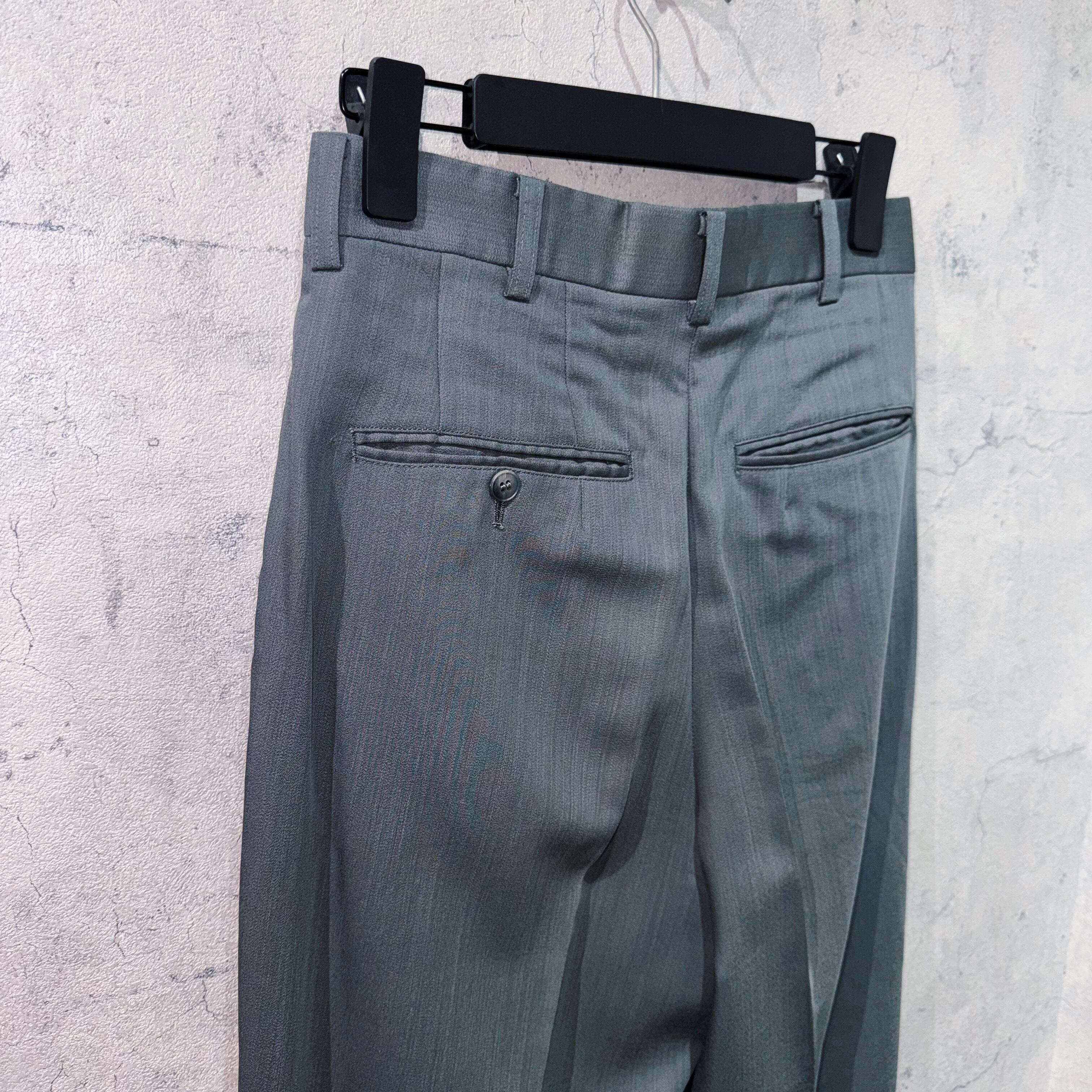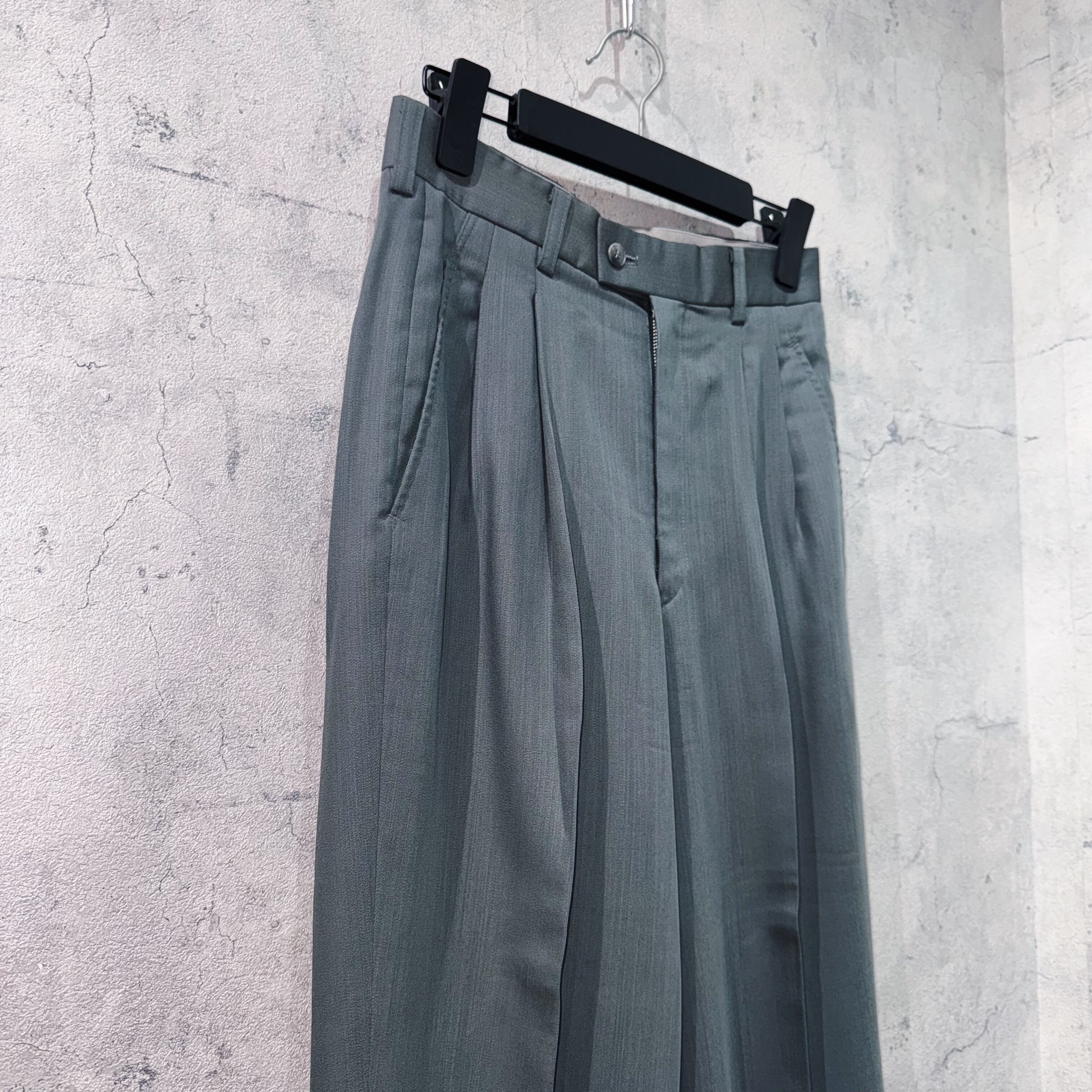 ジャケットはダブルでパワーショルダー、パンツはセンタープレスをあしらった筒状の美しいシルエットとで、セットでの着用時は圧巻の佇まい。
