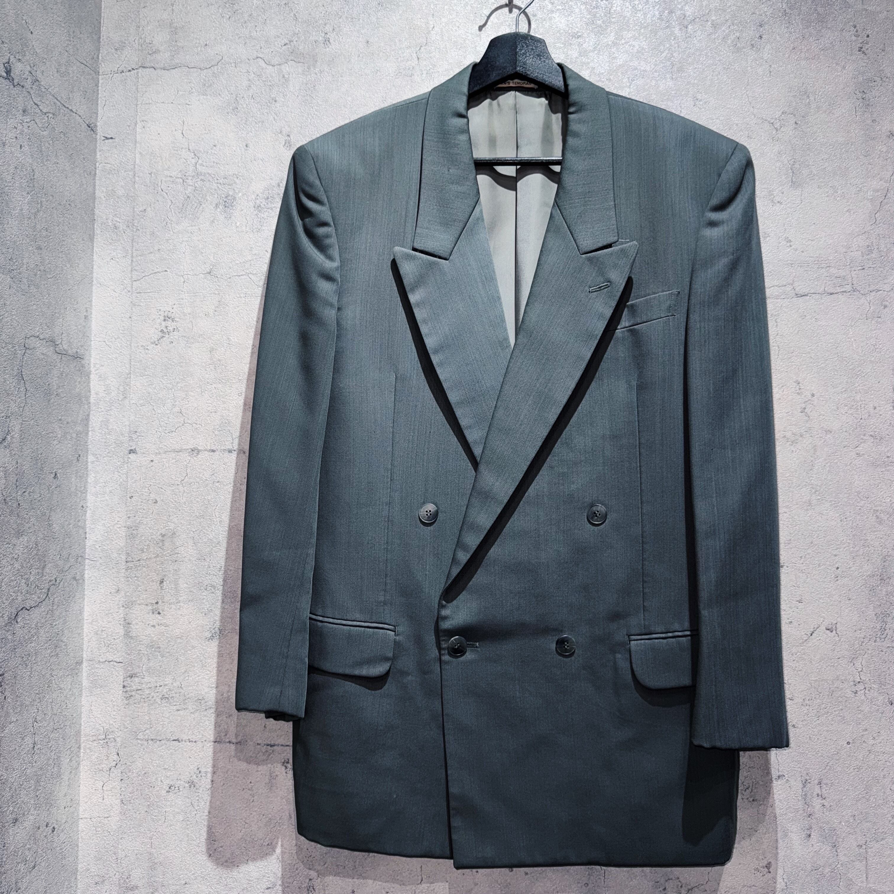 80年代アンティークグリーンカラークアトロボタンダブルブレストセットアップ