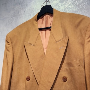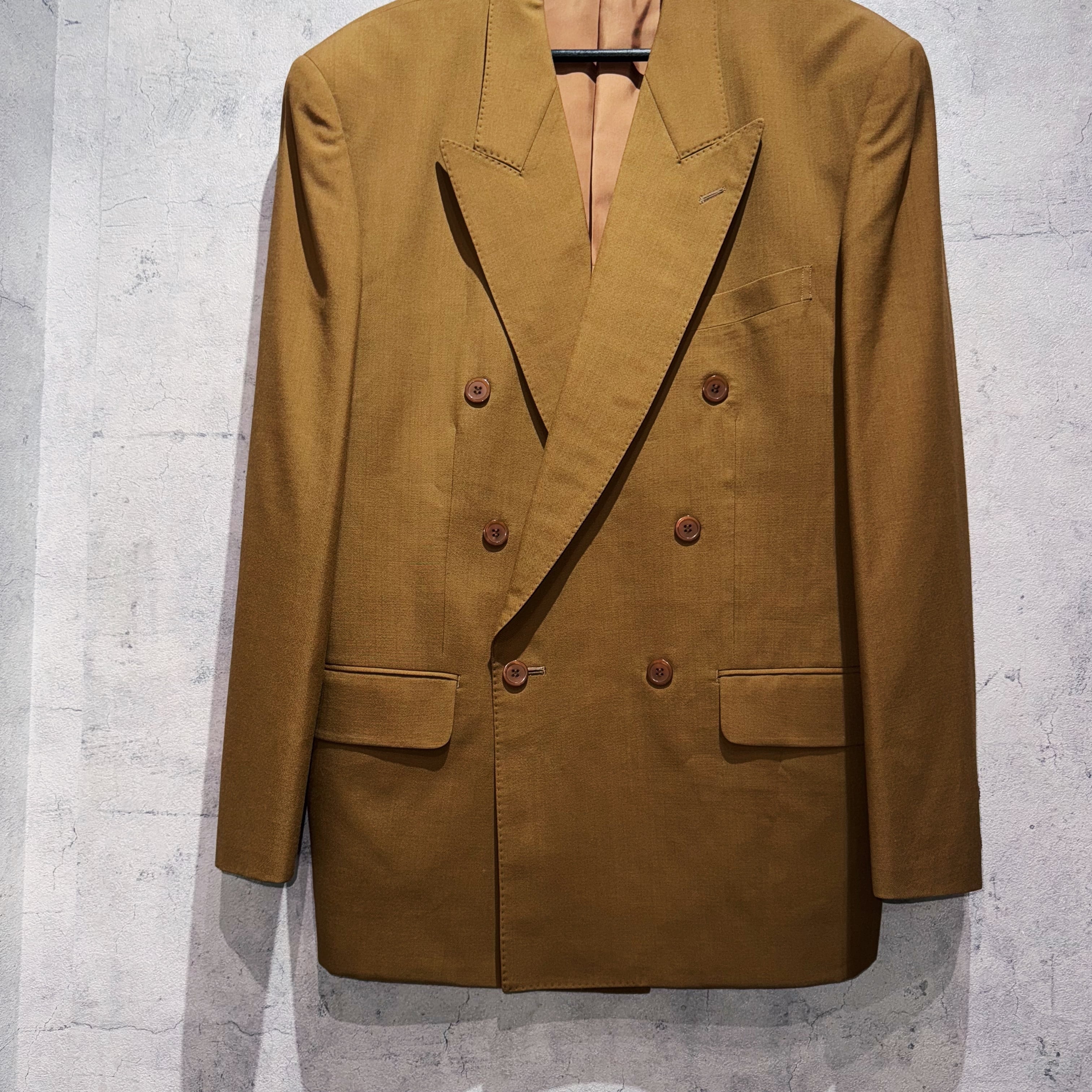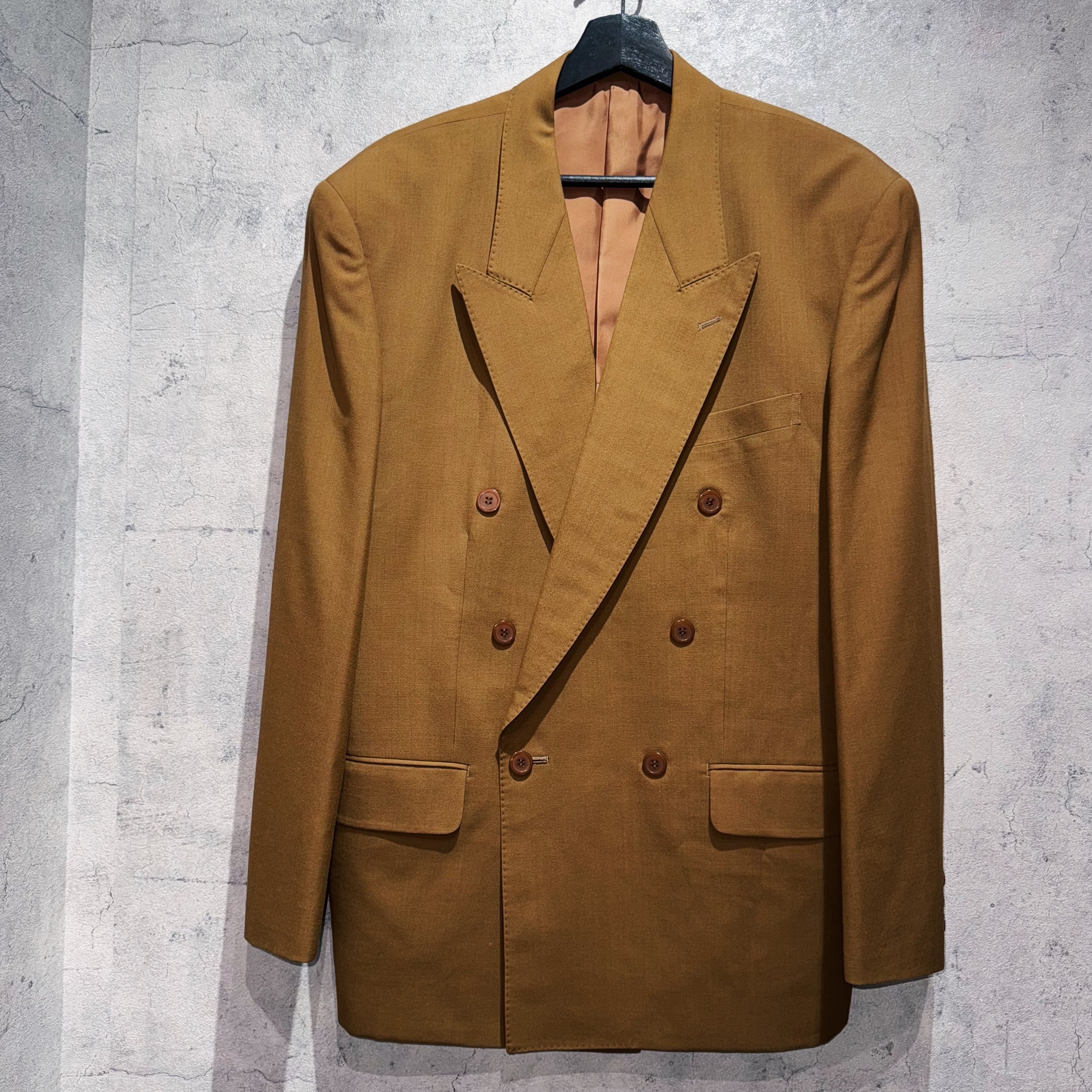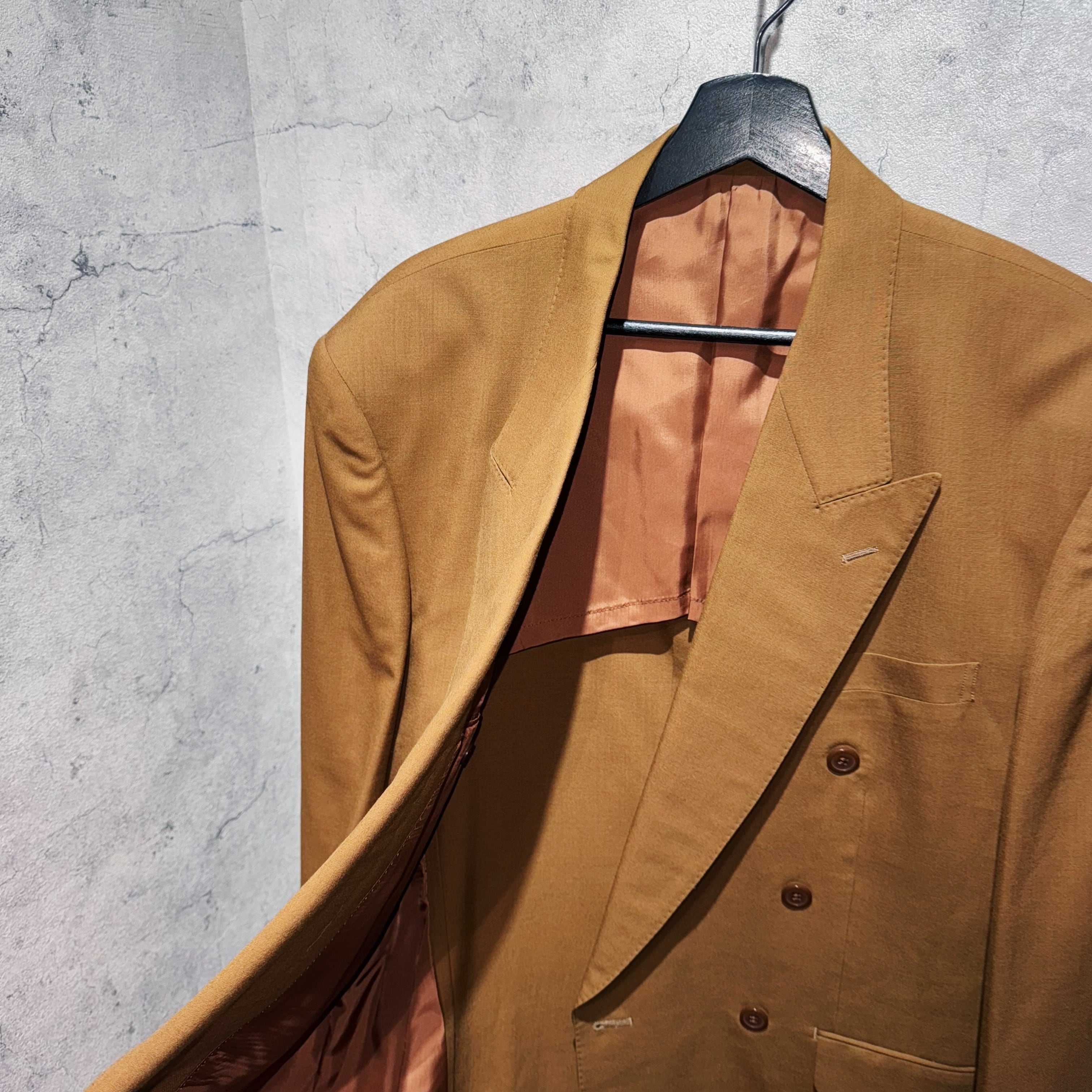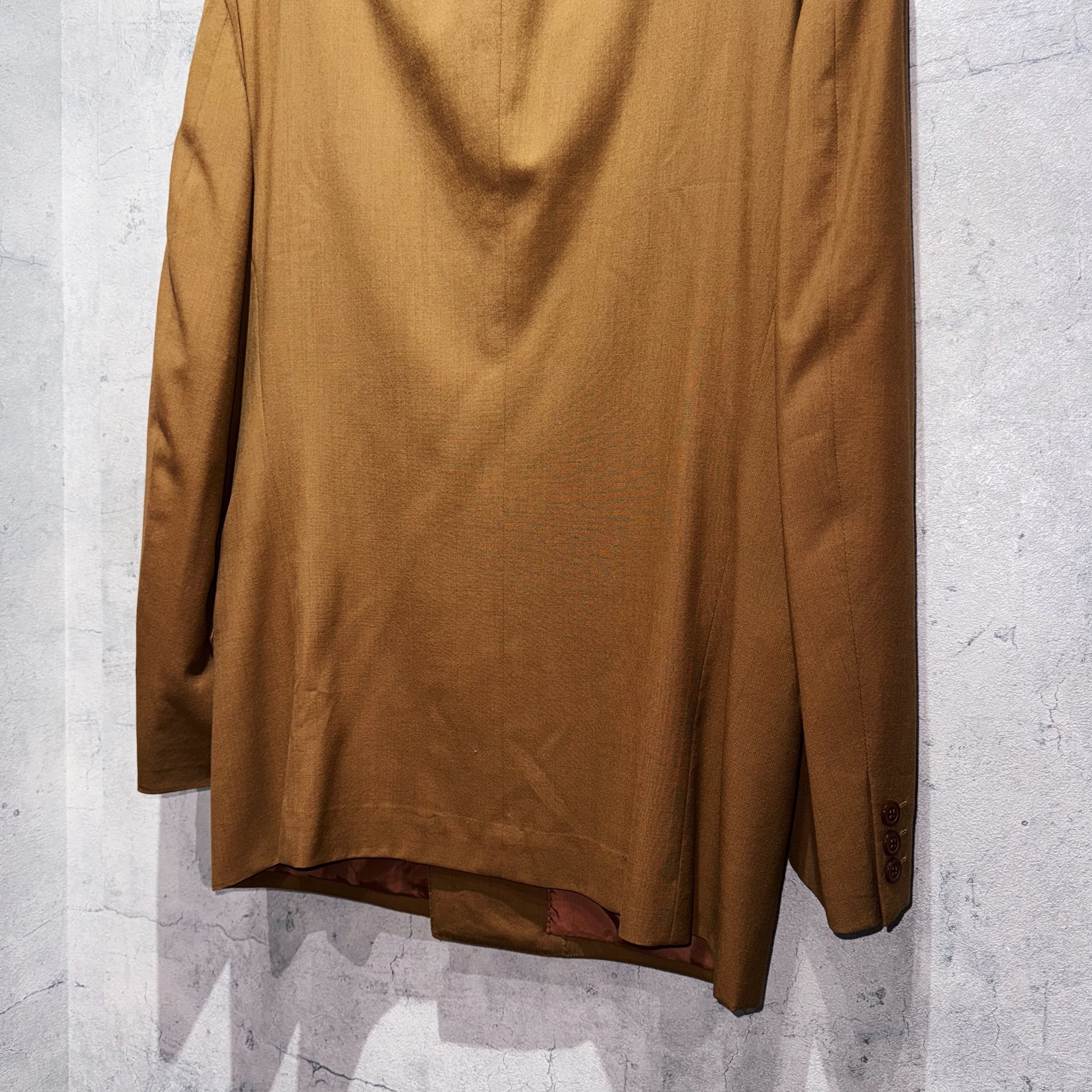 クラシック且つ少しカジュアルな印象を放つキャメルカラーを身に纏ったセットアップ。上質なウール素材を採用し程よい光沢を放つことで高級感を演出。