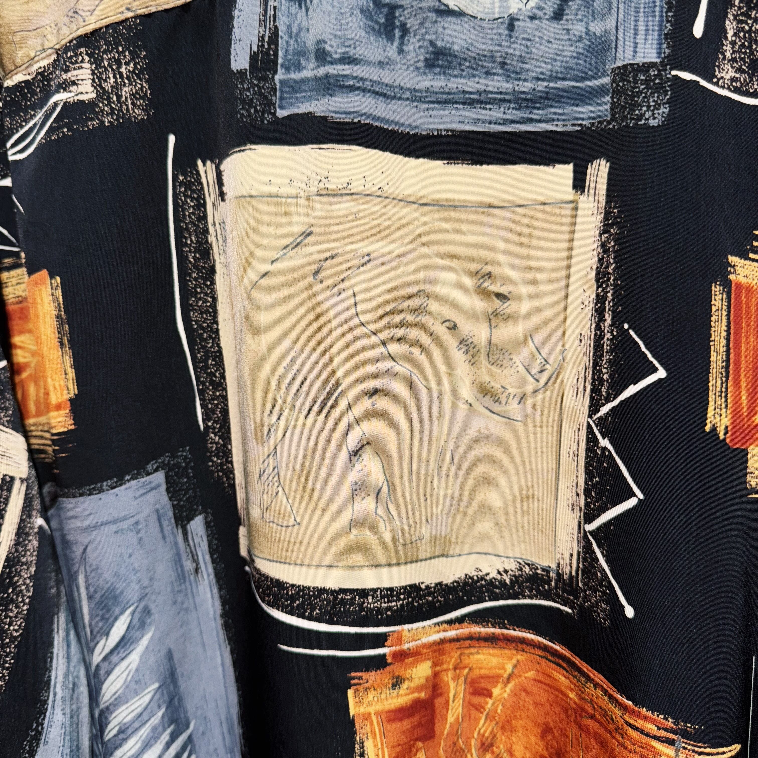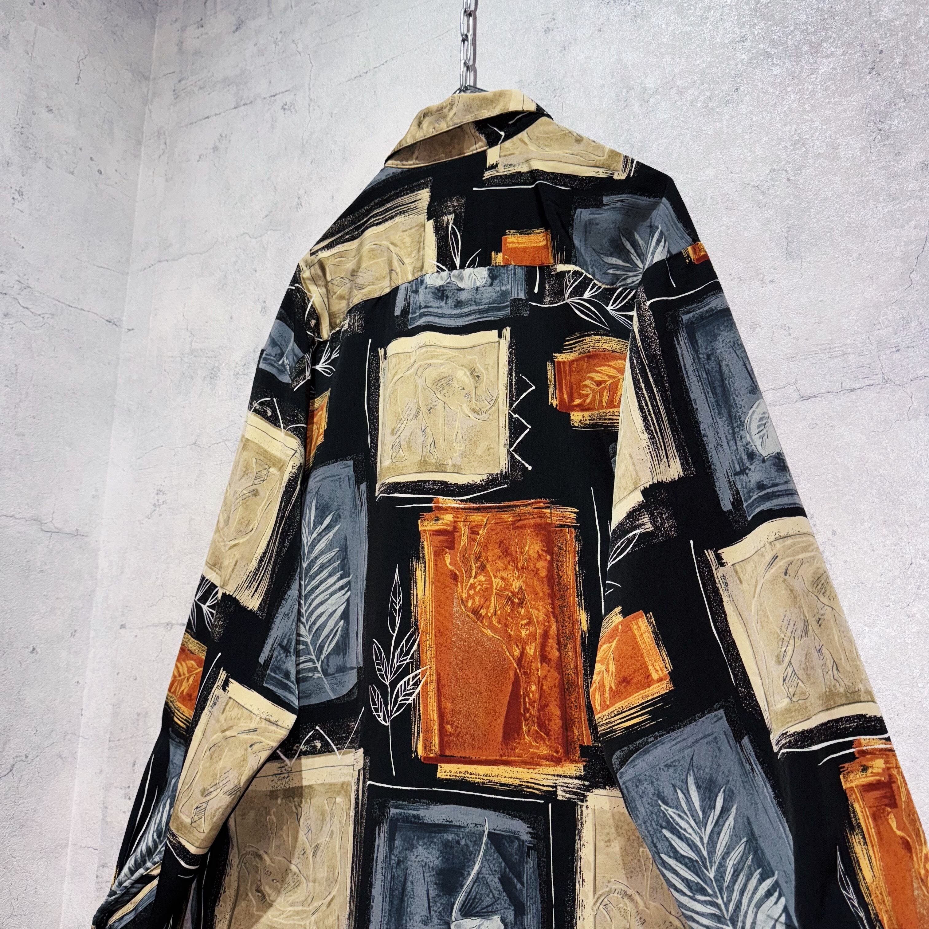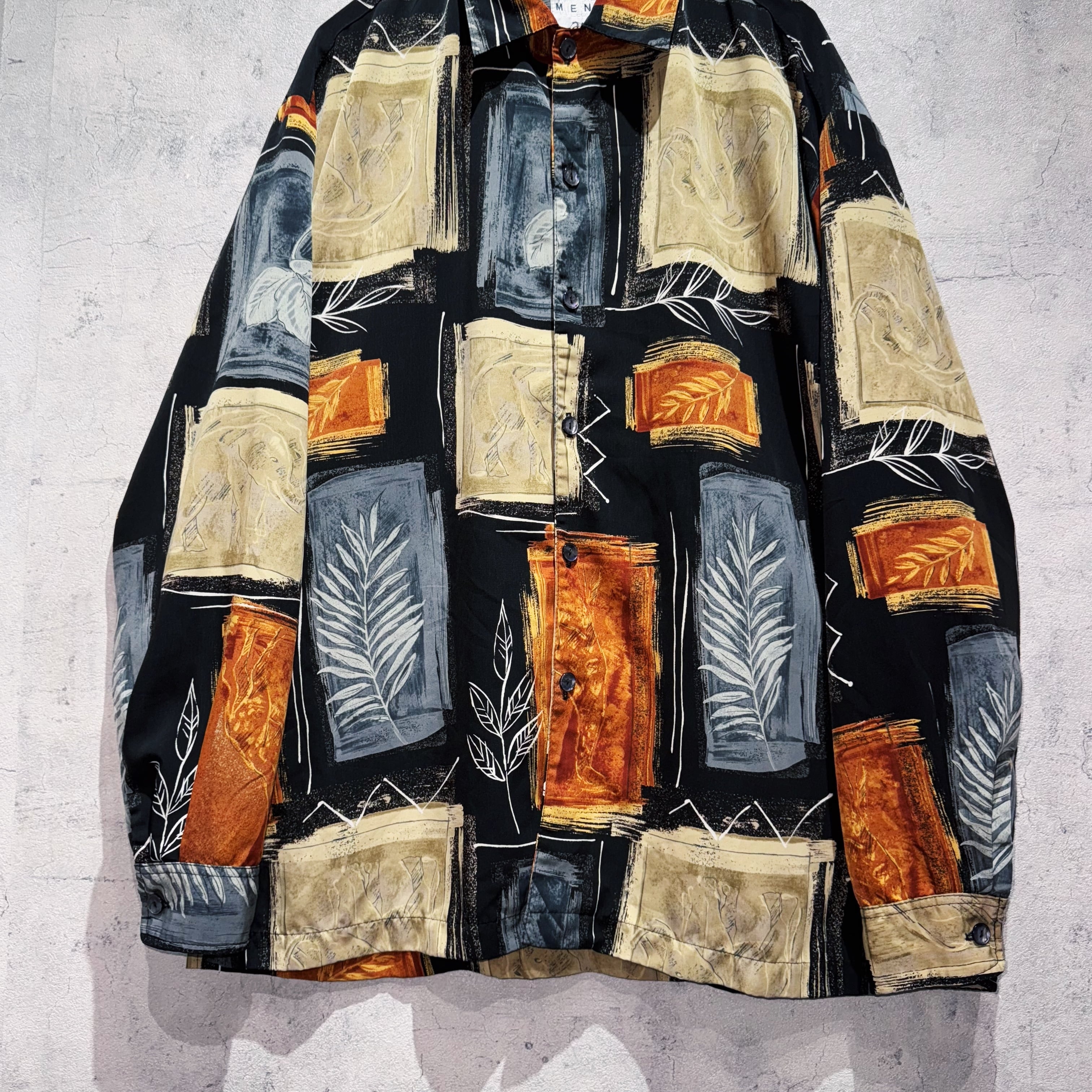 ボディ全体にレトロなアートグラフィックとボタニカル柄をあしらった渋さとアーティスティックが融合した古着らしい一枚。
