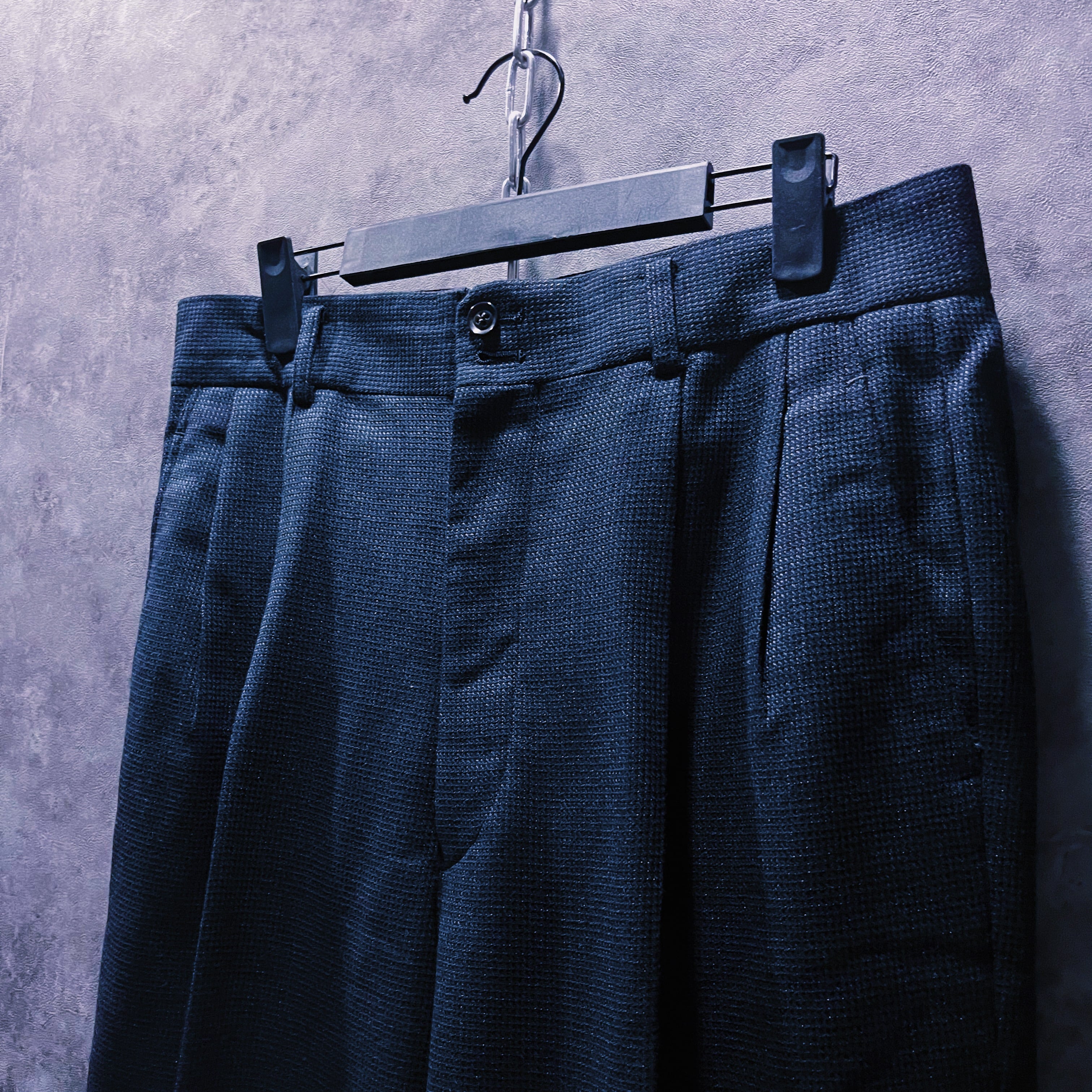 しっかりプレスの効いたストレートに下りるシルエットのパンツはこれからの時期に単体でも活躍してくれること間違いなし。