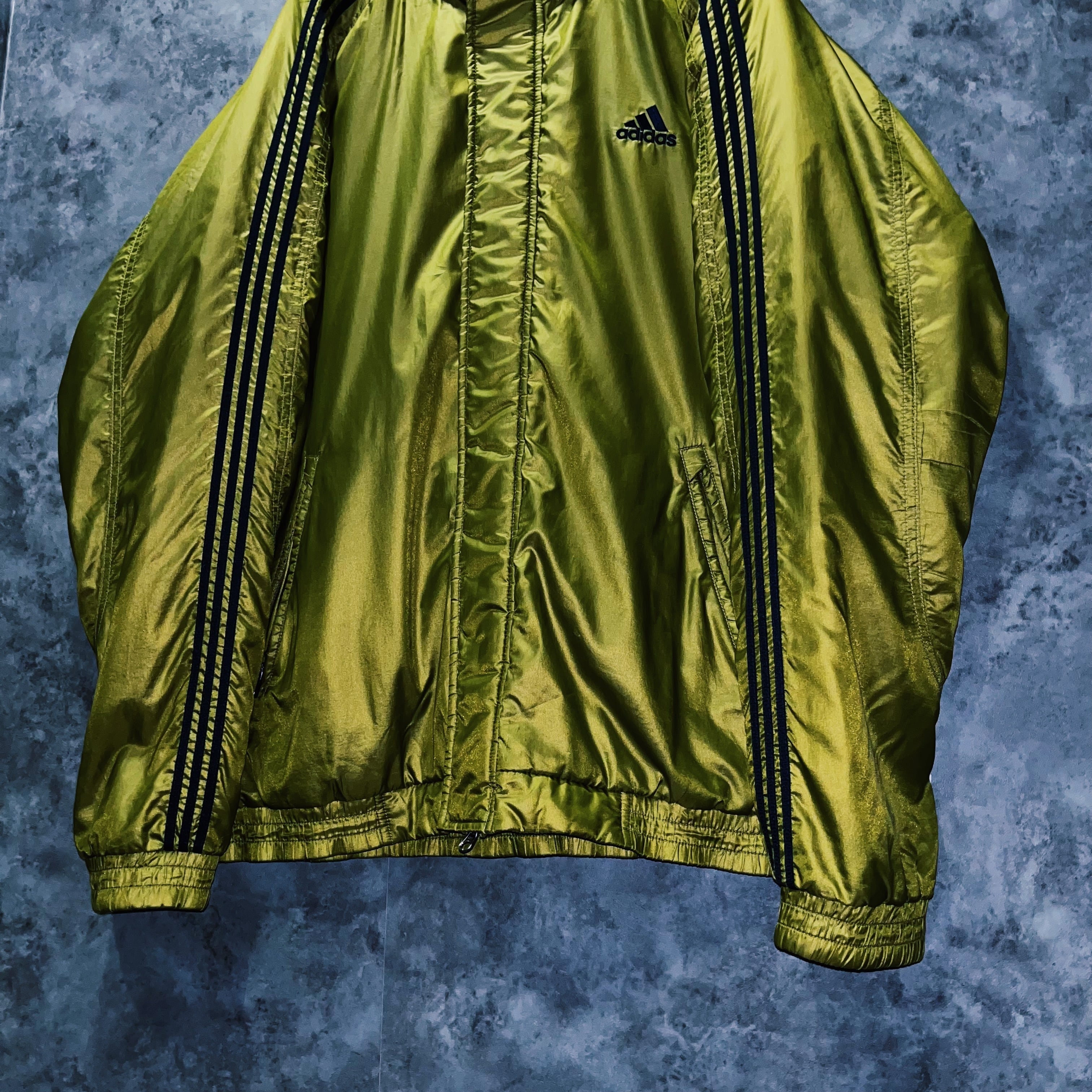鈍く光るモスグリーンカラーに“adidas”のシグネチャーであるスリーストライプをデザインしたシンプルな一着。