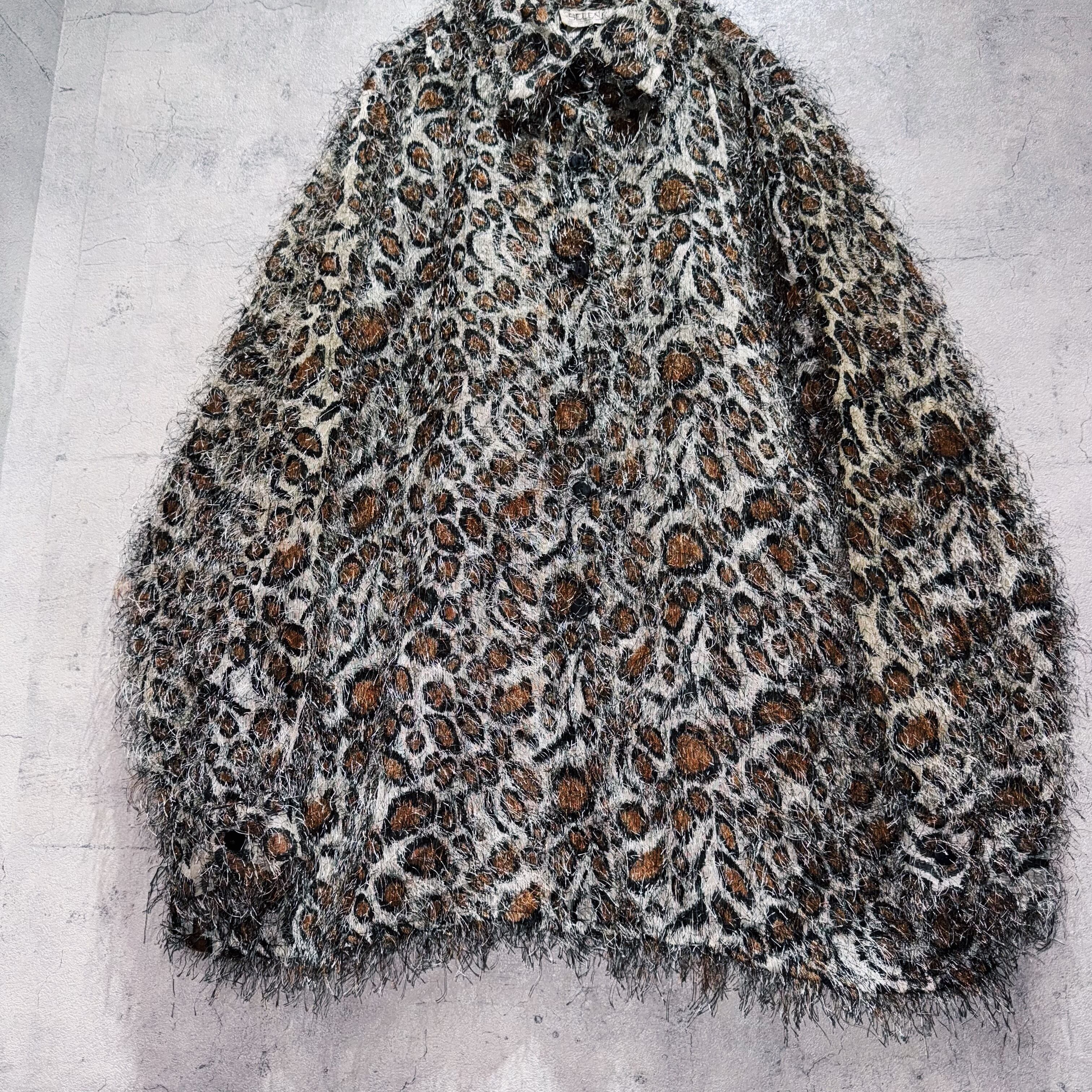 ヴィンテージレオパードパターンデザインシアーシャギーシャツ