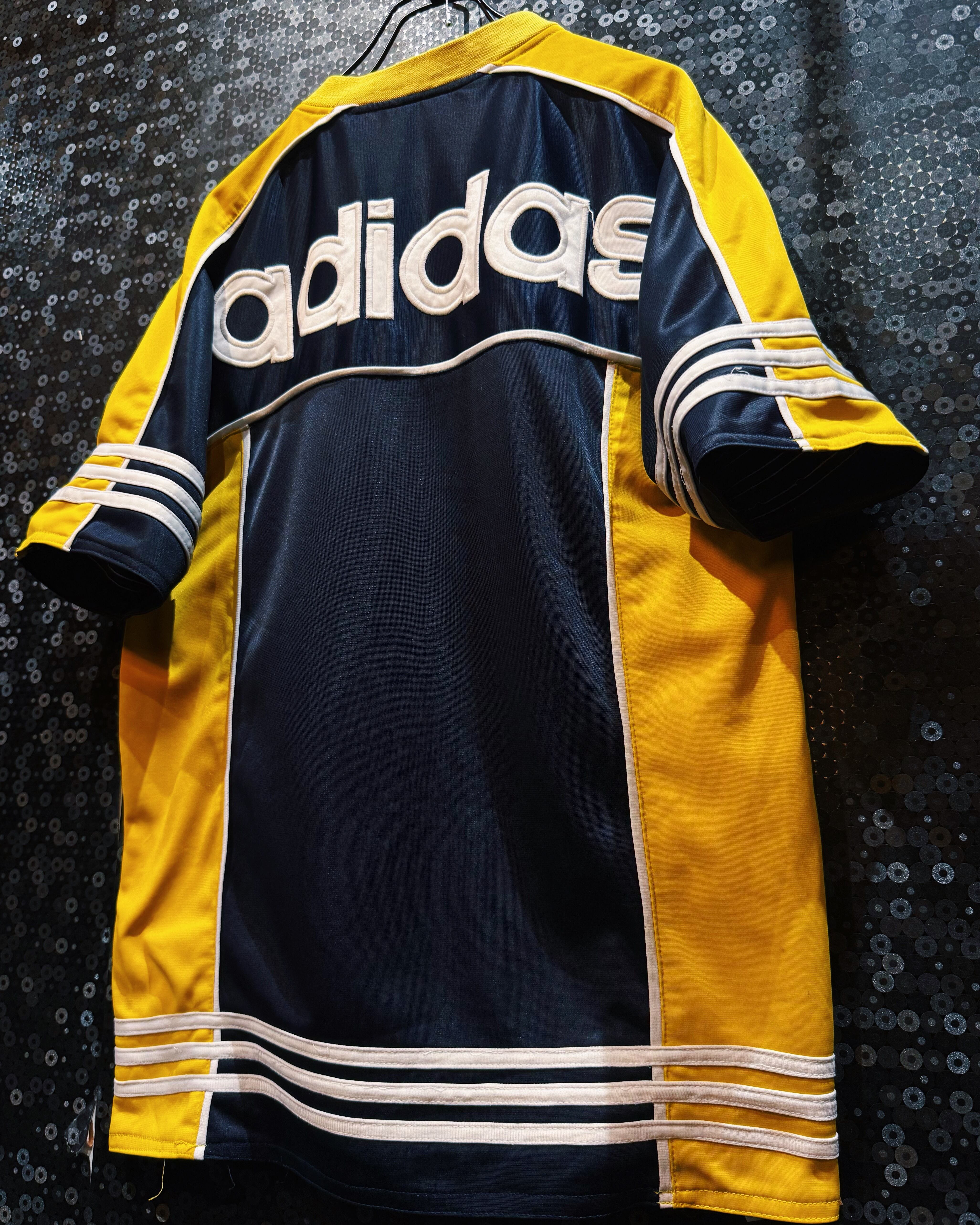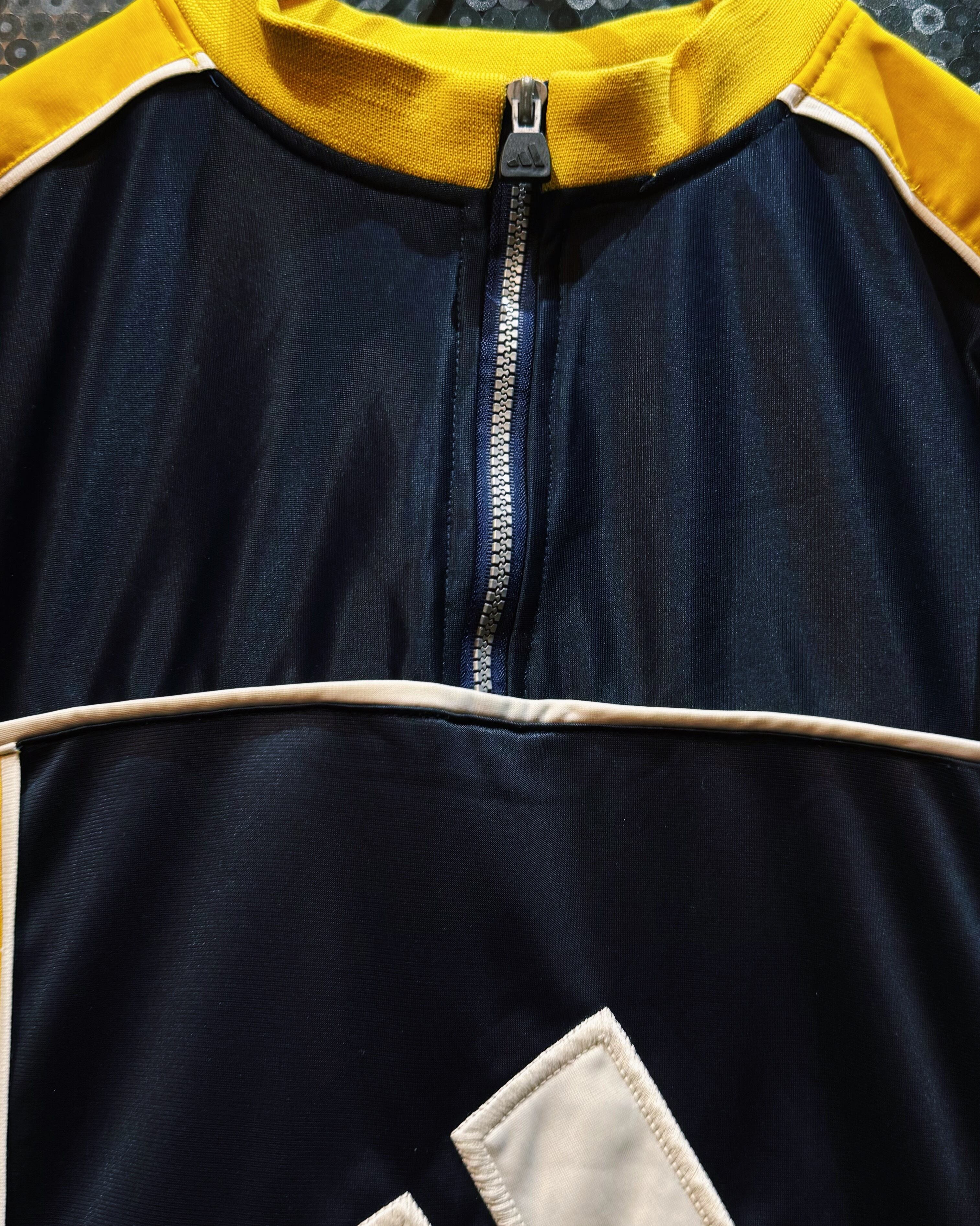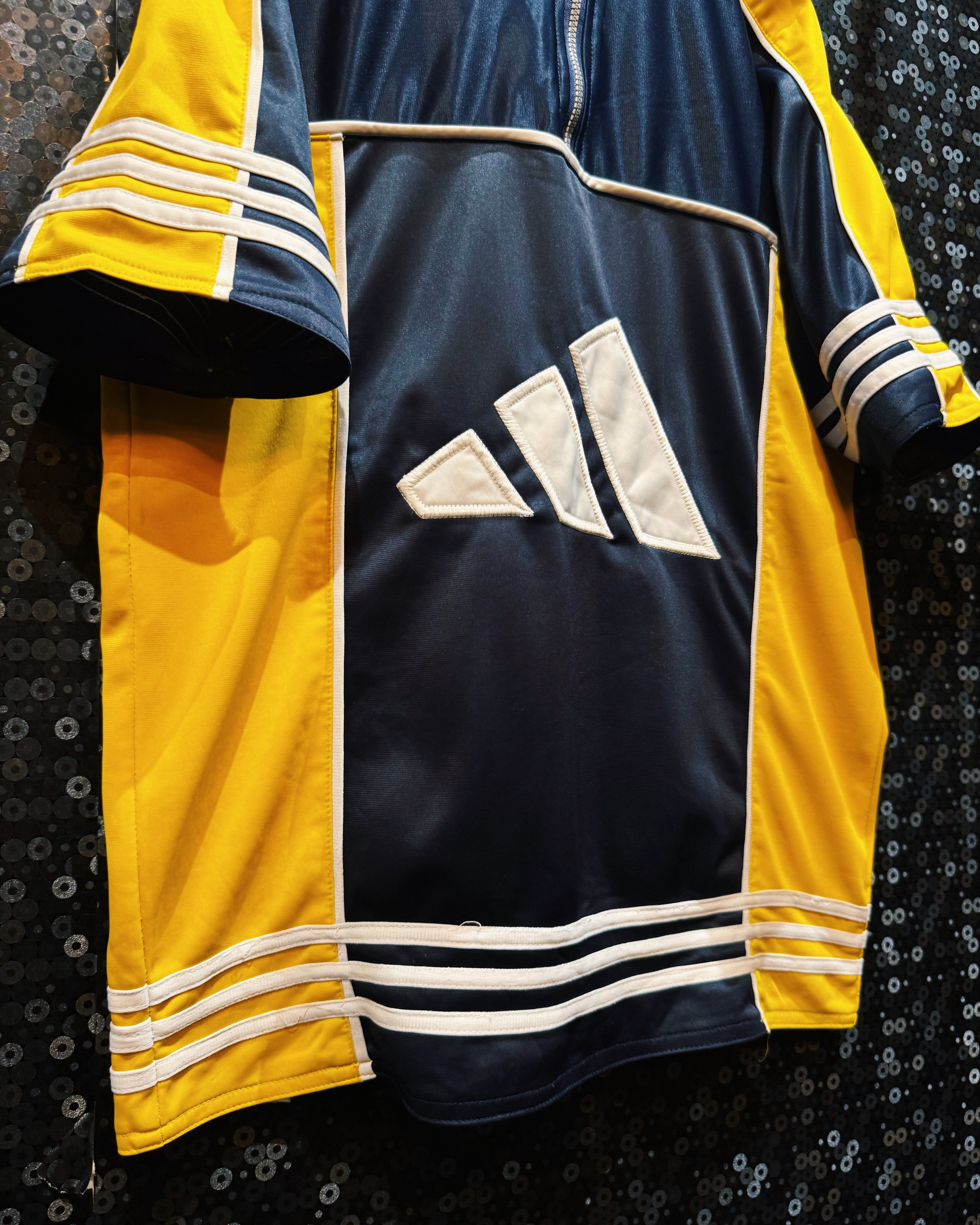 【ÆIEM】"adidas"vintage Performance Logo Half-Zip Short-Sleeve Track Jacket – Navy × Yellow
