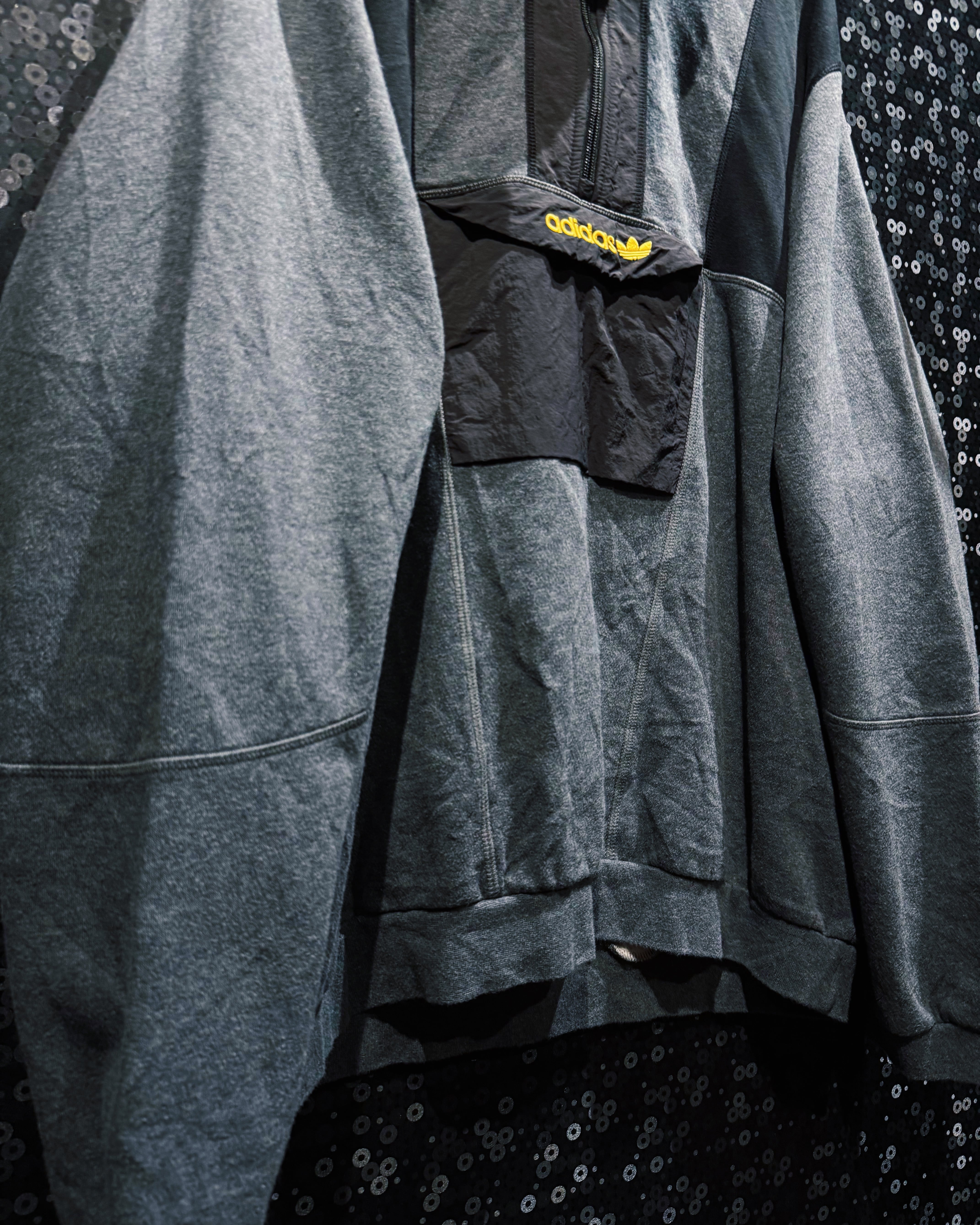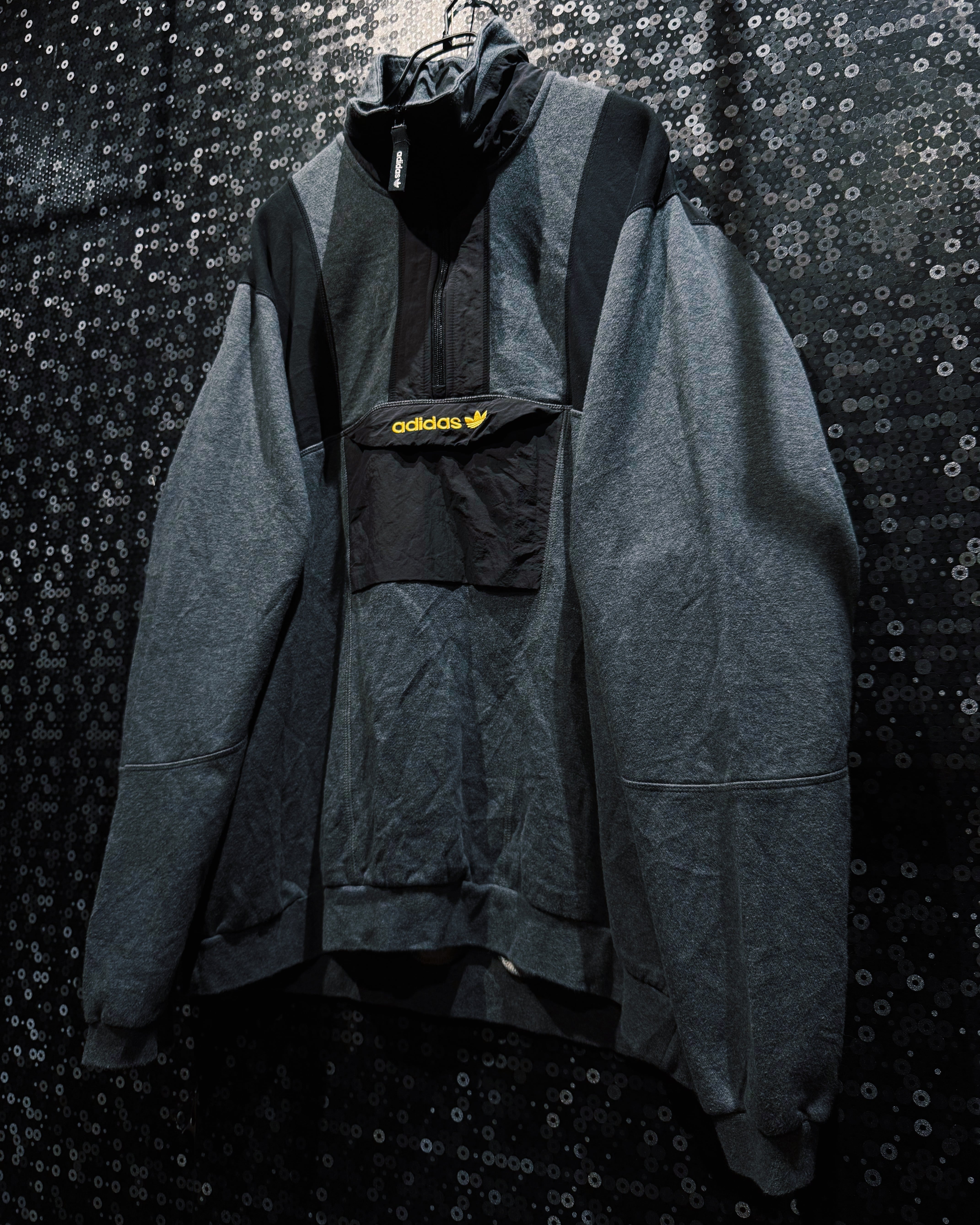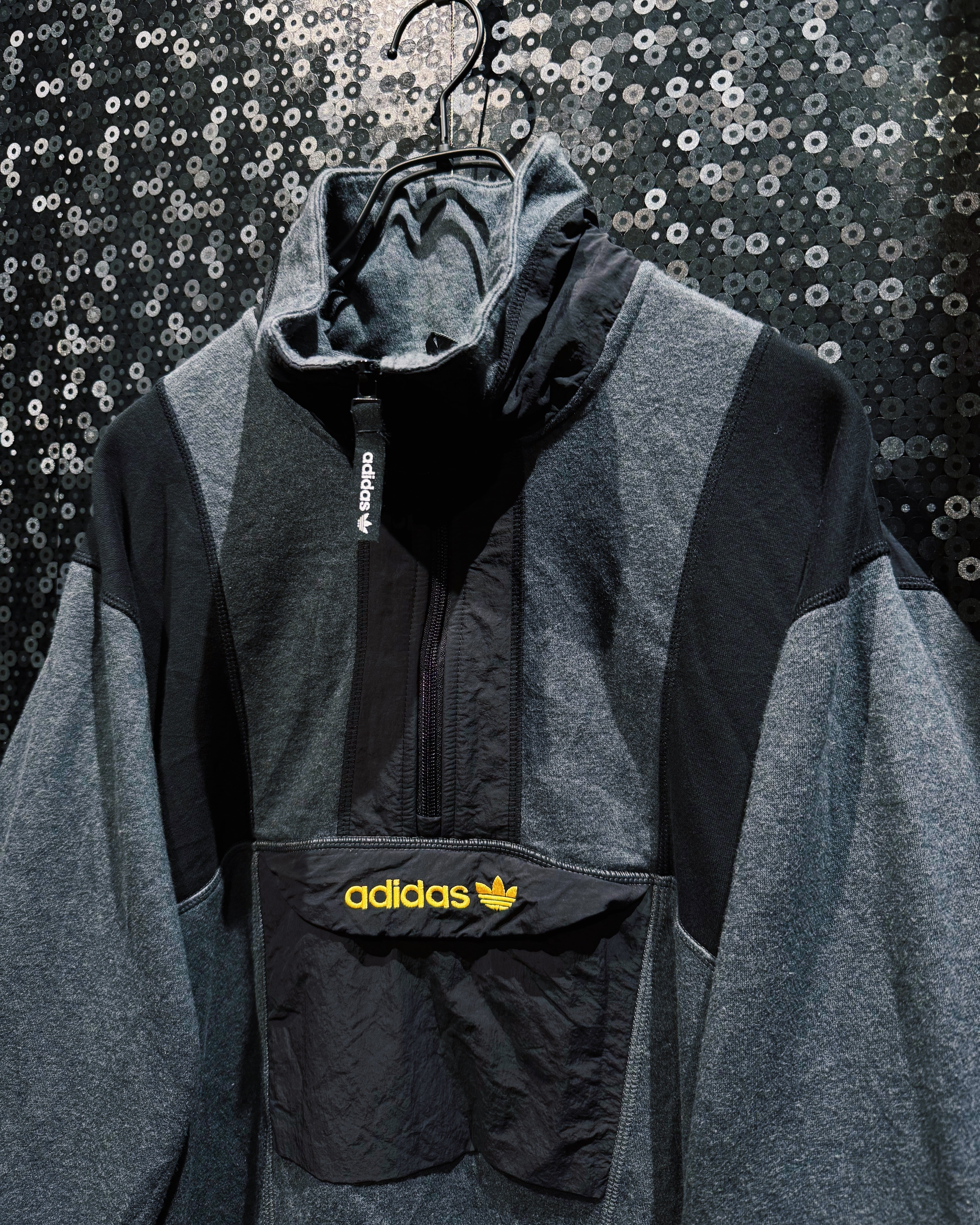 グレーとブラックの切り替えデザインが印象的なadidas Originalsのハーフジップトラックジャケット。