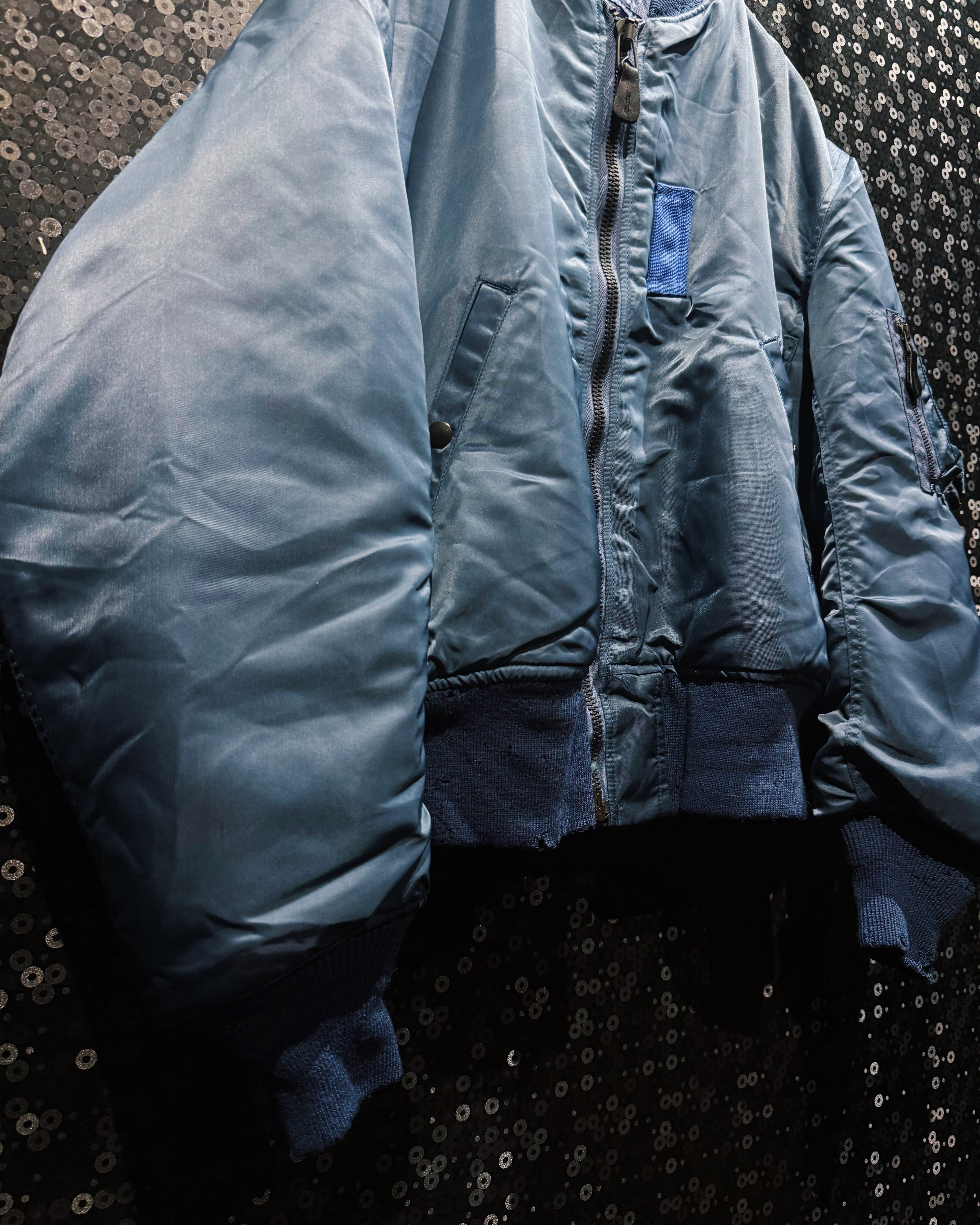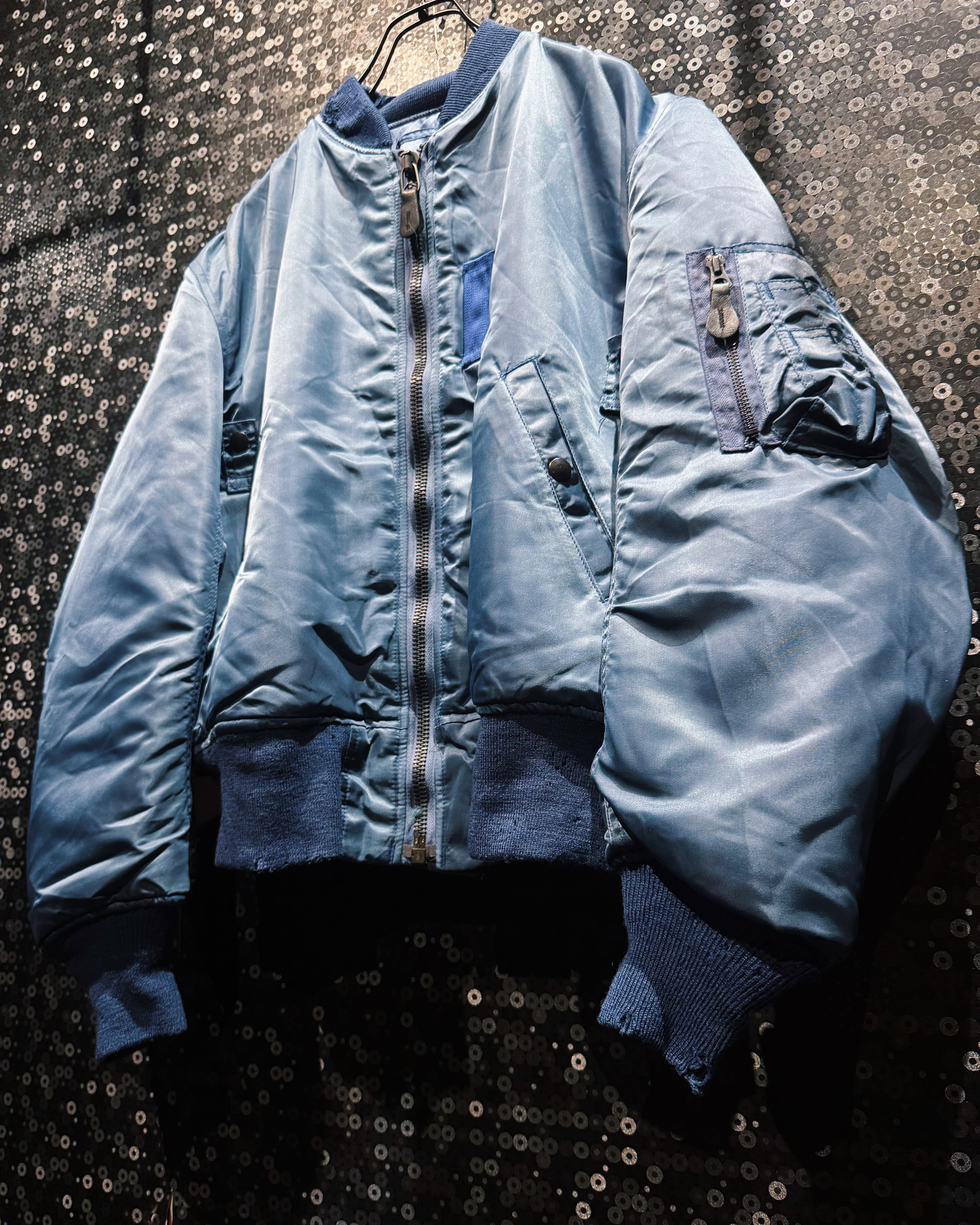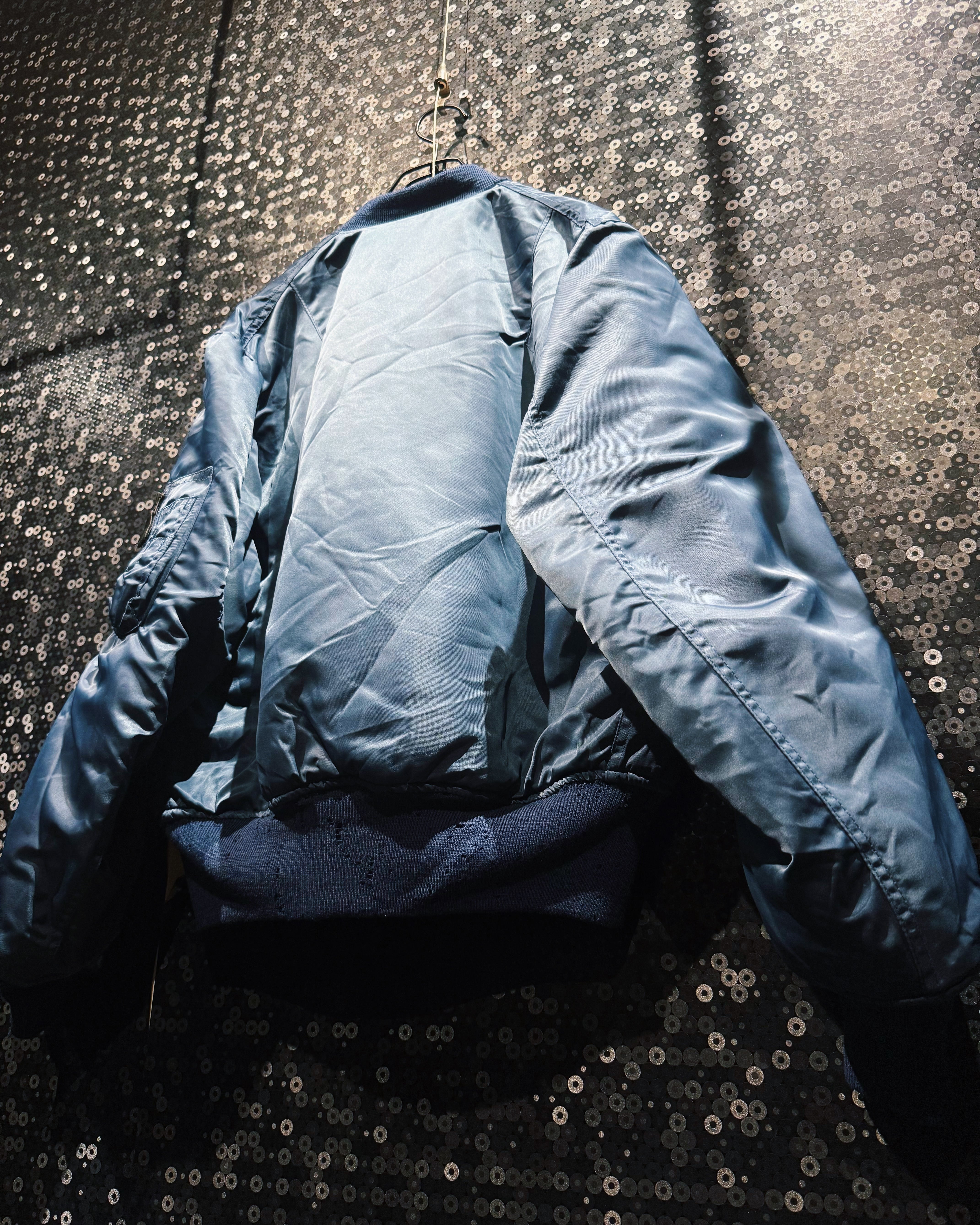 アメリカ空軍の伝統的なフライトジャケット「MA-1」。本作は Weintraub Brothers 製のヴィンテージモデルで、MA-1の中でも希少なブルーカラー仕様。