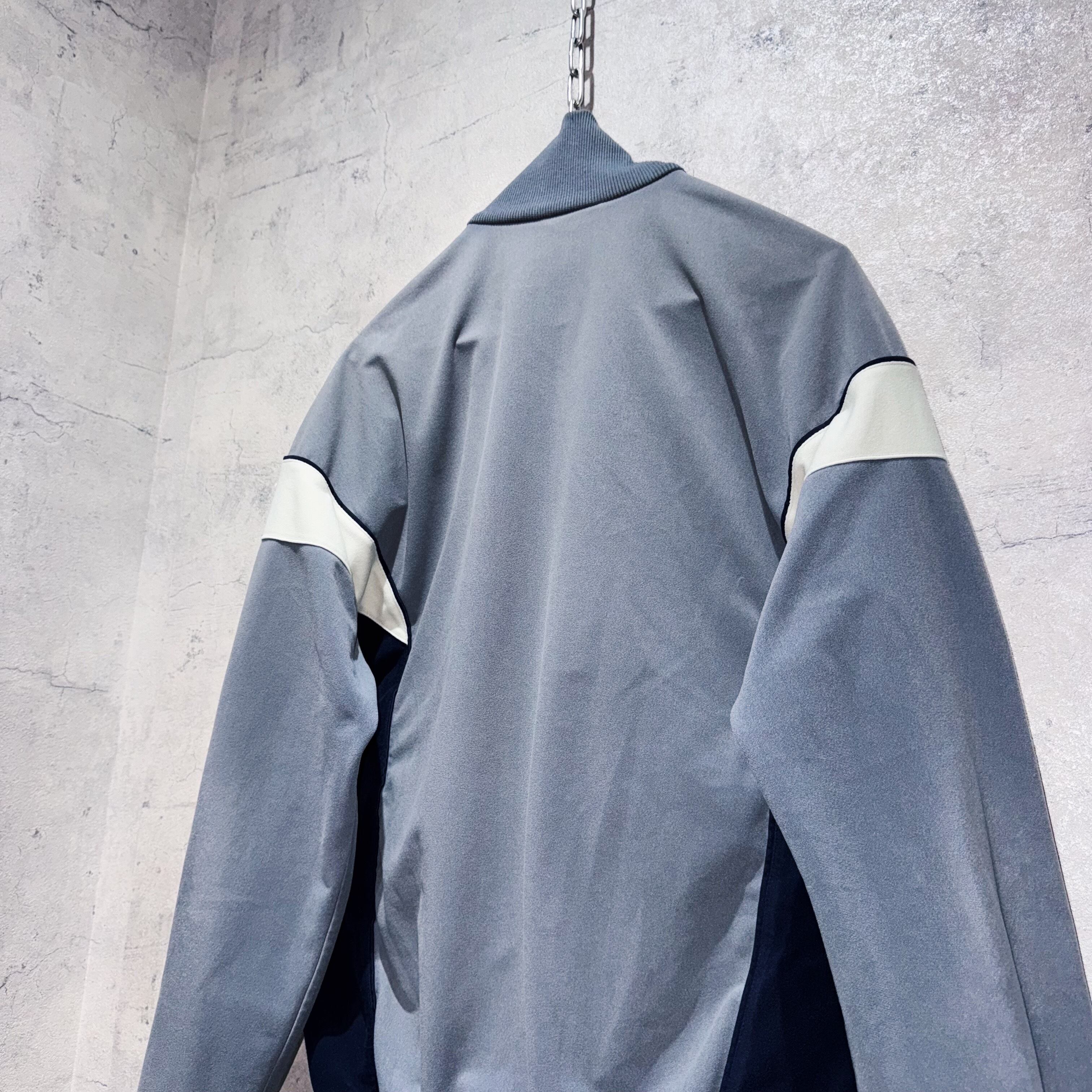 ベロア素材を採用した高級感のある稀有なトラックジャケット。グレーのボディにネイビーとホワイトのスイッチングカラー仕上げることで、品格さが漂います。
