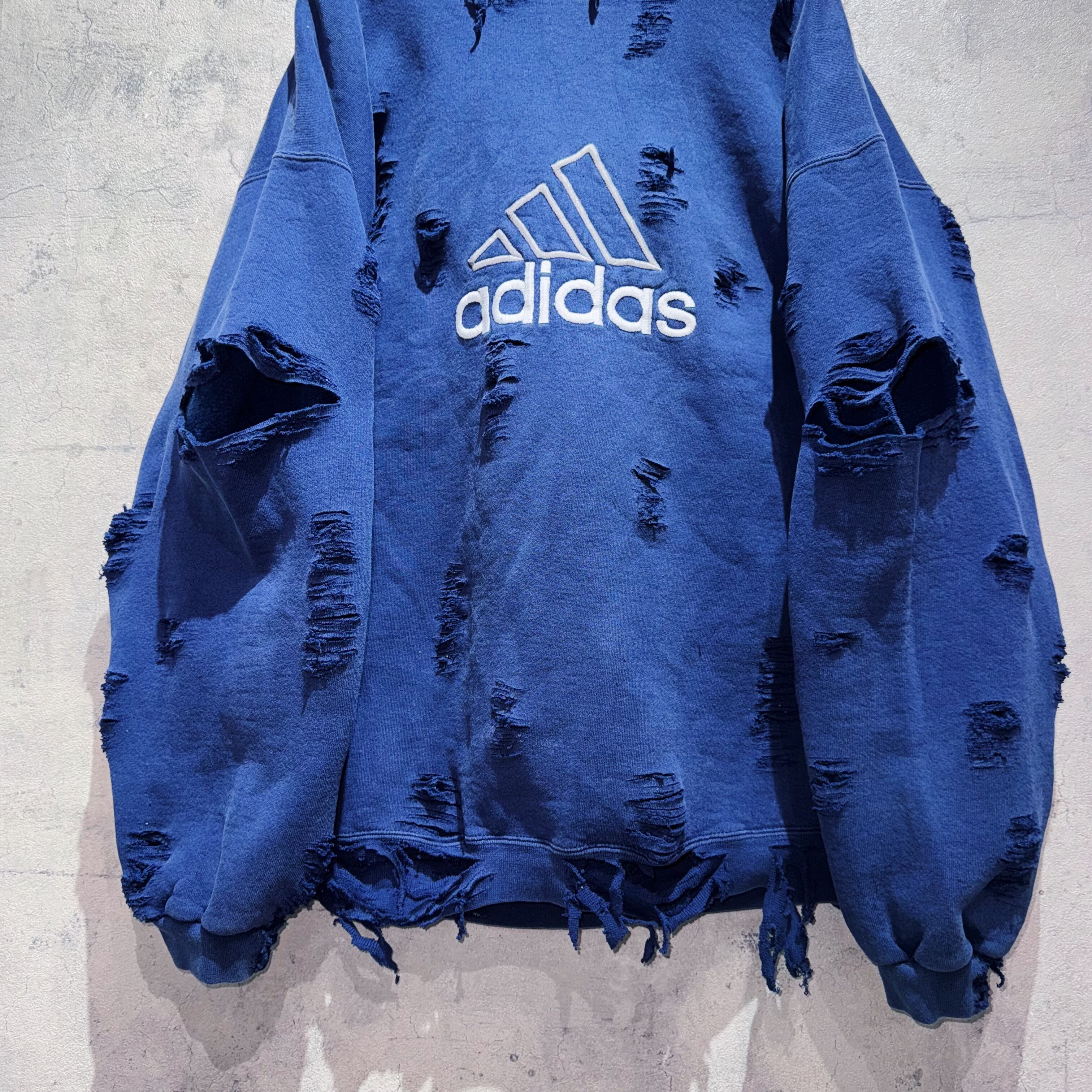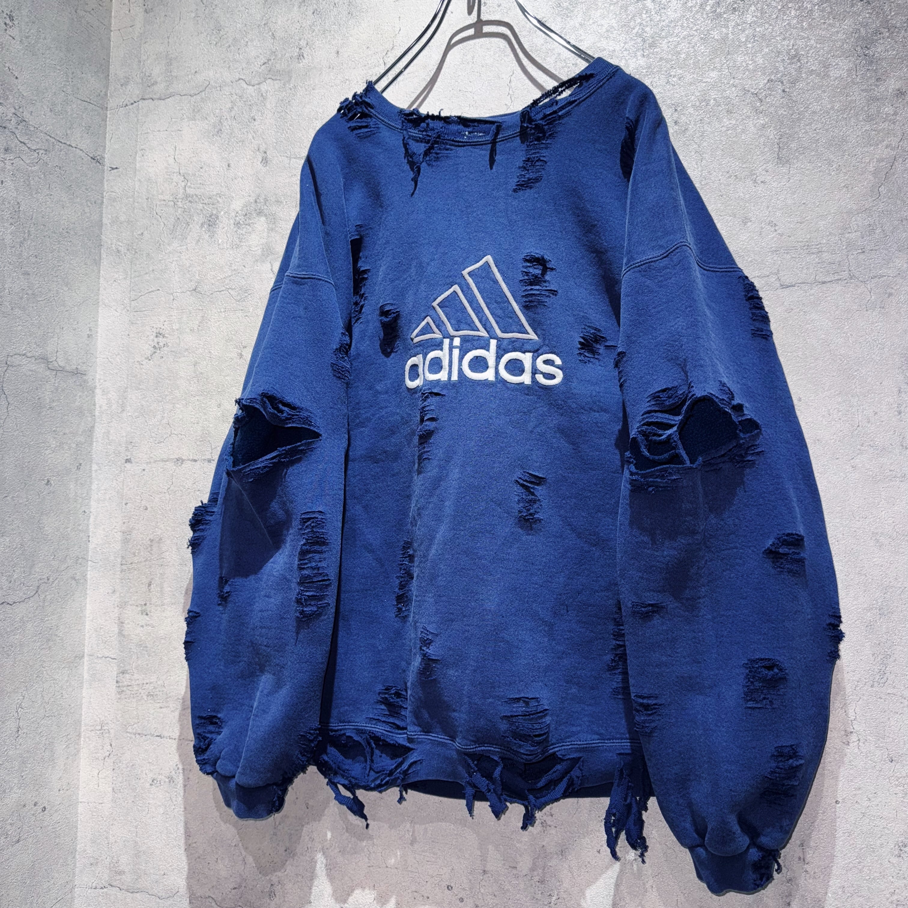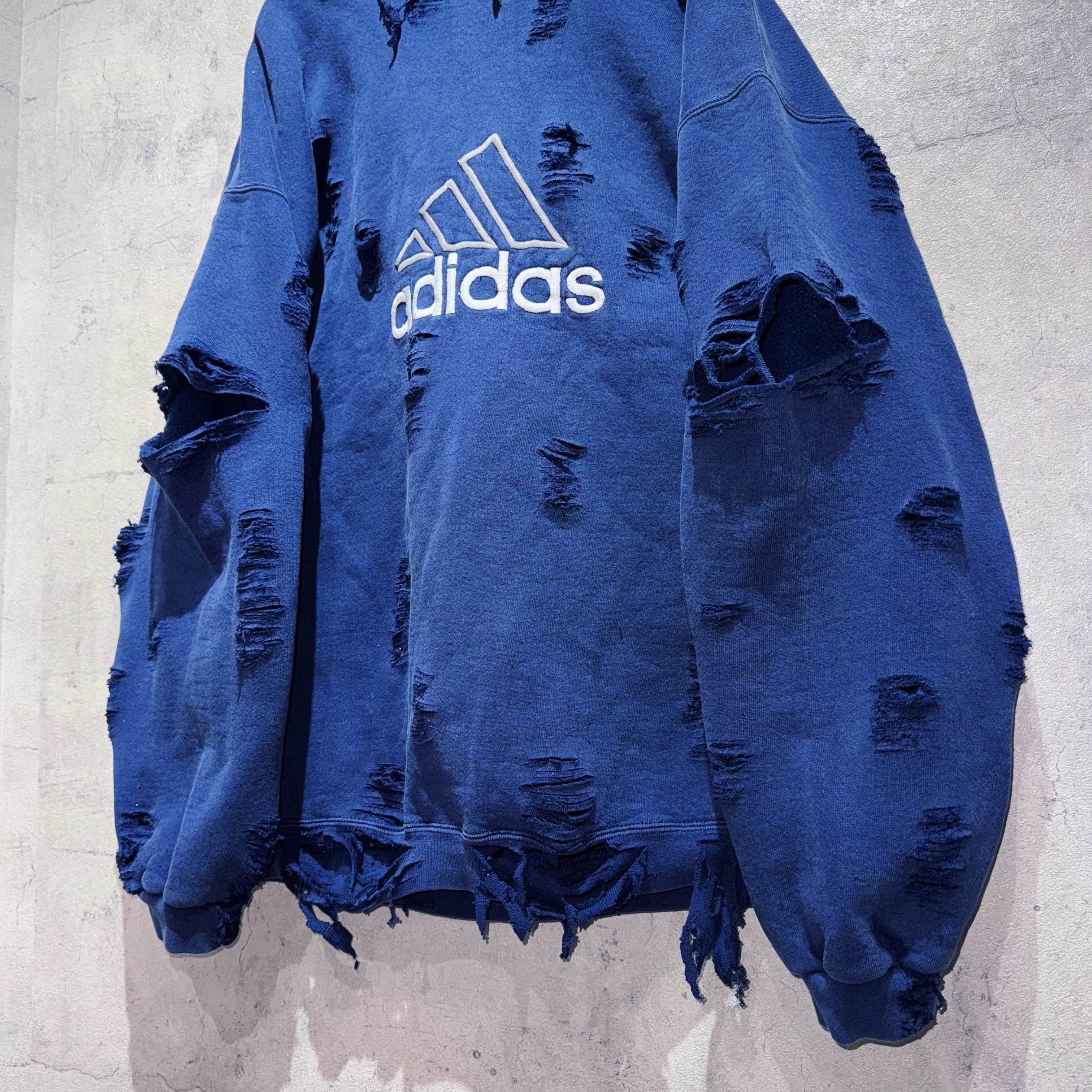 "ADIDAS"のボディを贅沢に採用したボロスウェット。デザイナーズブランドでもダメージアイテムが近年増えてきていますが、それに引けを取らない精密なダメージ技術は間違いなく一流。