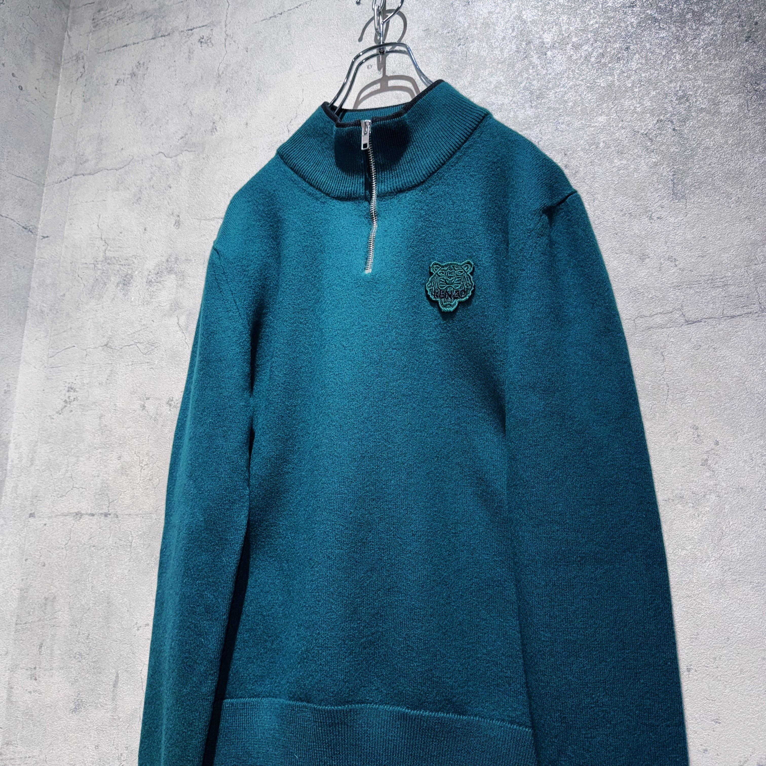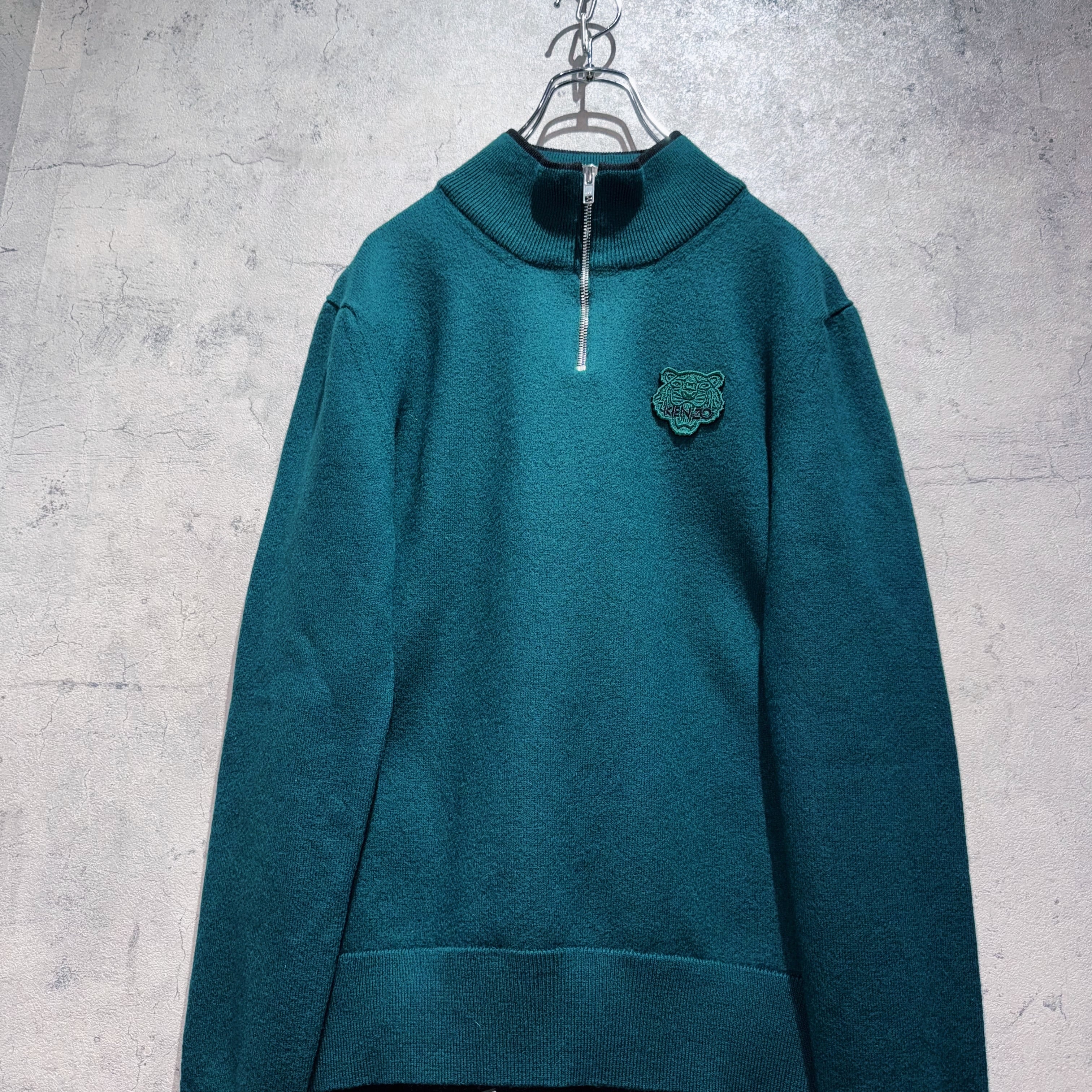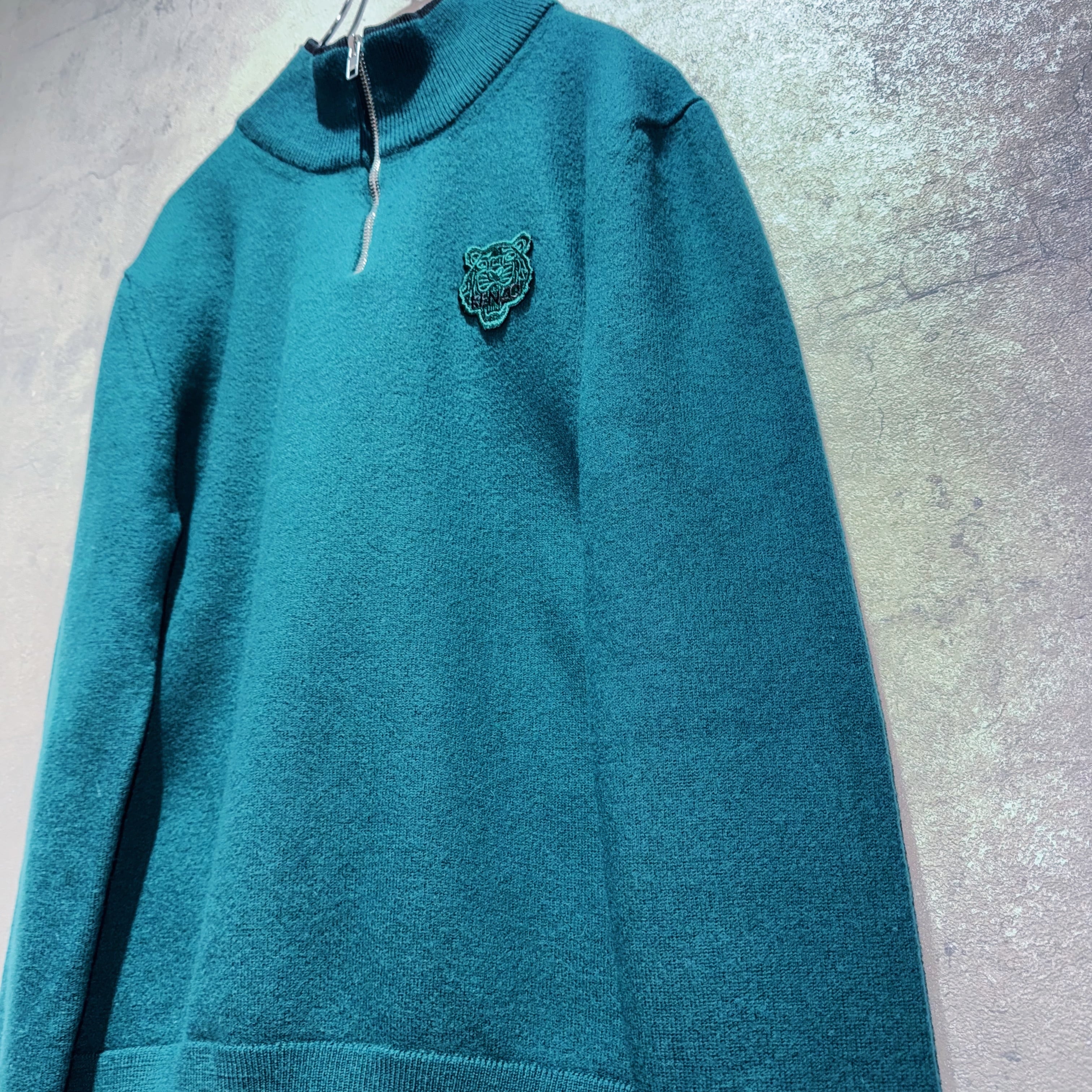 "KENZO PARIS"Tiger wappen embroidery design half zip knit