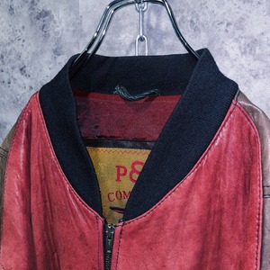 ブラックカラーのレザーが多い中、様々な色が切り替えにあるかなり珍しいレザーブルゾン。ポップな配色でありながらレザーの光沢と、落ち着いた雰囲気のカラー選択により、渋さを含んだ大人っぽい印象に。
