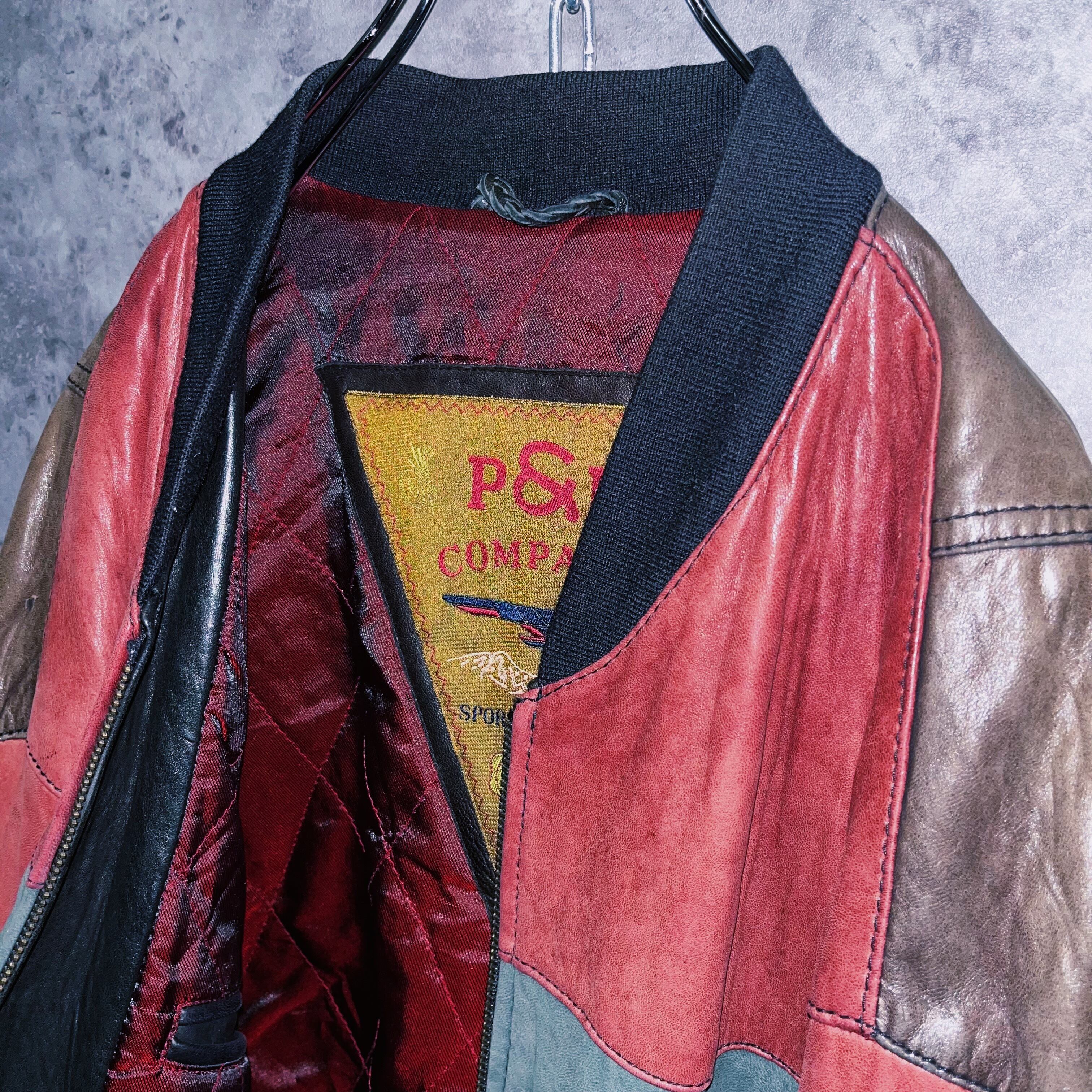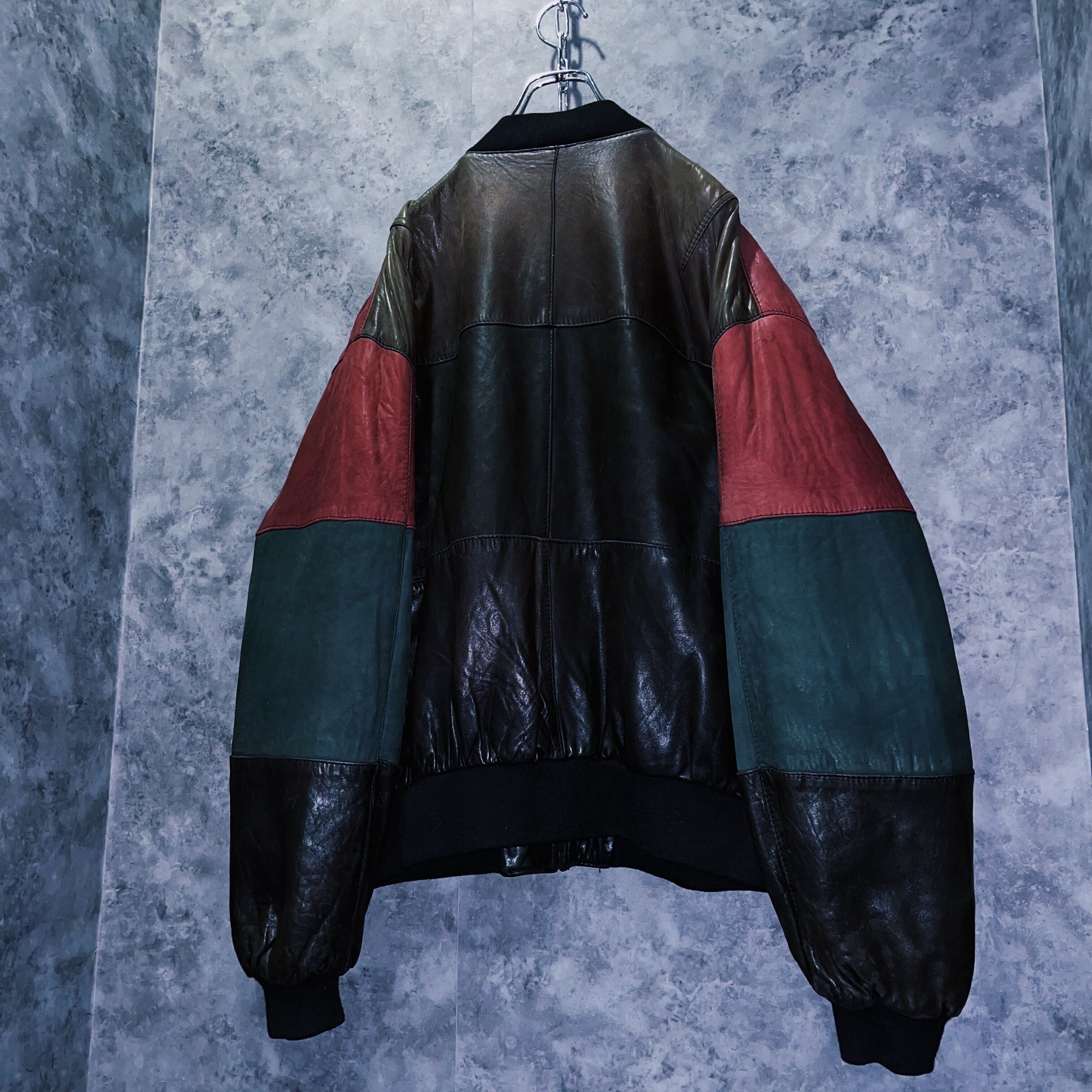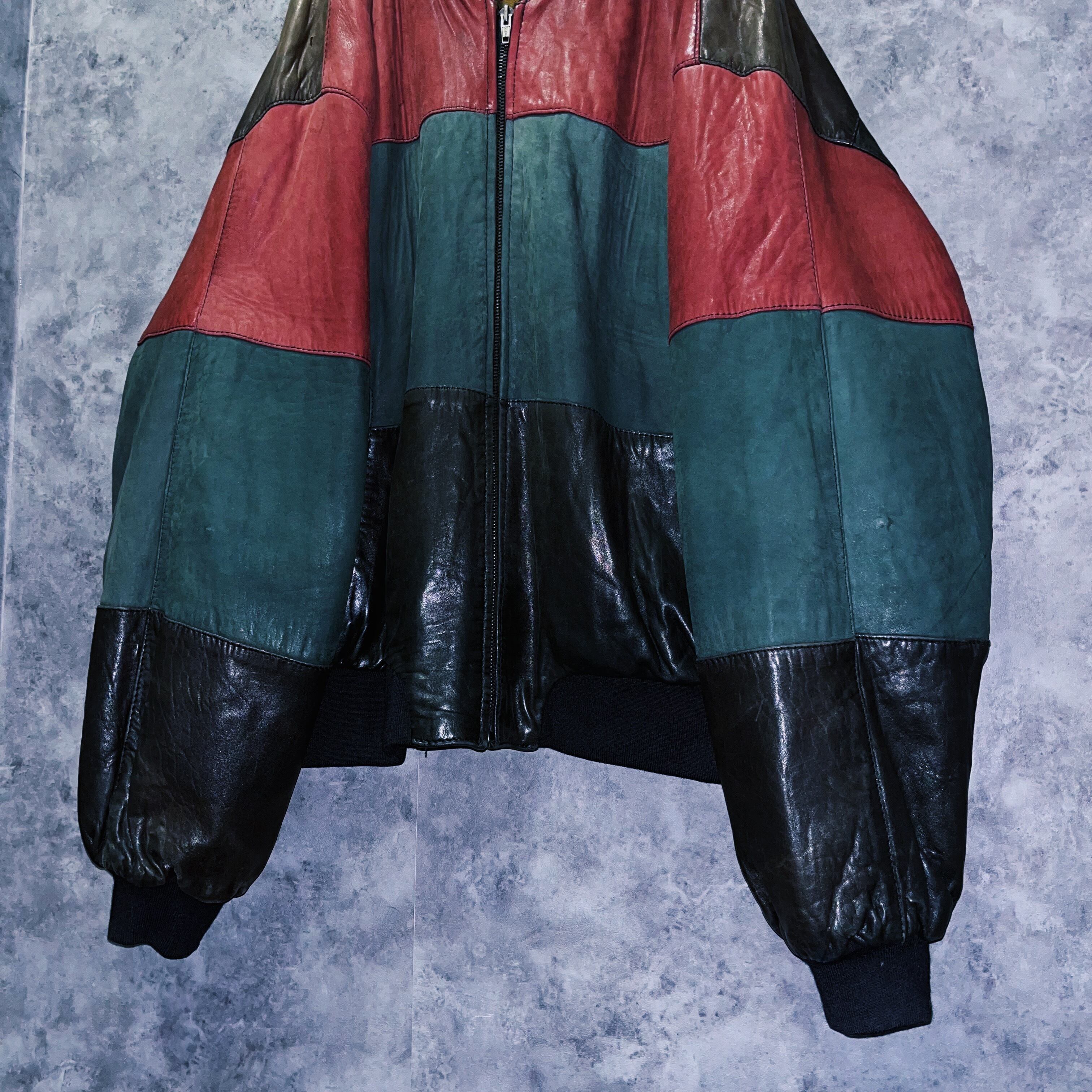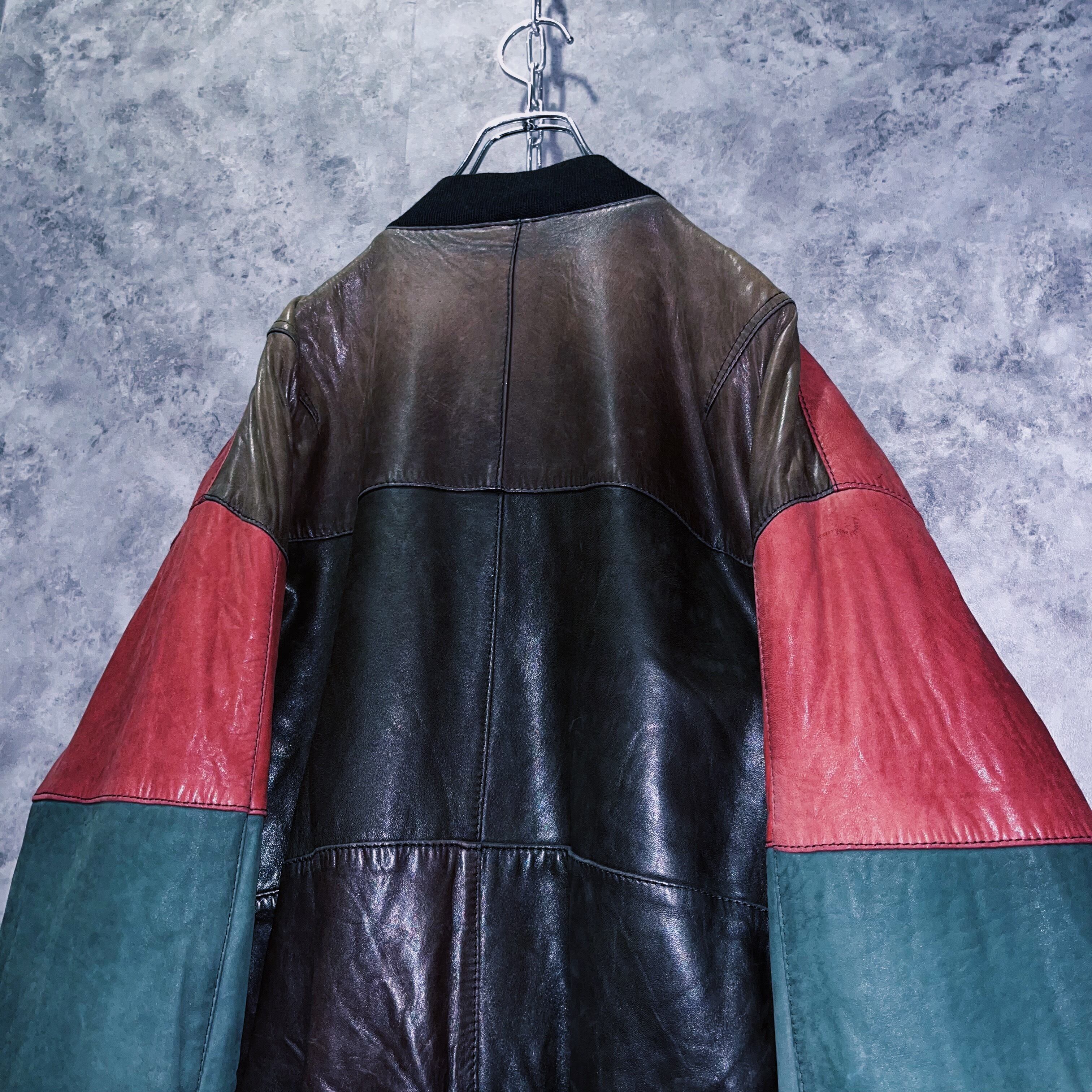 ユーロヴィンテージマルチカラースウィッチングデザインレザーブルゾン