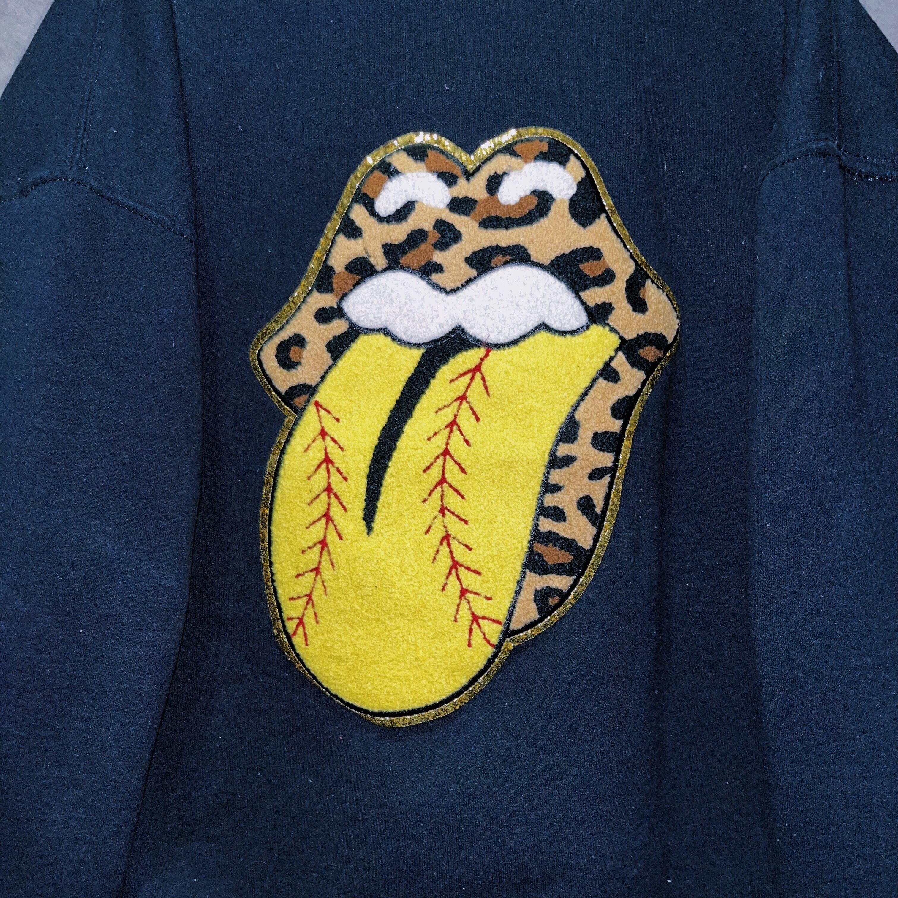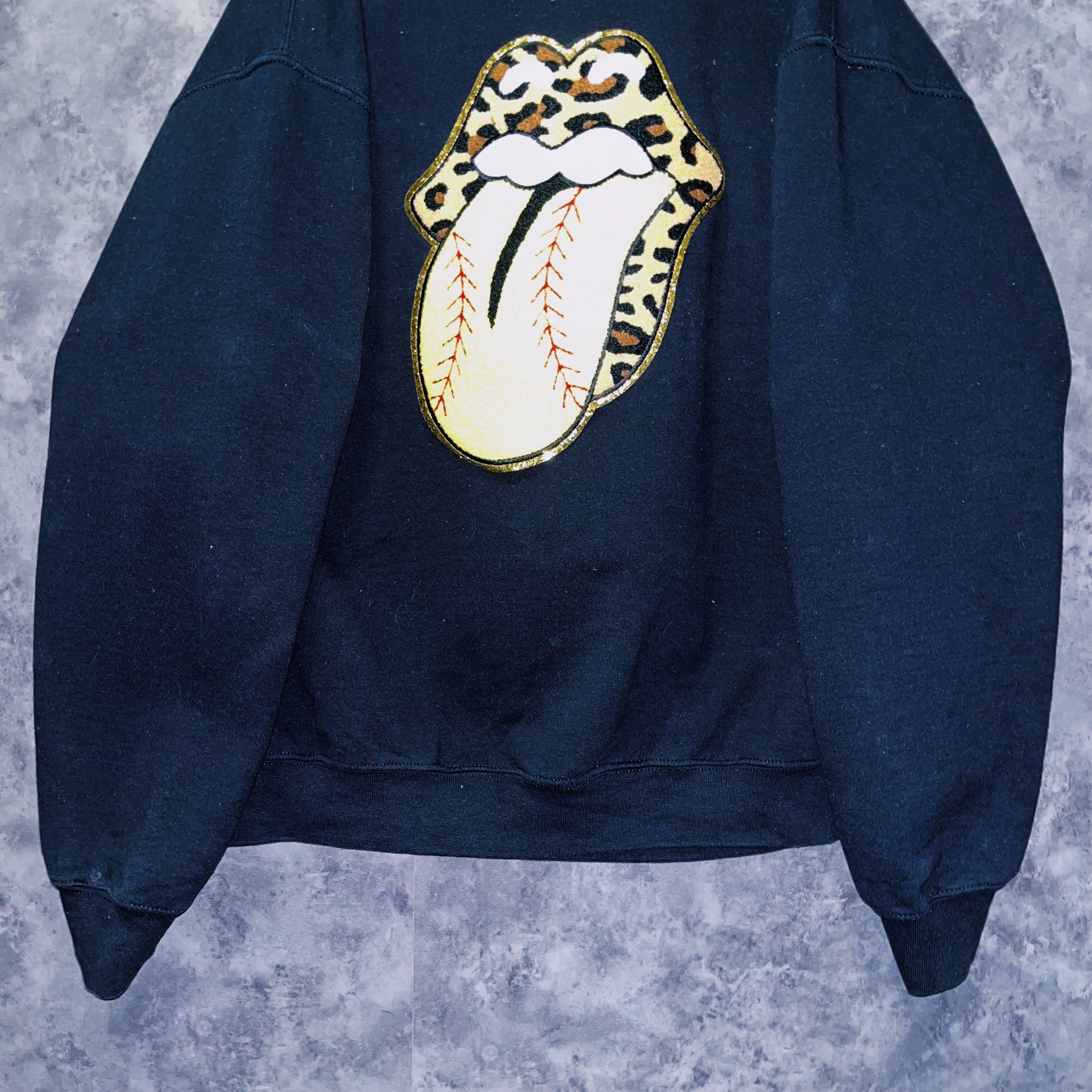 レオパルドパターンにイエローカラーレッドステッチで野球ボールがデザインされたポップで可愛いデザイン。柔らかな生地のスウェットで着心地も抜群。