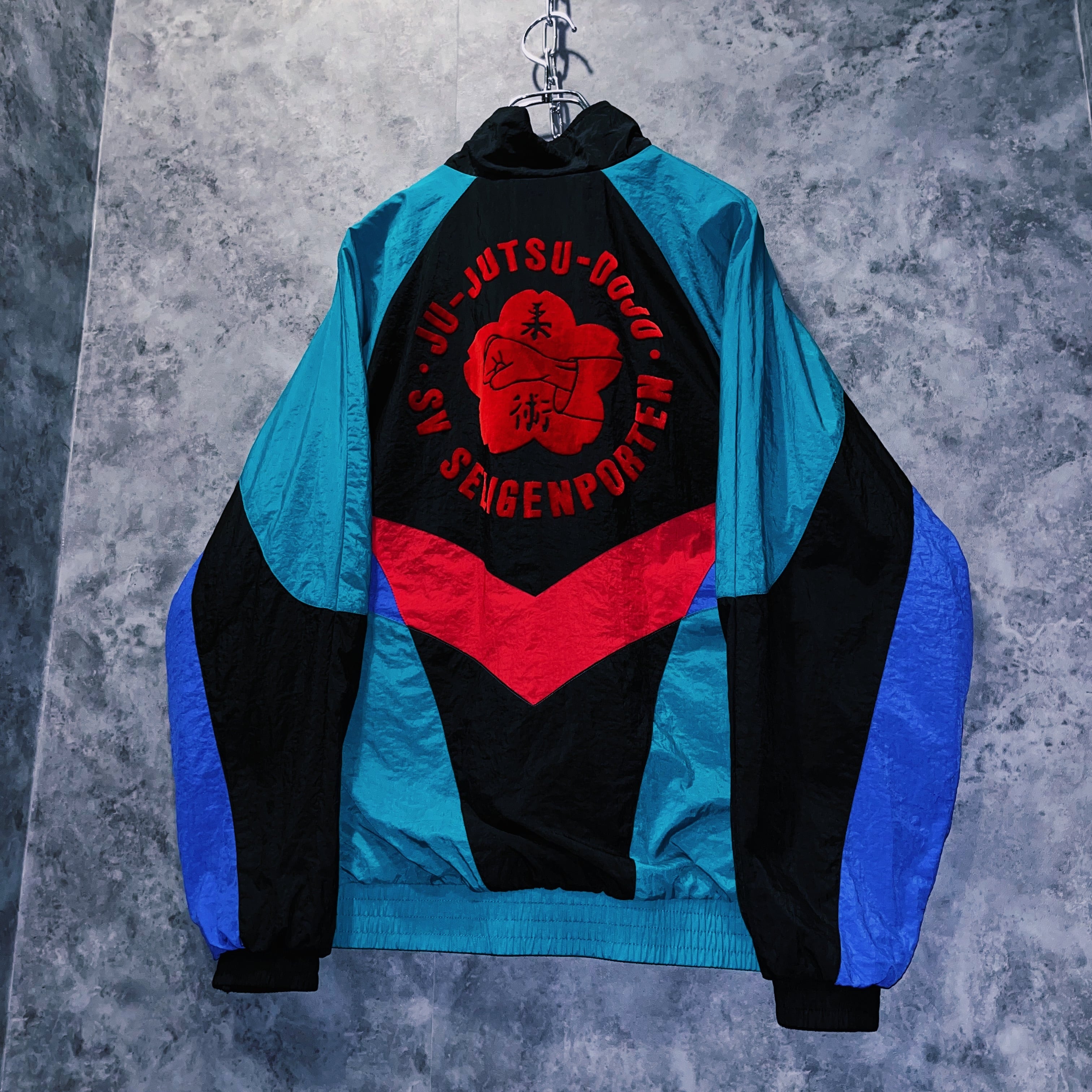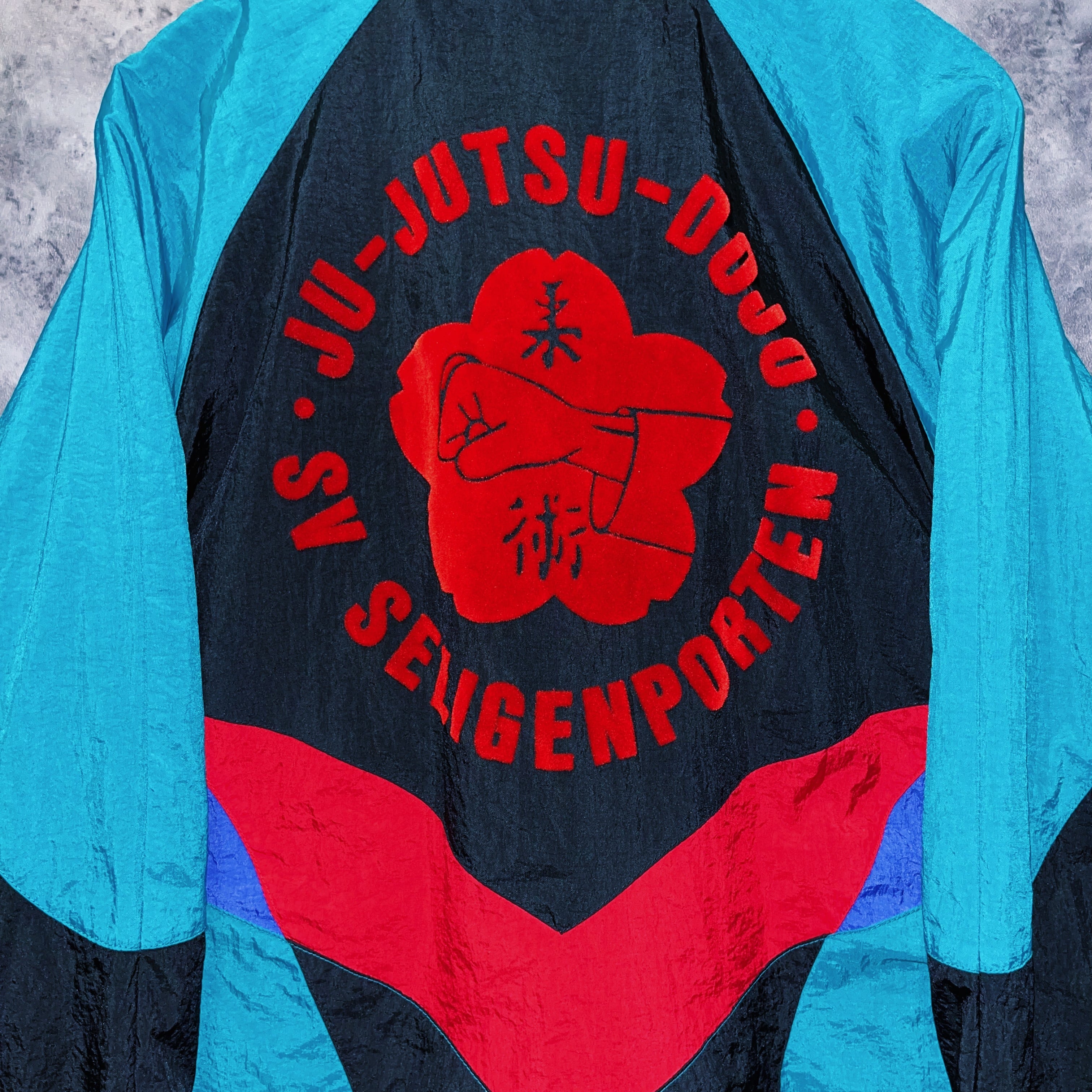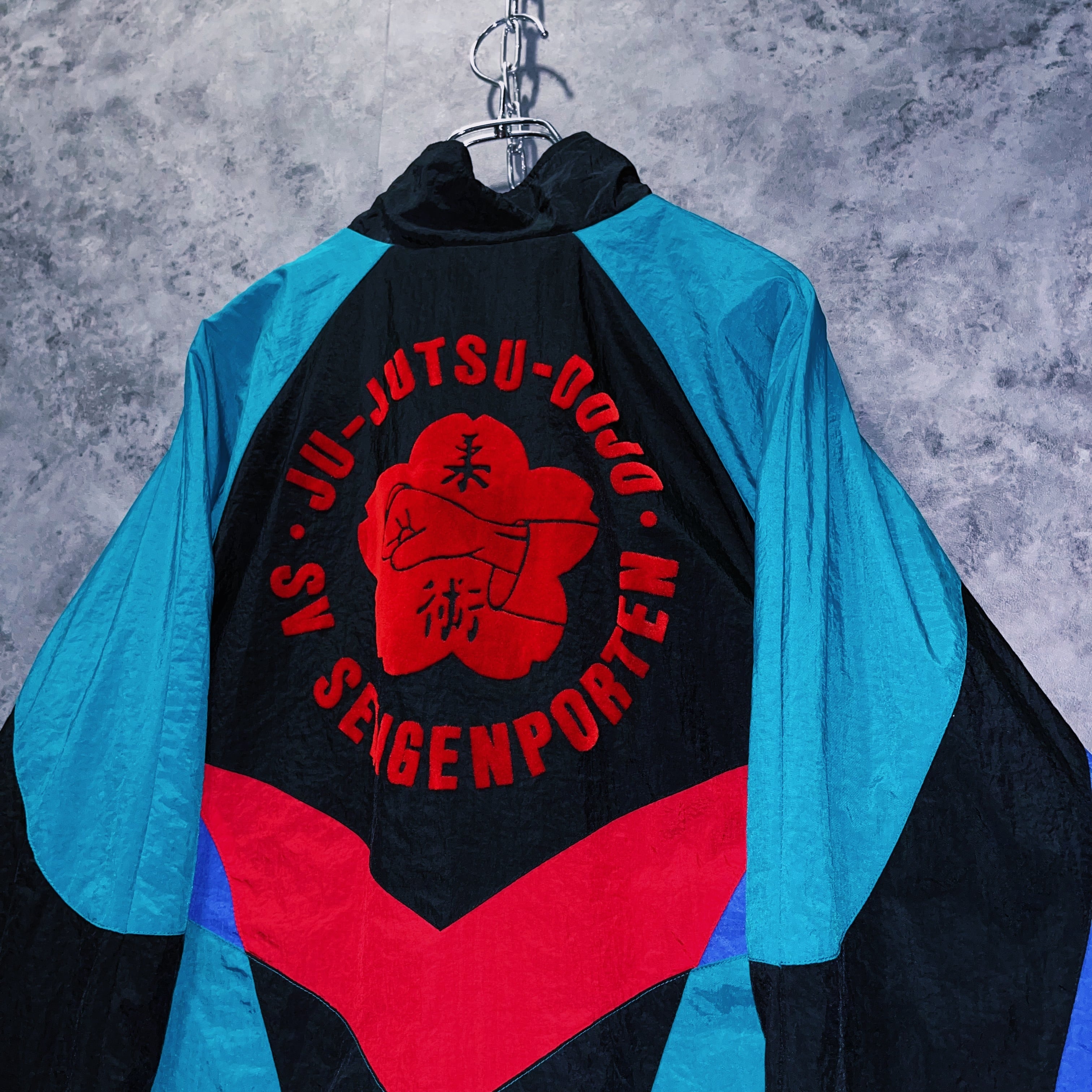 バックにはベロア生地で“柔術”の文字がデザインされてあることから海外の柔術クラブで使用されていたことが伺えます。