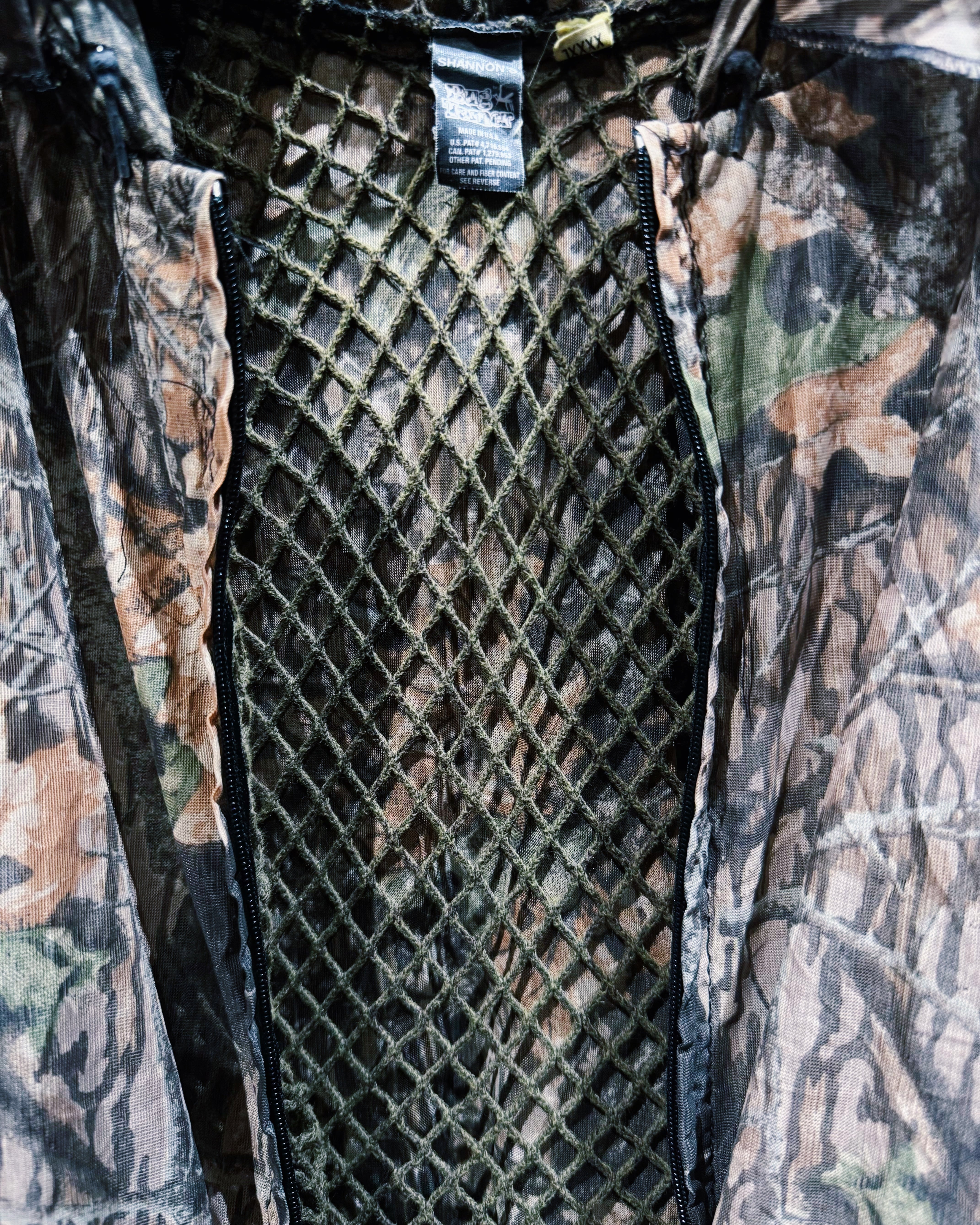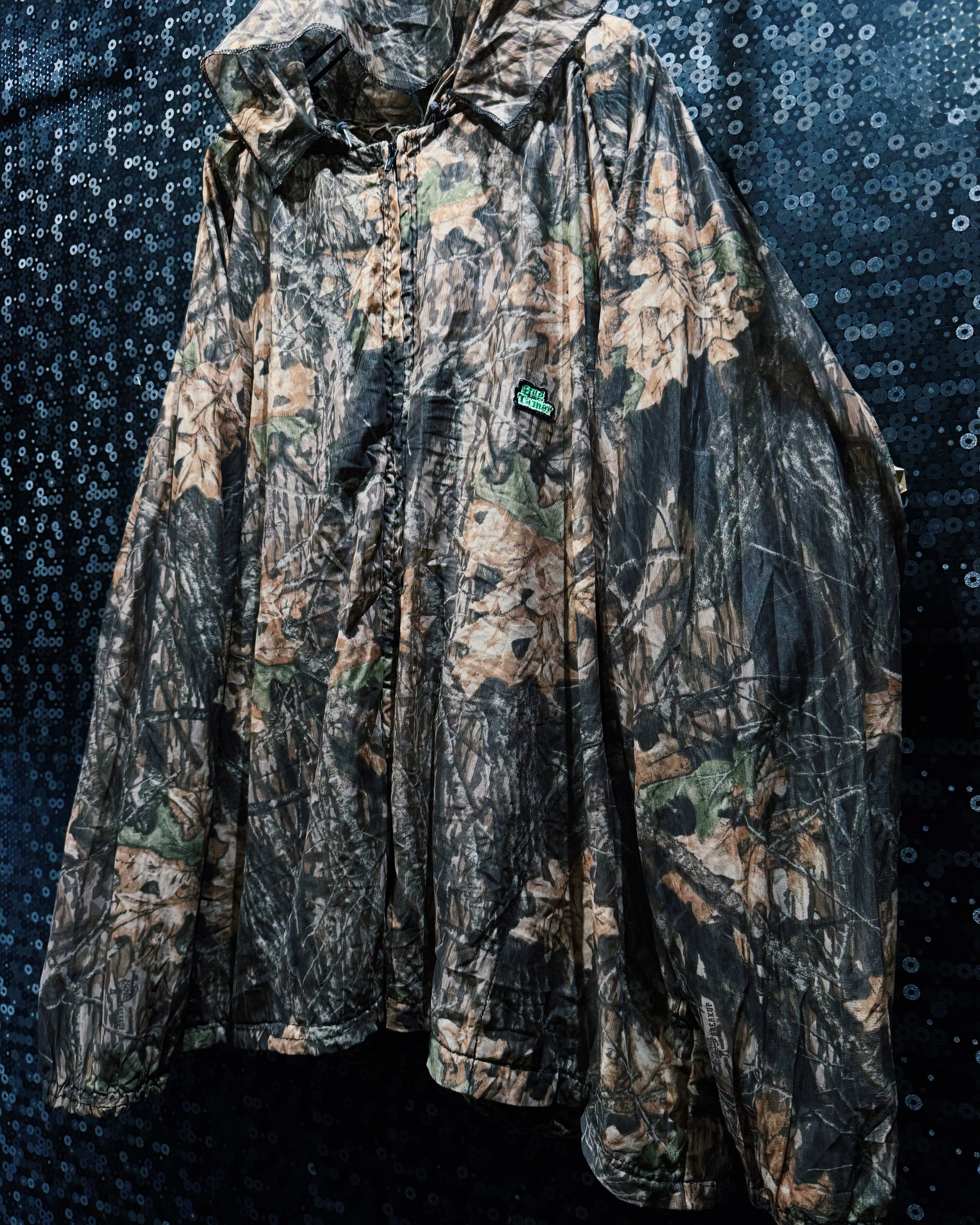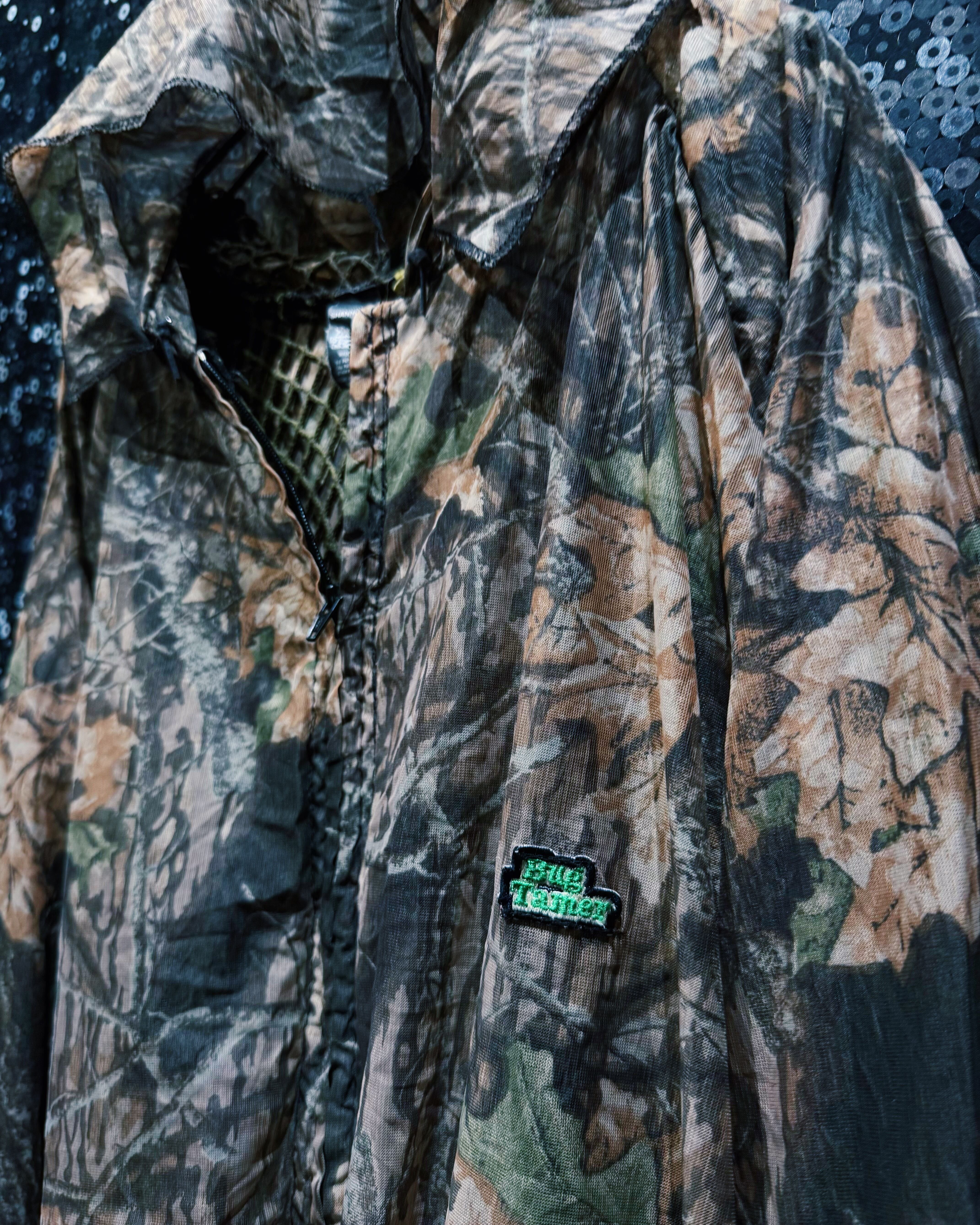軽量かつ通気性のあるシェル素材に、本格的なウッドランド迷彩柄を落とし込み、狩猟やフィッシングといったアウトドアシーンで高い実用性を誇った。胸元には「Bug Tamer」のワッペンが配置され、シリーズ特有のアイデンティティを主張。