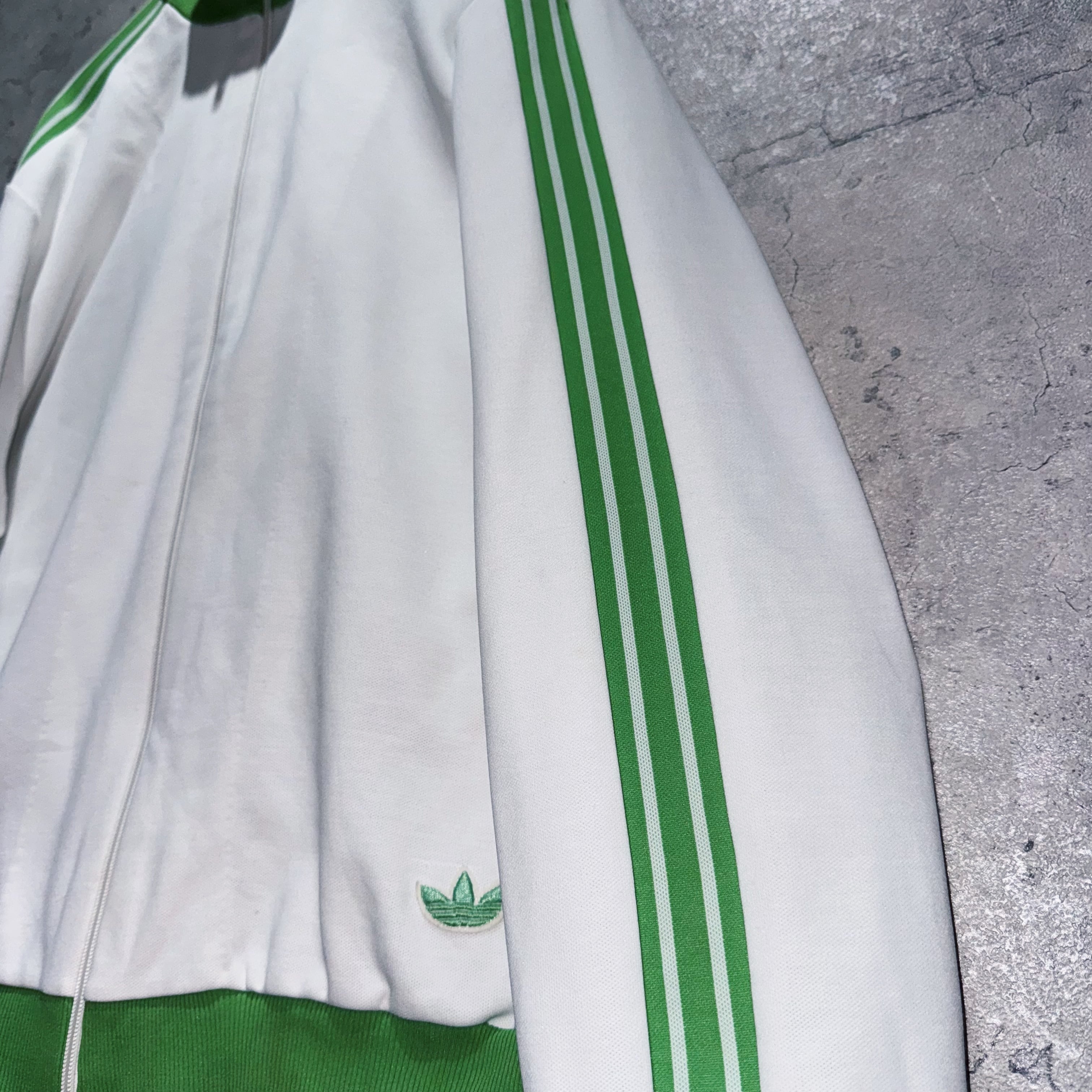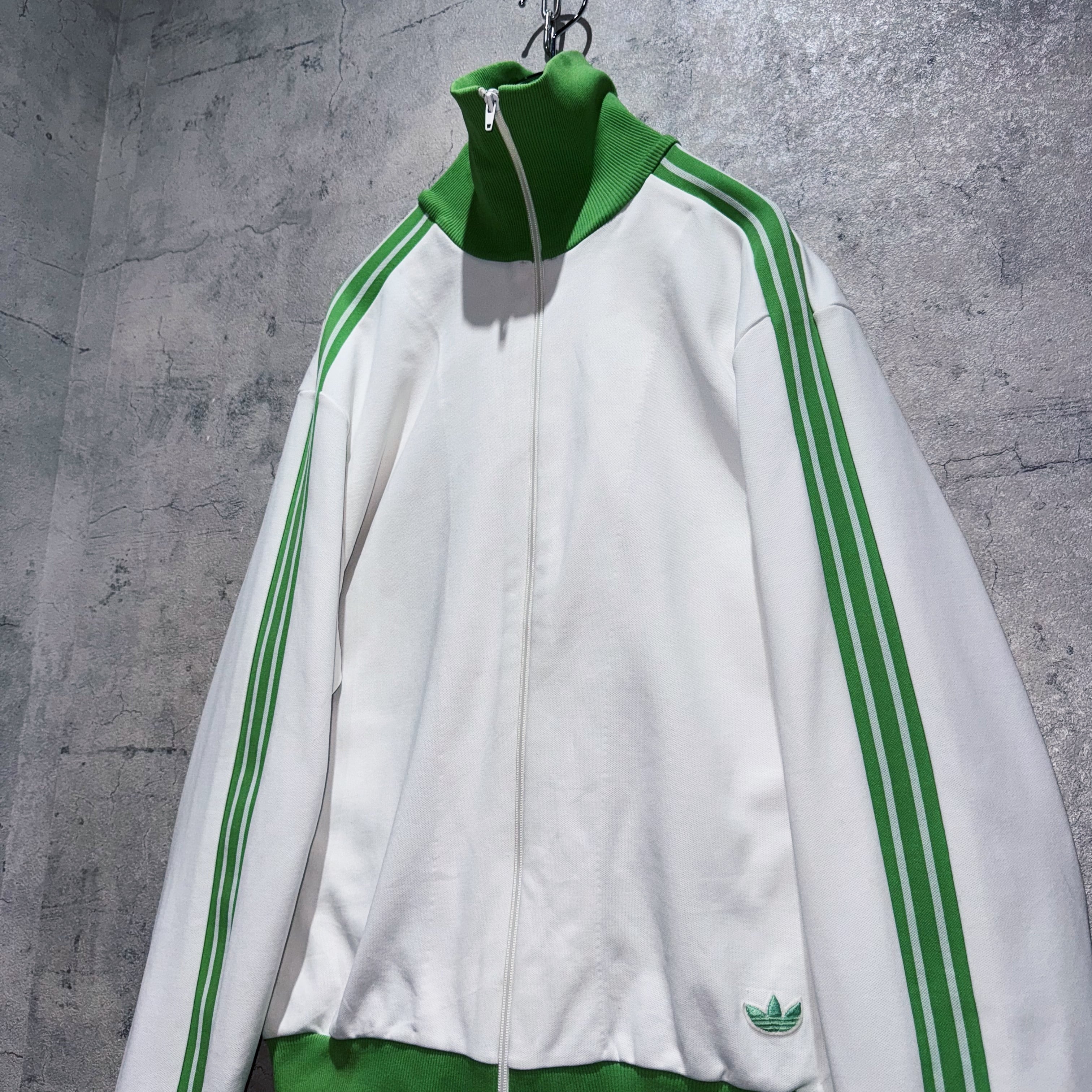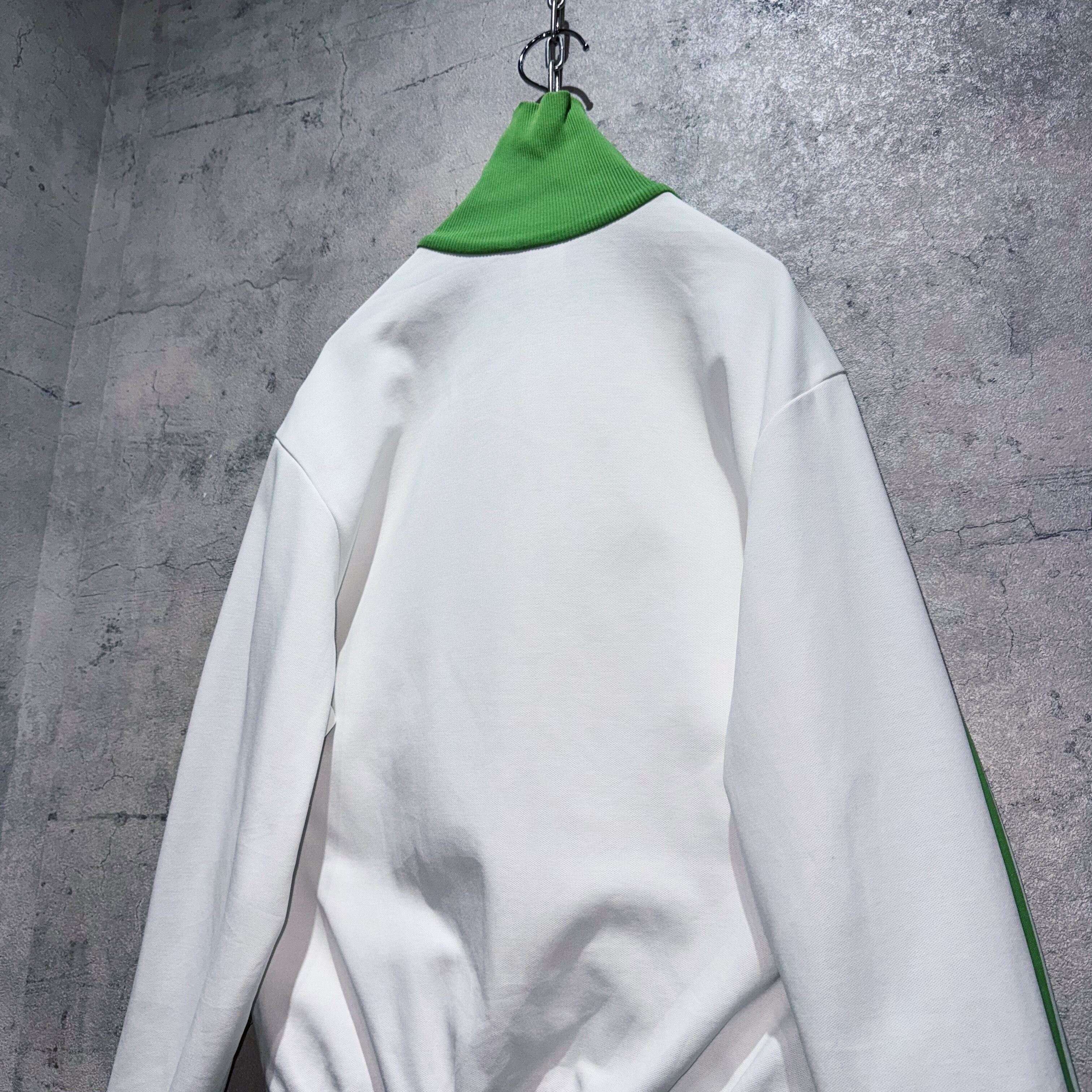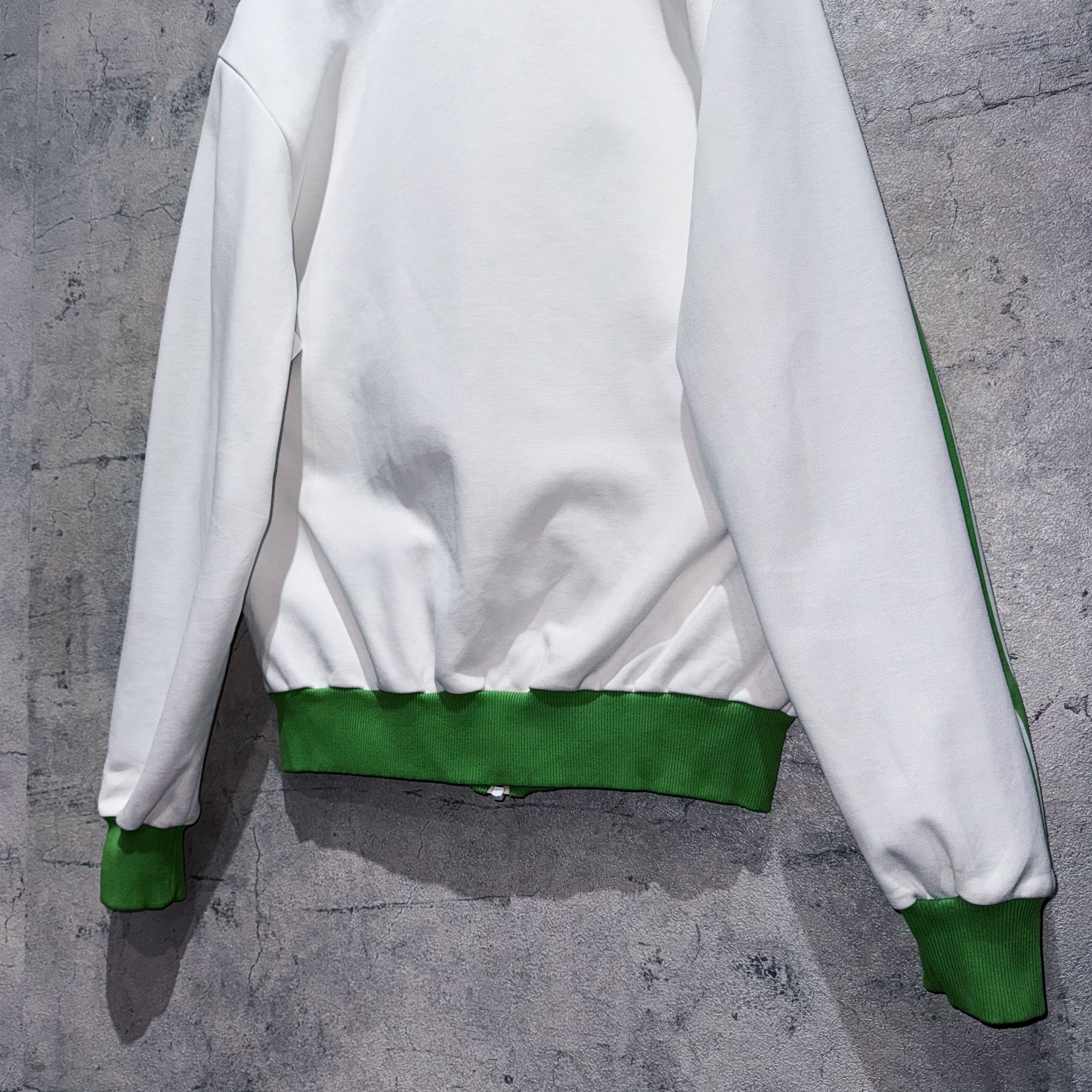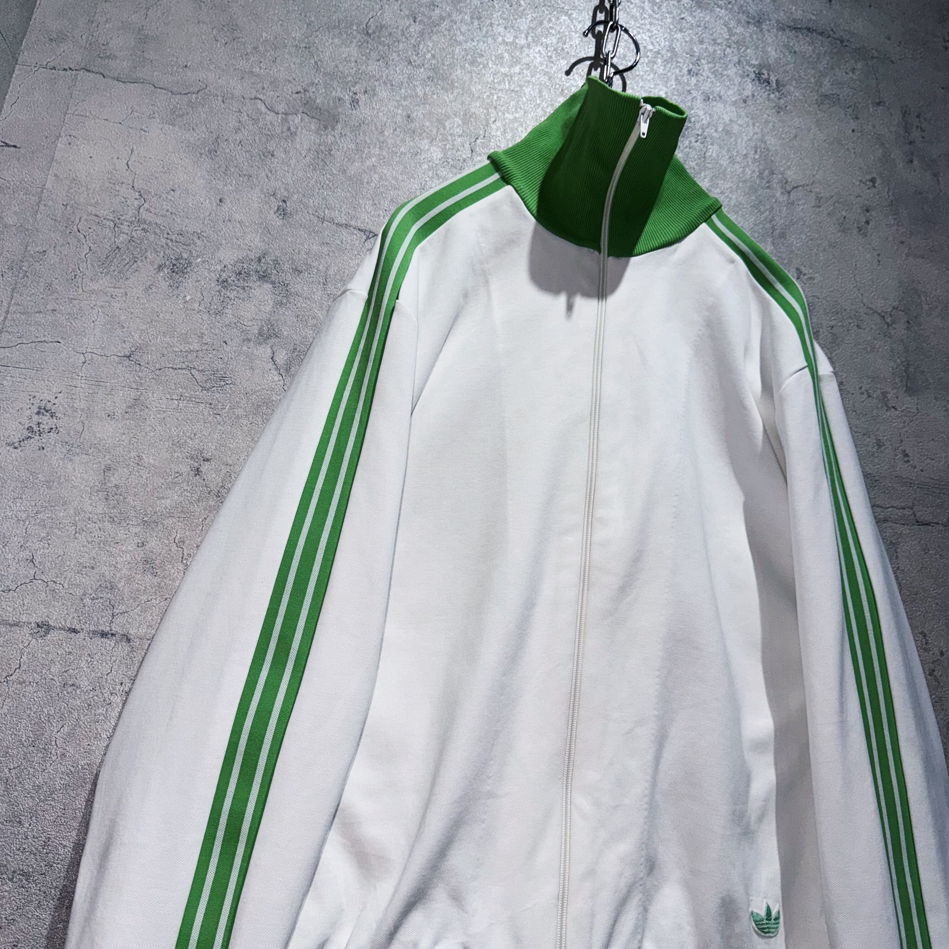 今回も中々お目にかかれないカラーリングでご用意。ホワイトのボディに、アディダスの象徴的な3ストライプスとトレフォイルをライトグリーンであしらった稀有な1着。