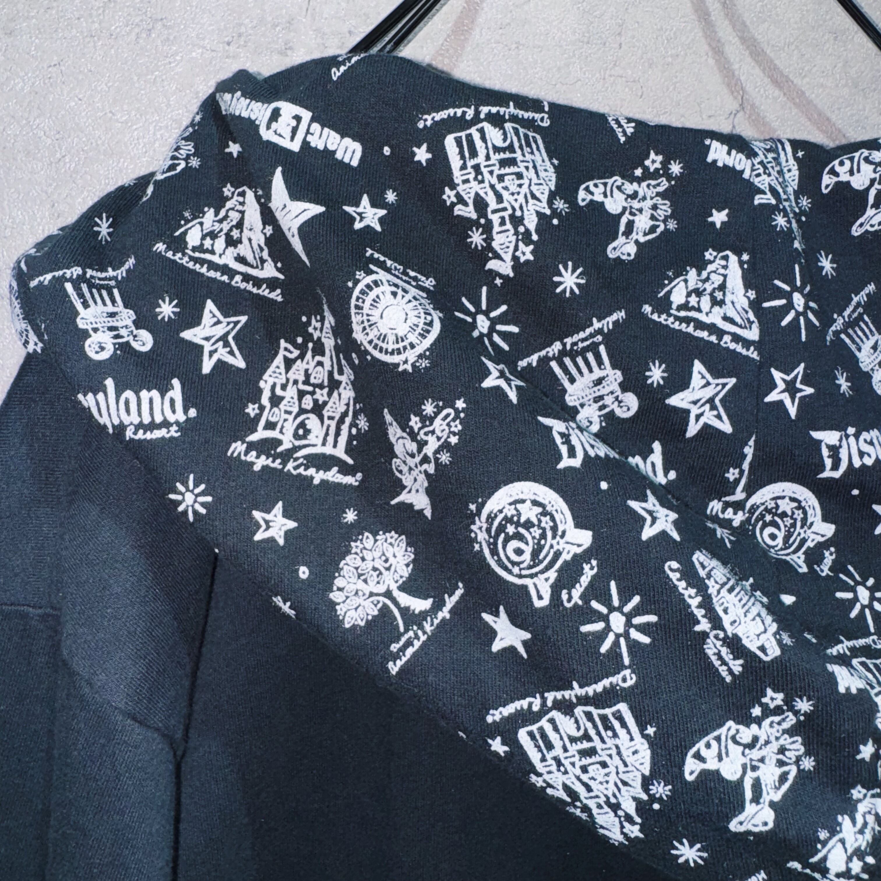 フードの裏側にはシンデレラ城やエプコット、ツリー・オブ・ライフなど各パークの象徴が描かれています。