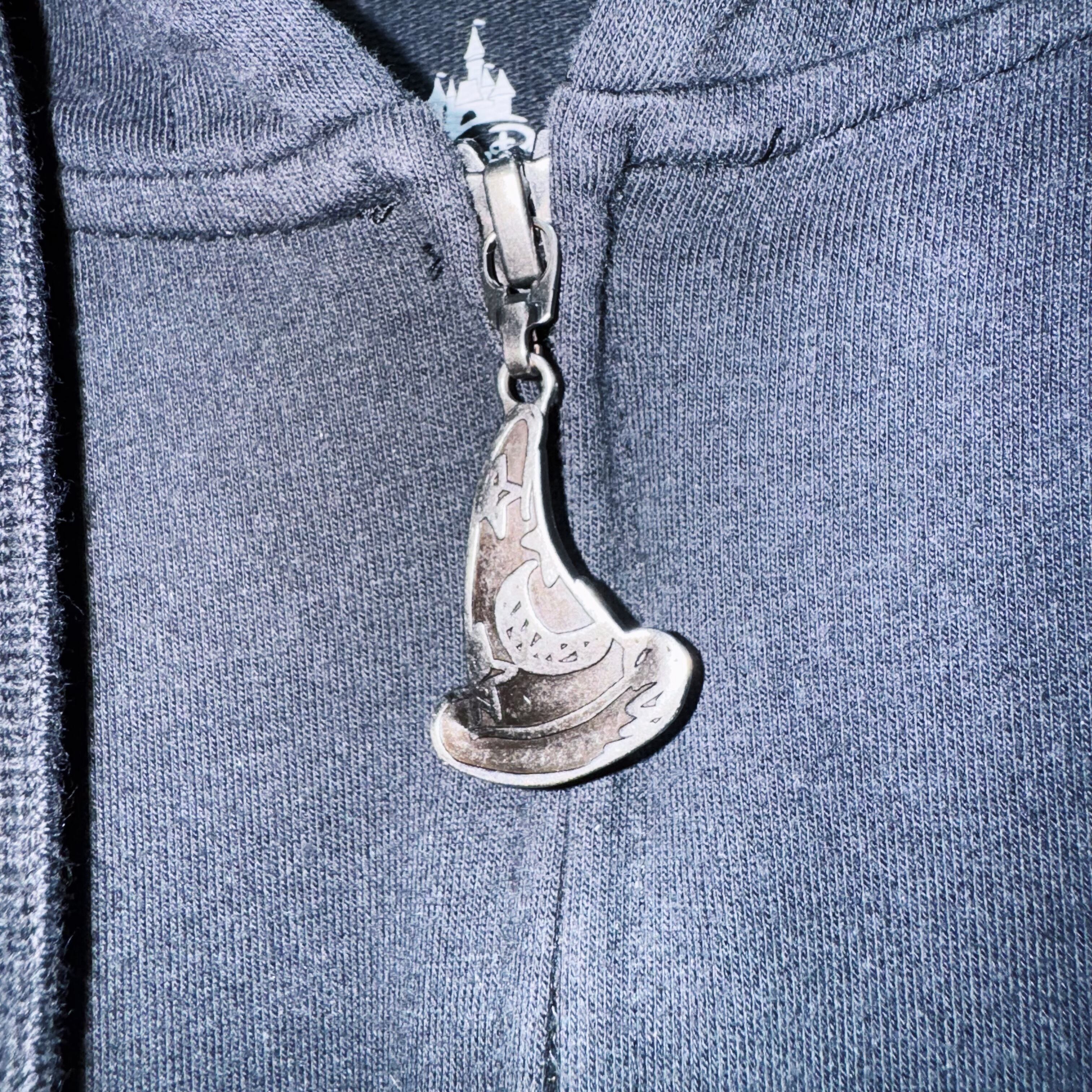 同じようなプリントで袖と背面にもしっかりとデザインがあしらわれています。ジップの形がソーサラーミッキーの帽子の形になっているのも粋ですね。