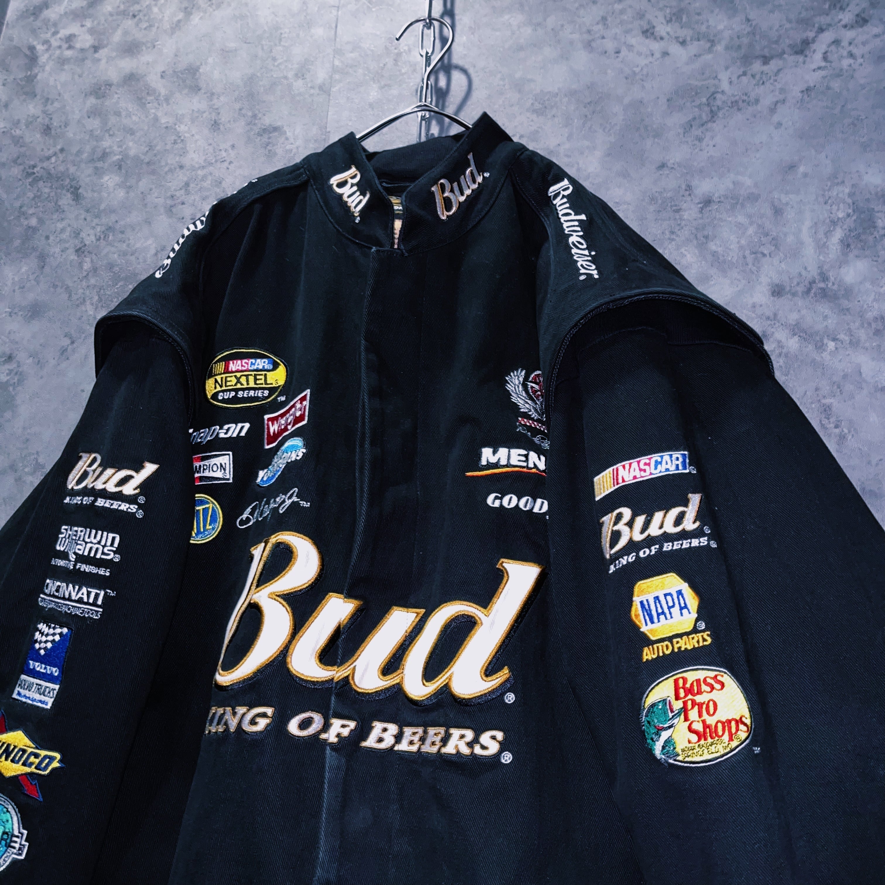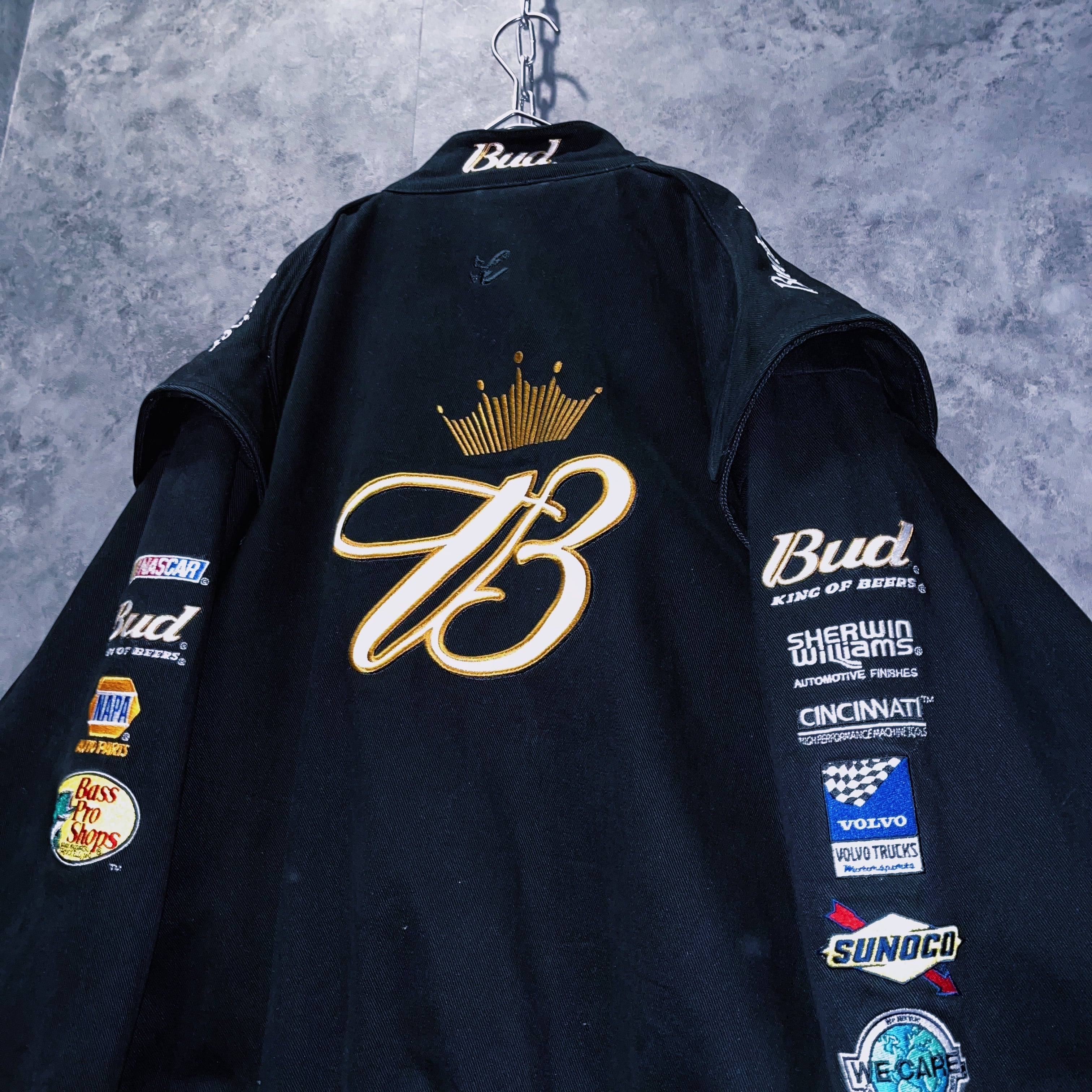 ヴィンテージ"HASE Authentics"Budweiserカンパニースポンサーパッチワークデザインレーシングジャケット