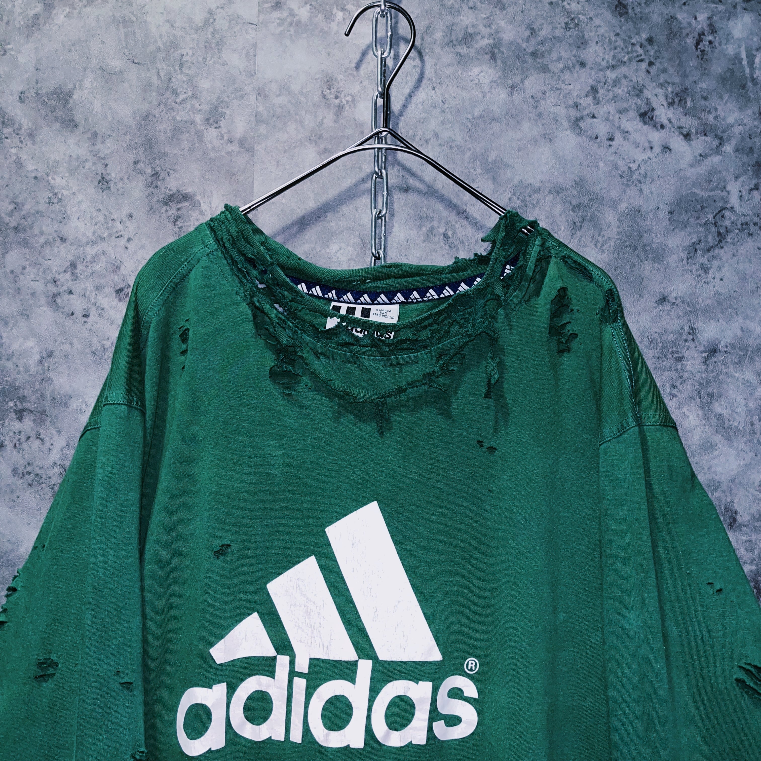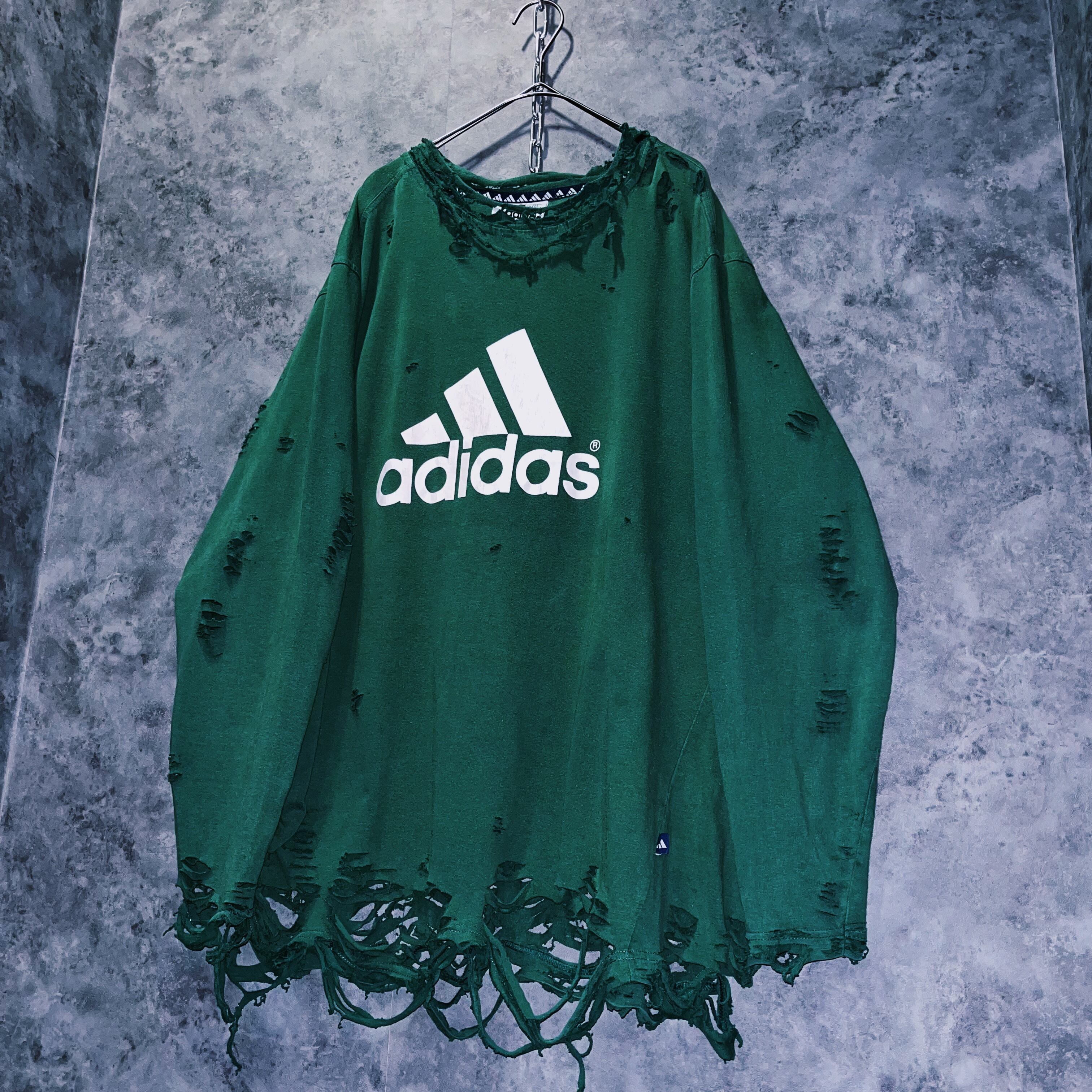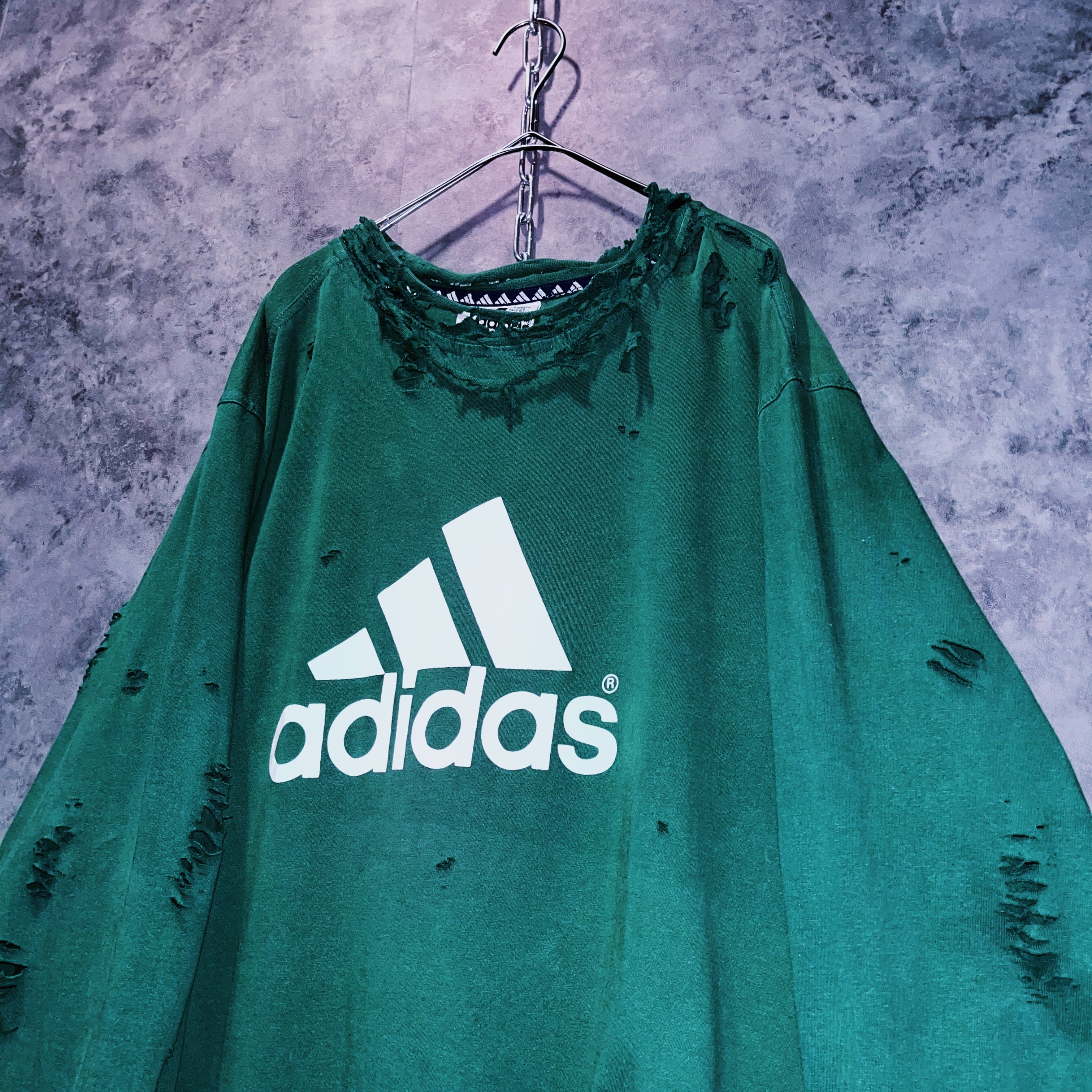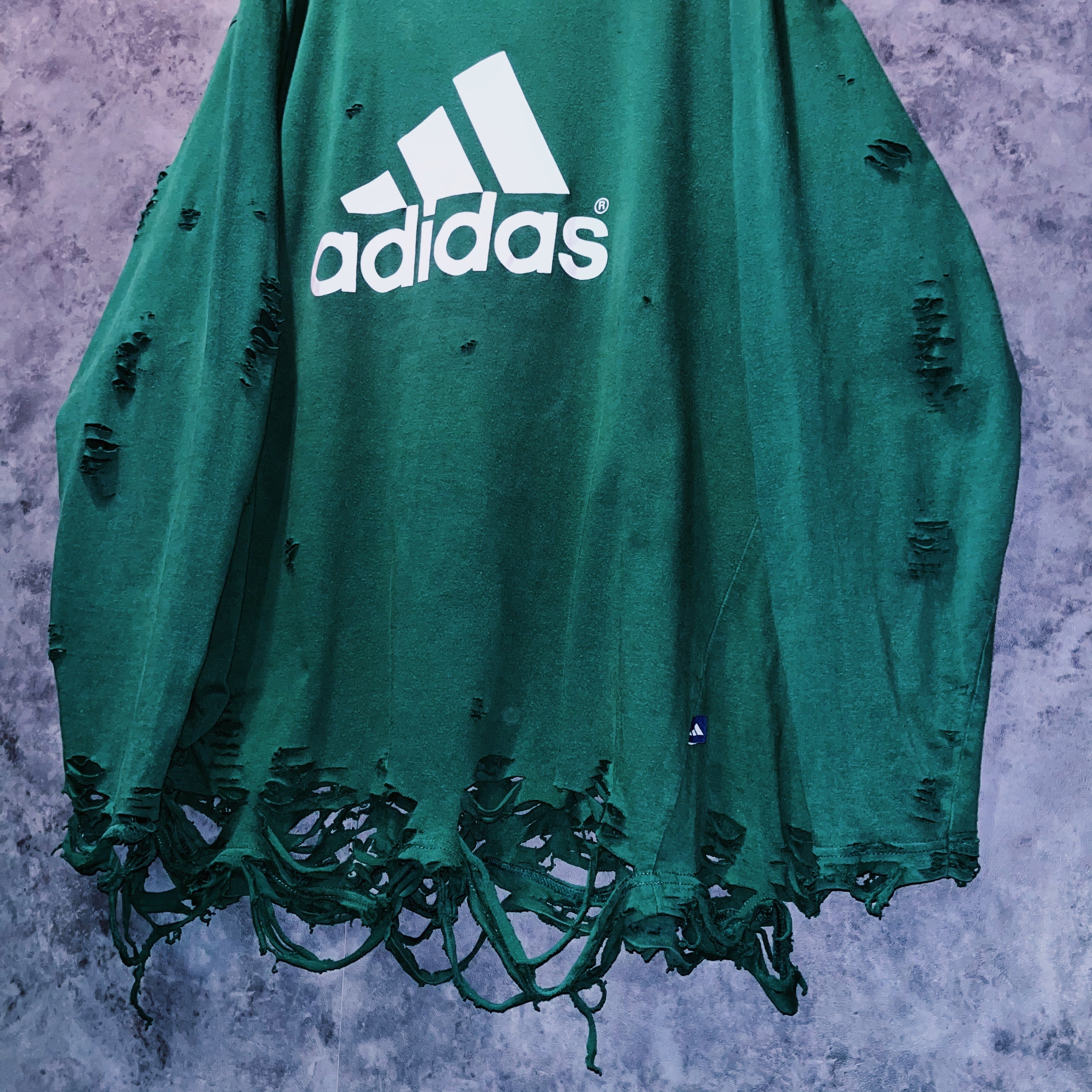 ヴィンテージ“adidas”パフォーマンスロゴデザインボロカスタムロングスリーブTシャツ