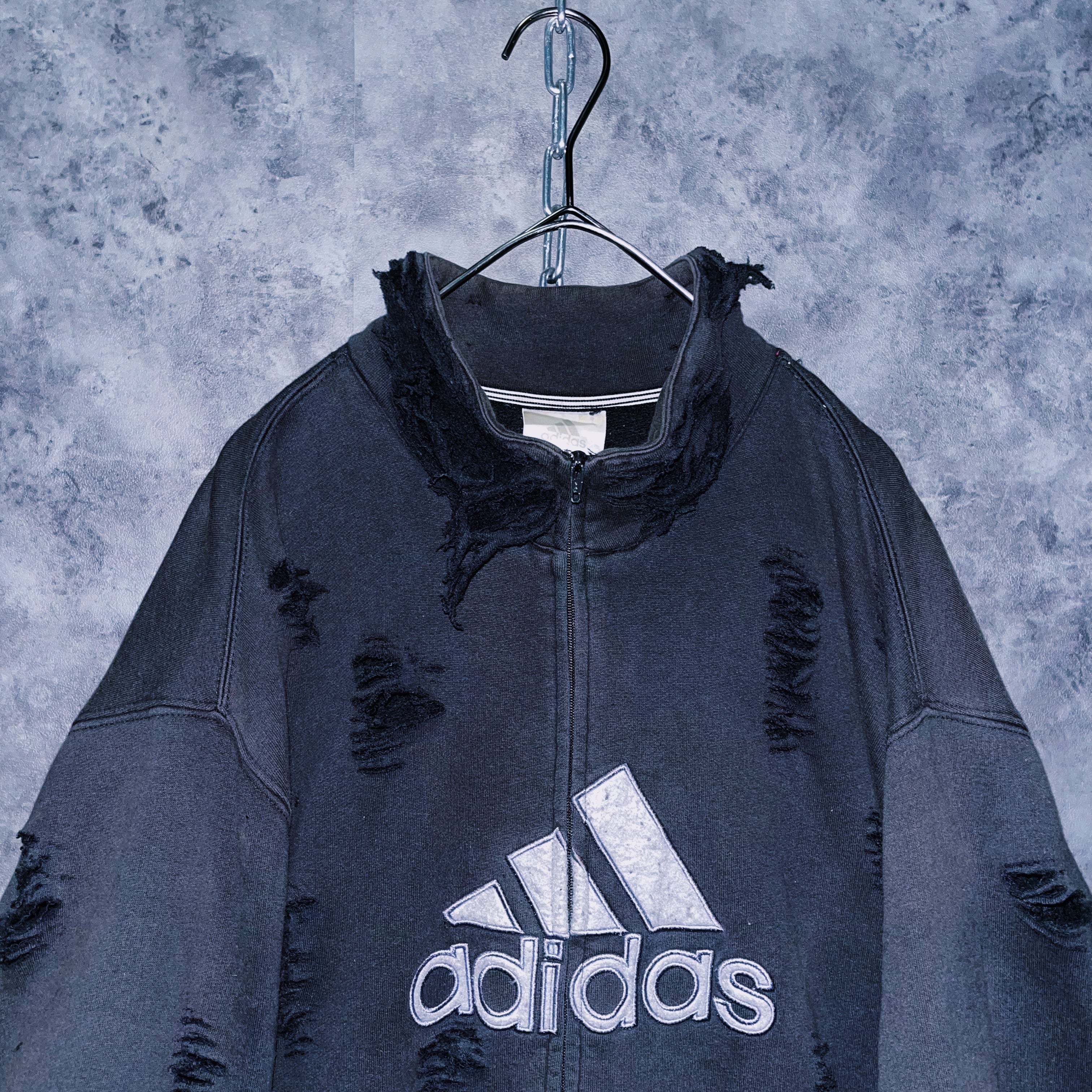 ヴィンテージ“adidas”パフォーマンスロゴデザインボロカスタムジップアップスウェット