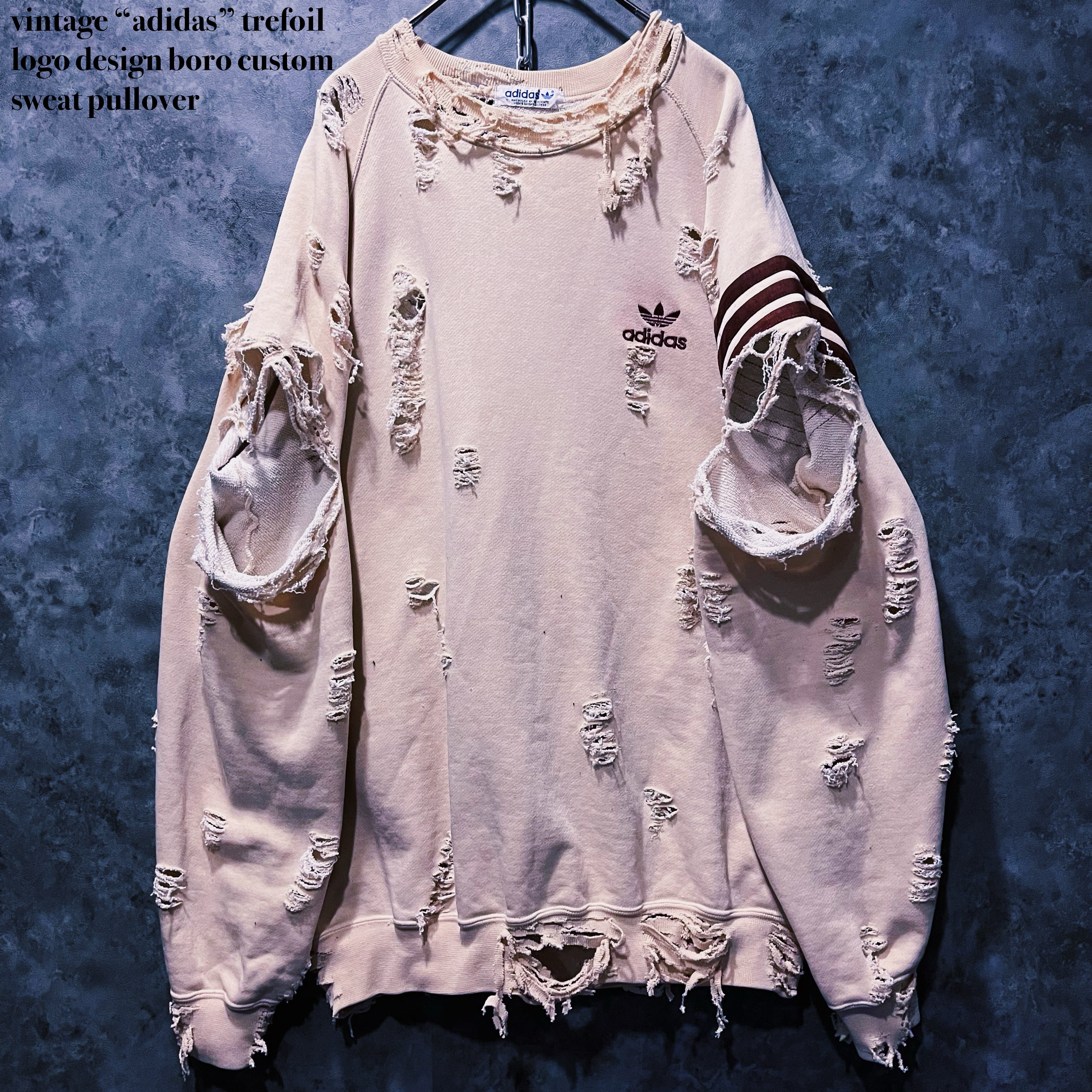 ヴィンテージ“adidas”トレフォイルロゴデザインボロカスタムスウェットプルオーバー