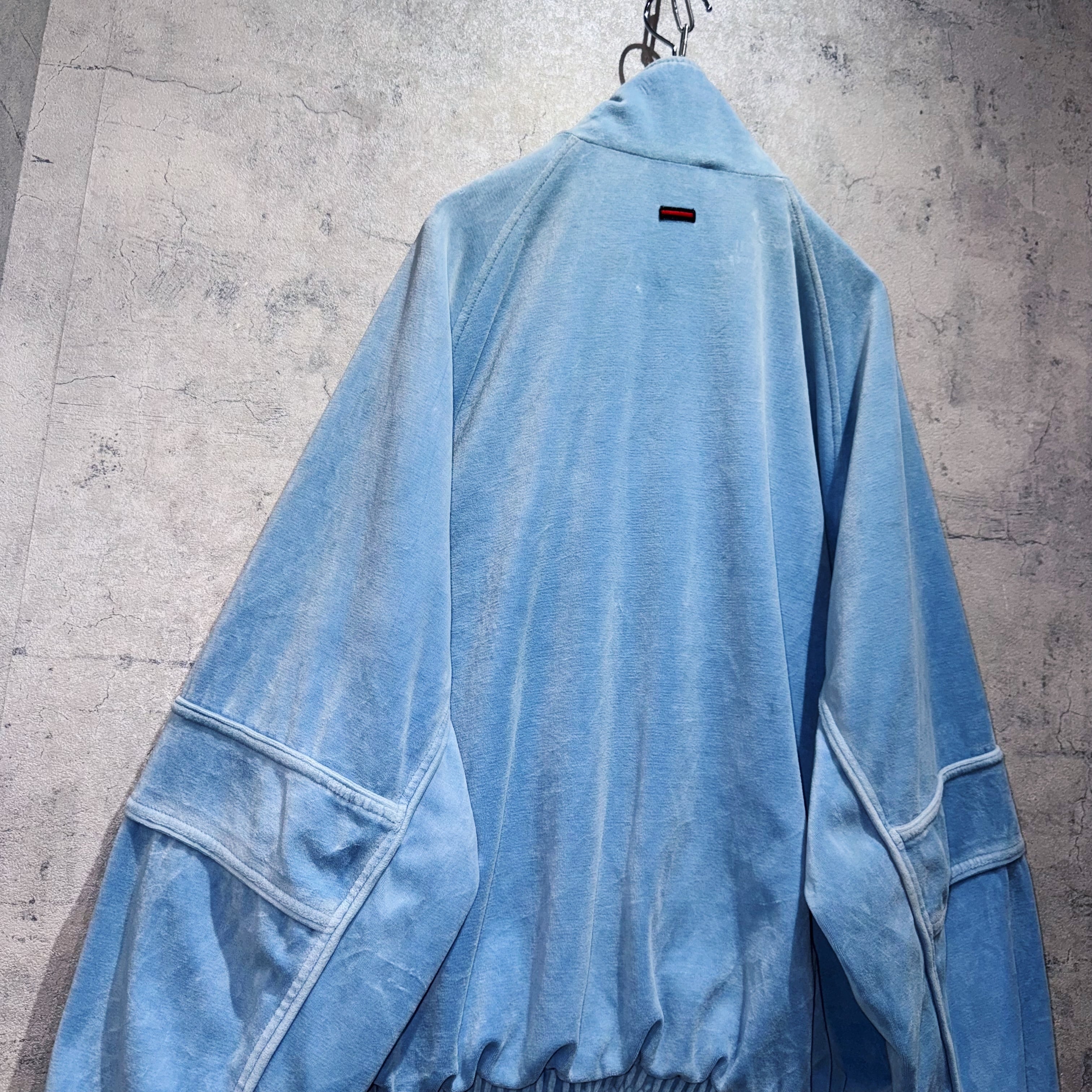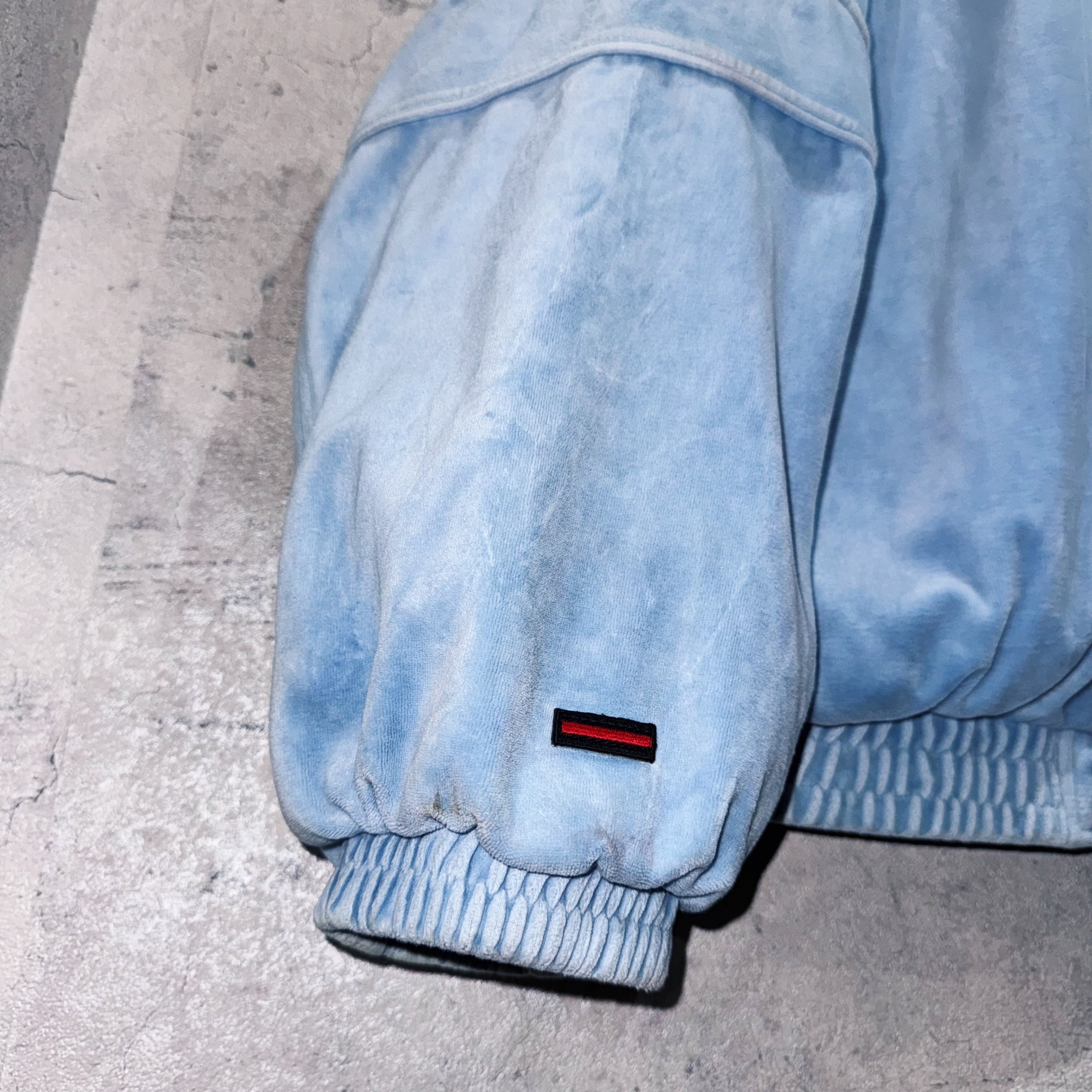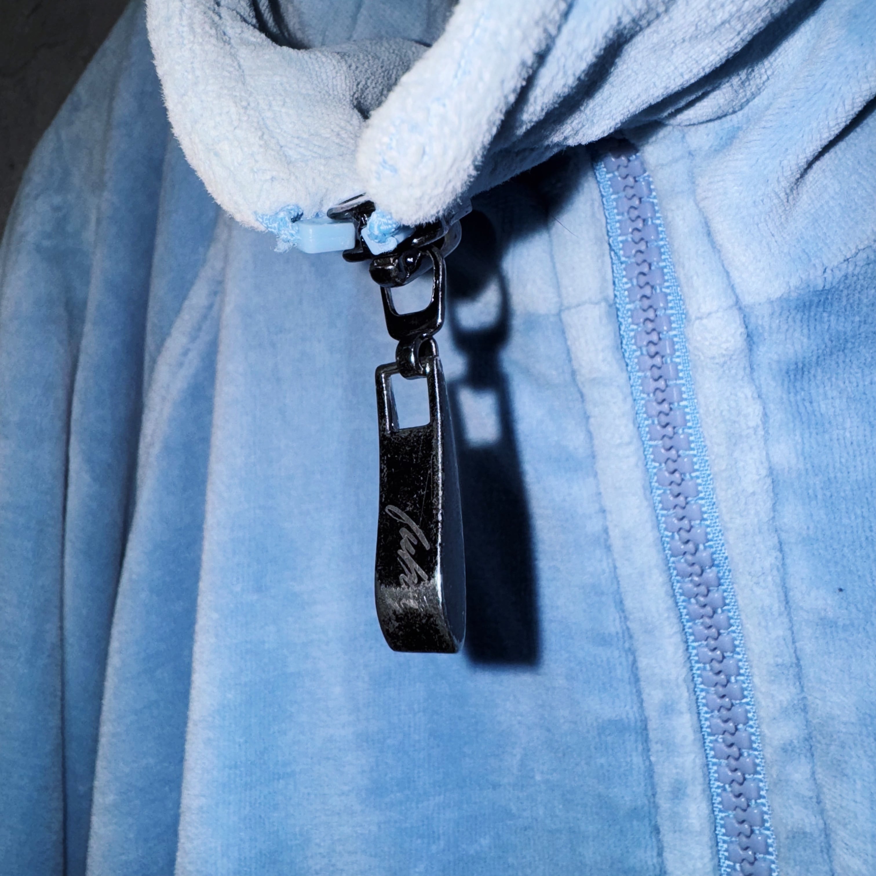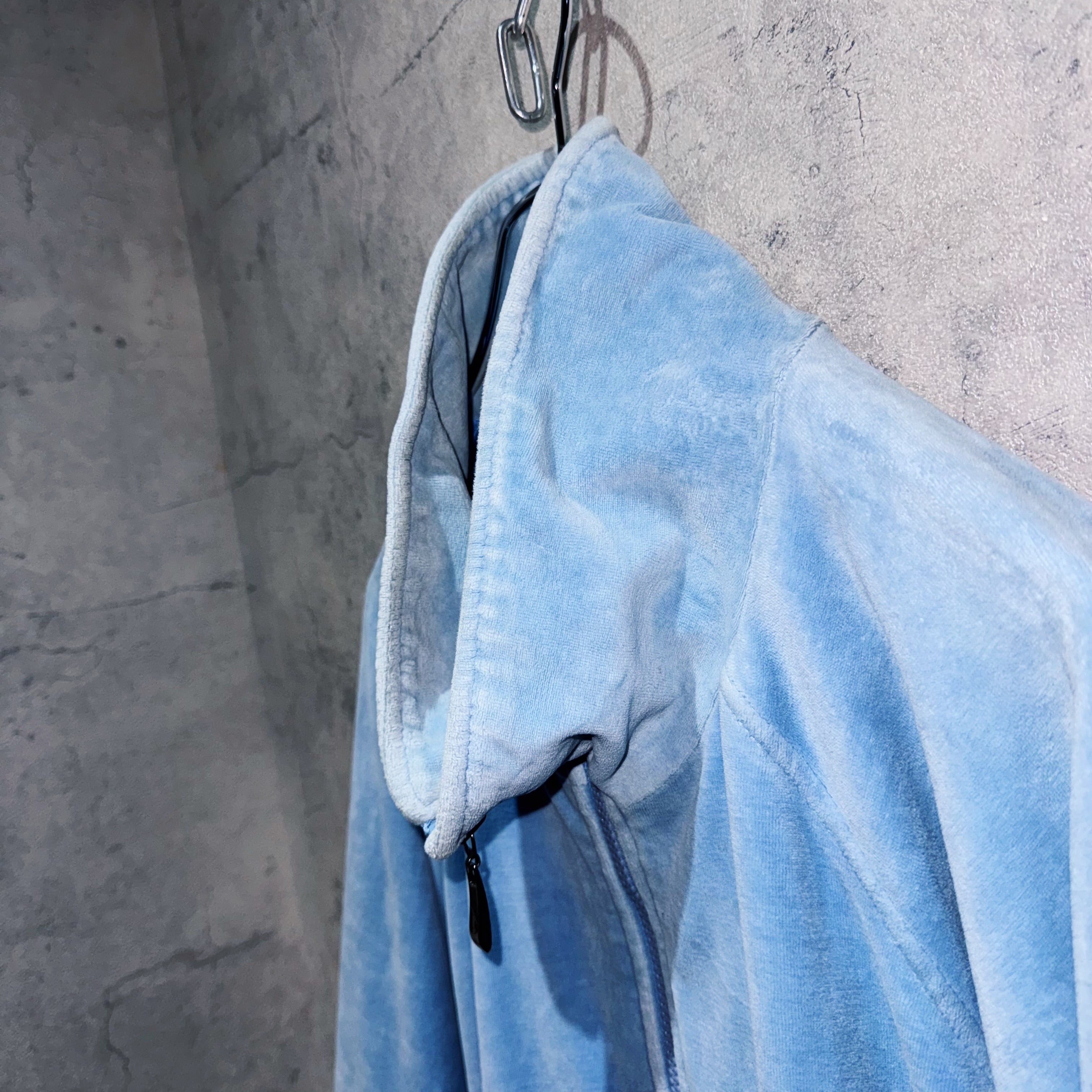 きめ細やかで程よく美しい光沢感を身に纏ったベルベット素材を採用したジャケット。非常に美しいスカイブルーのボディの色合いも魅力的。