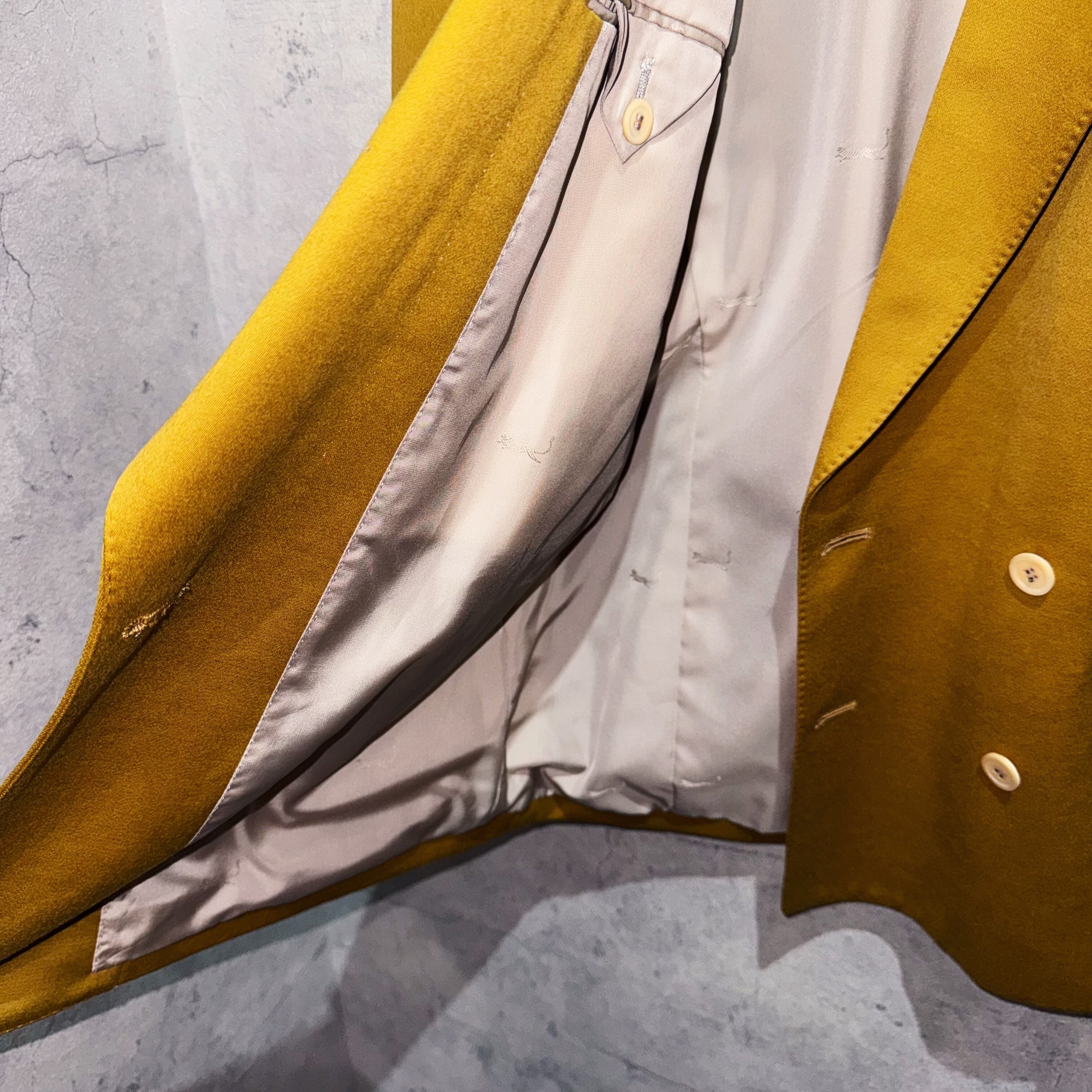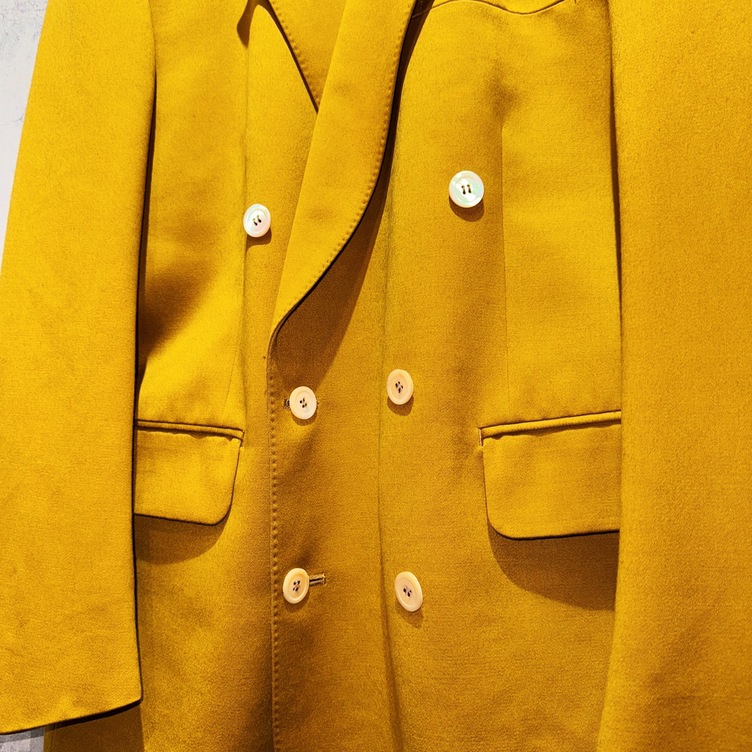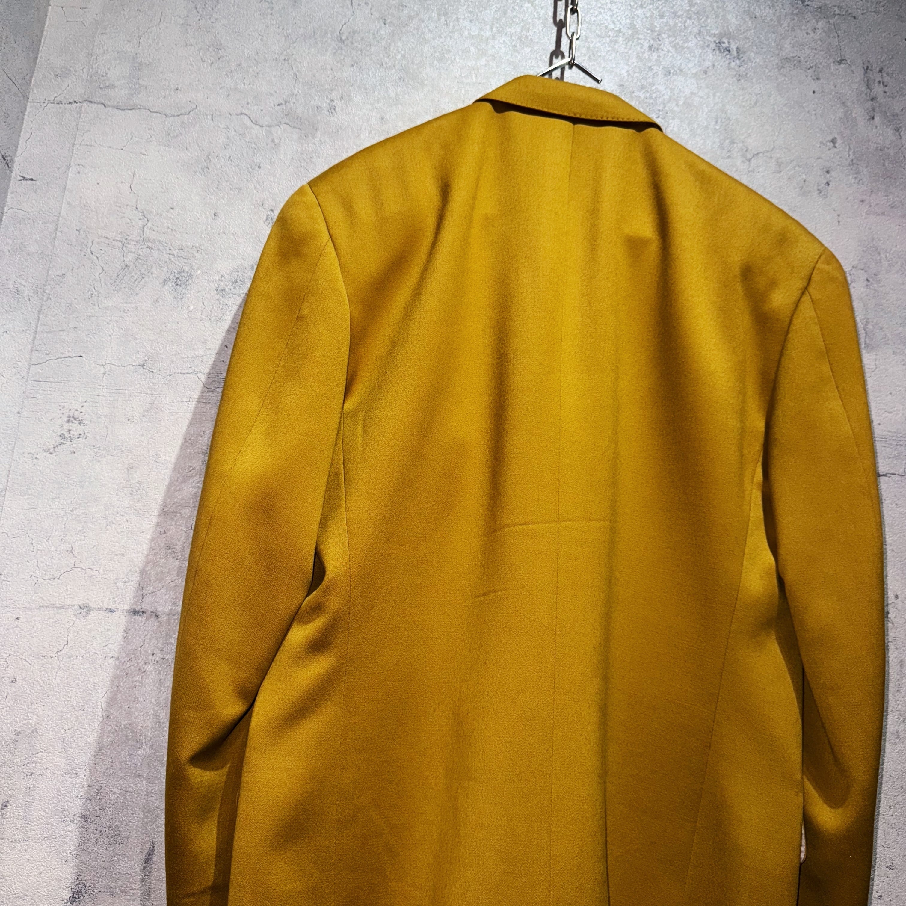 写真からでも伝わってくる美しい光沢を放つ上質なウール素材を採用し、アンティークゴールドカラーを身に纏ったダブルのテーラードジャージ。