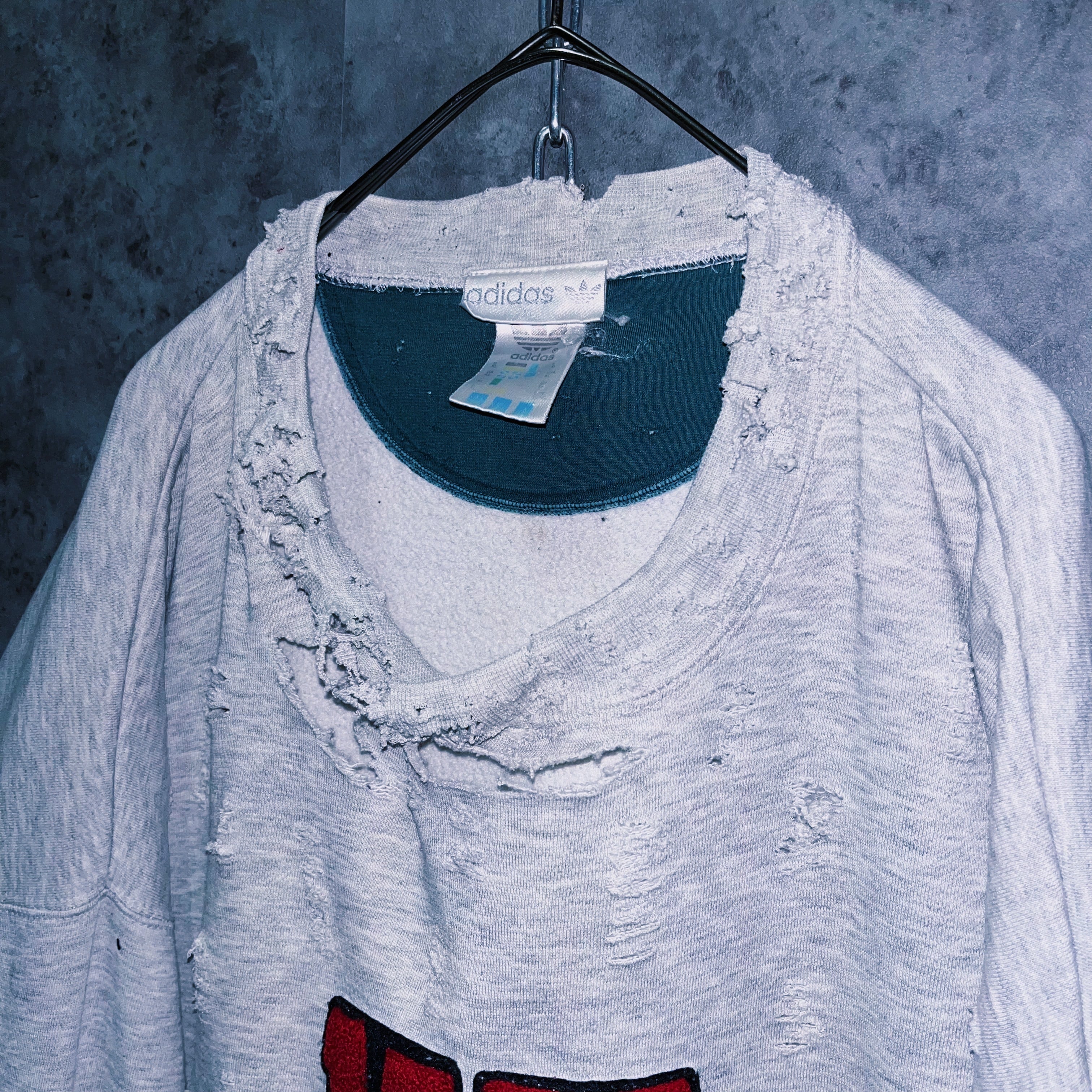 ヴィンテージ“adidas”ロゴエンブロイダリーデザインボロカスタムスウェットプルオーバー