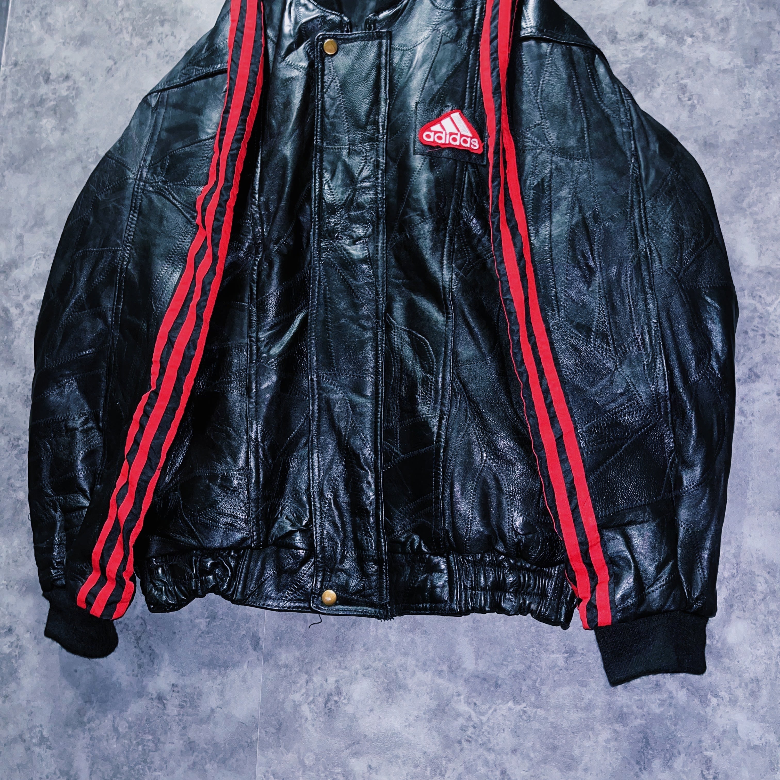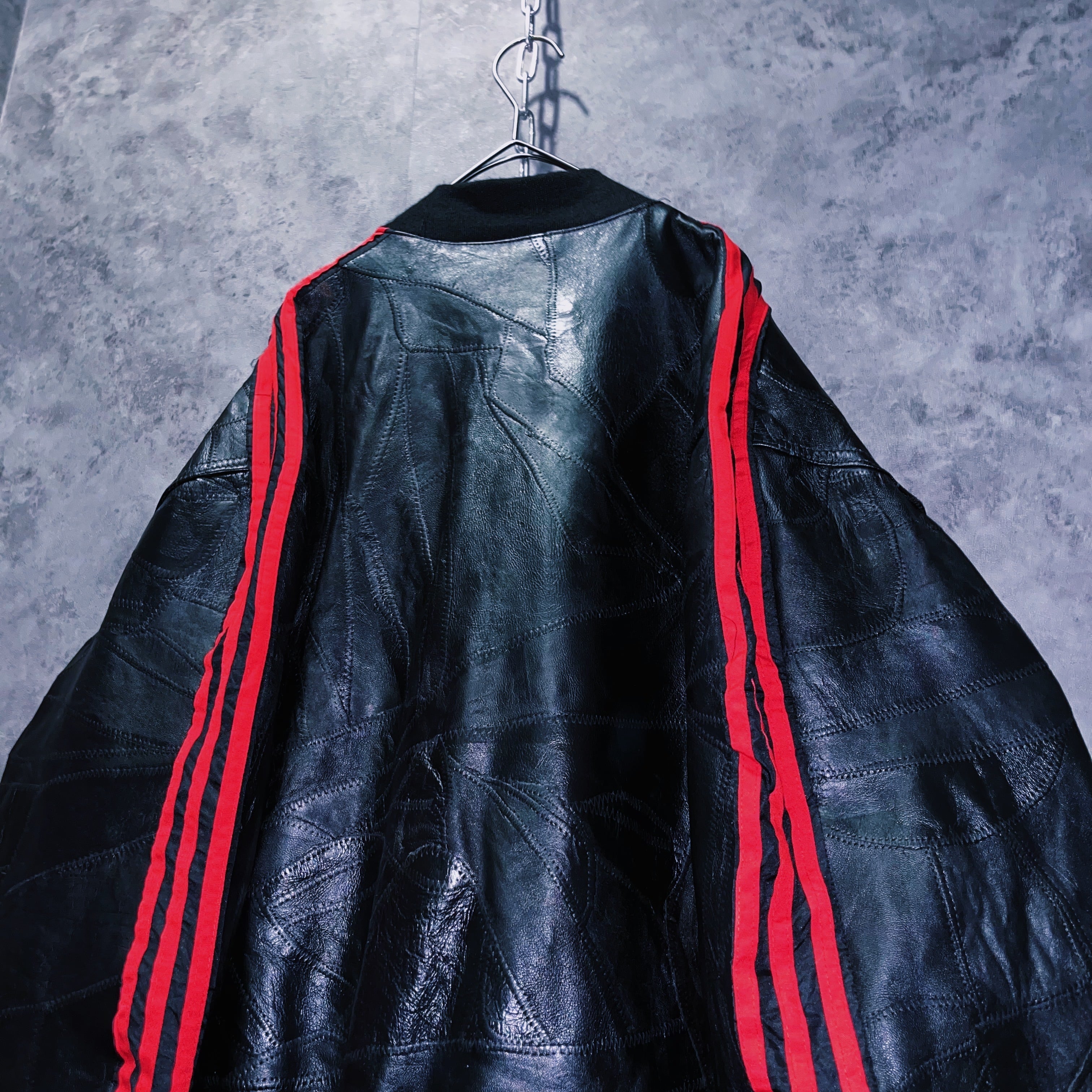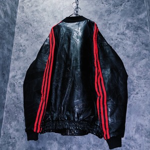 special "original re:make" RED color three stripes design vintage leather jacket three stripe edition