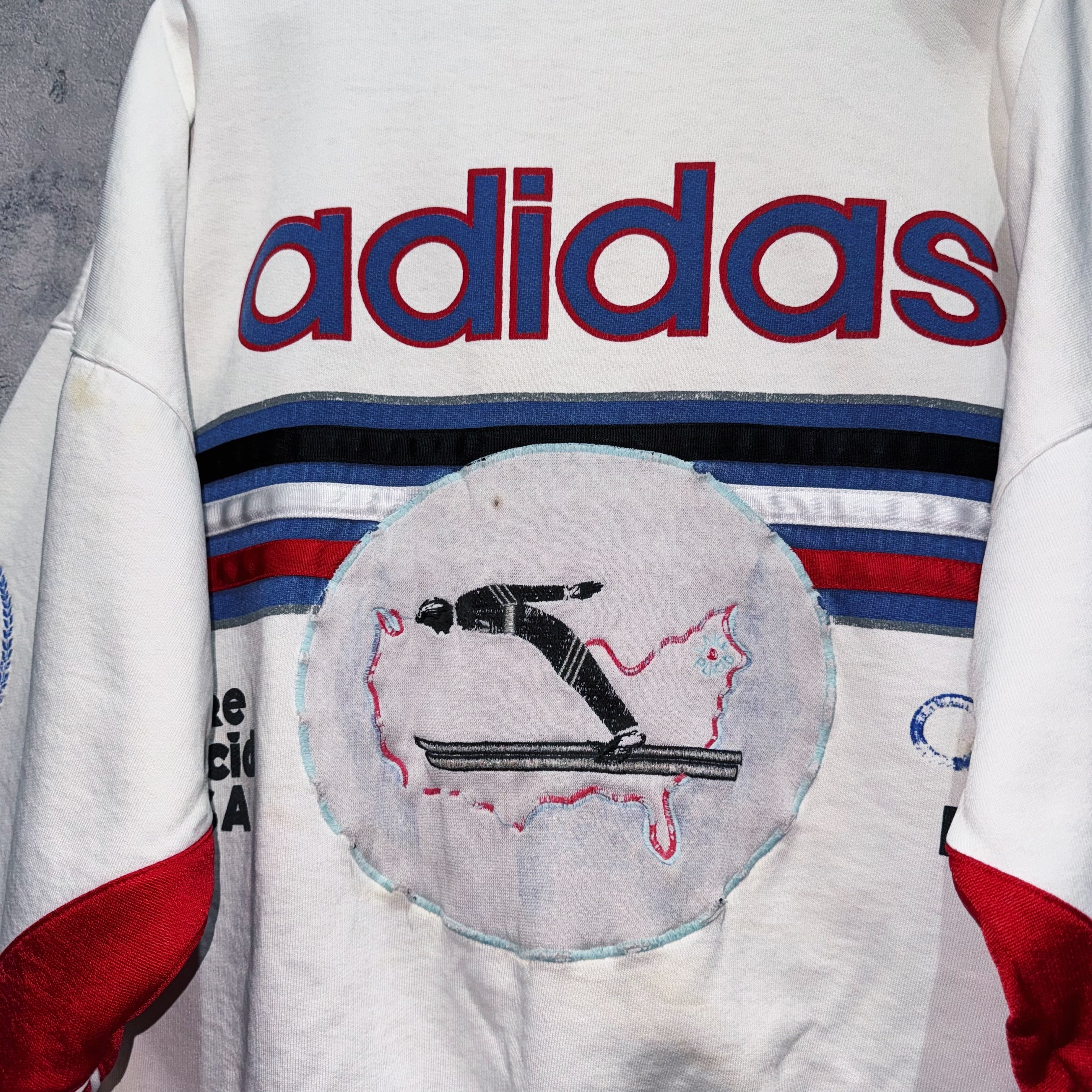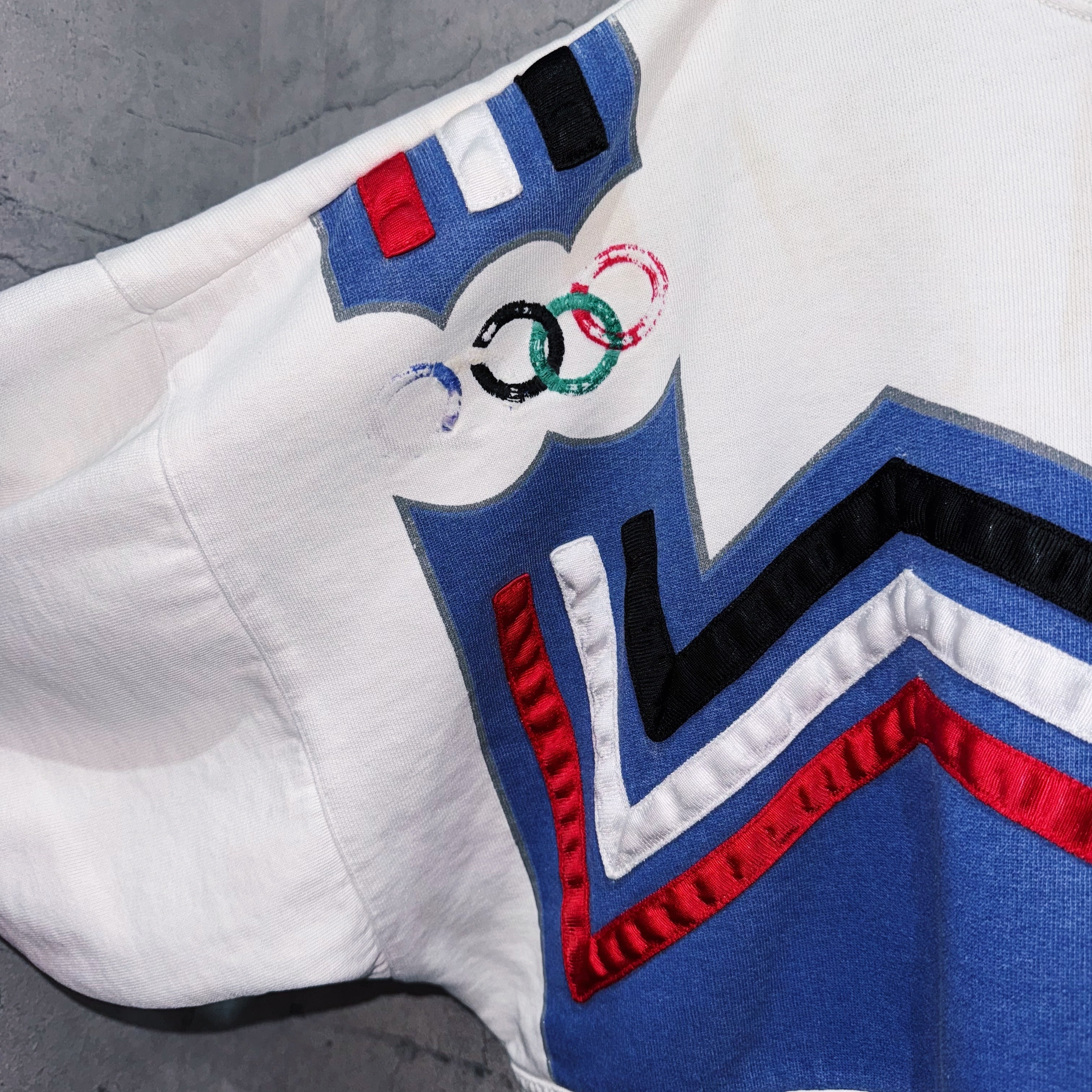 こちらは第13回冬季オリンピック、レークプラシッドオリンピックの販促品としてアディダスから販売されていたデザインスウェット。