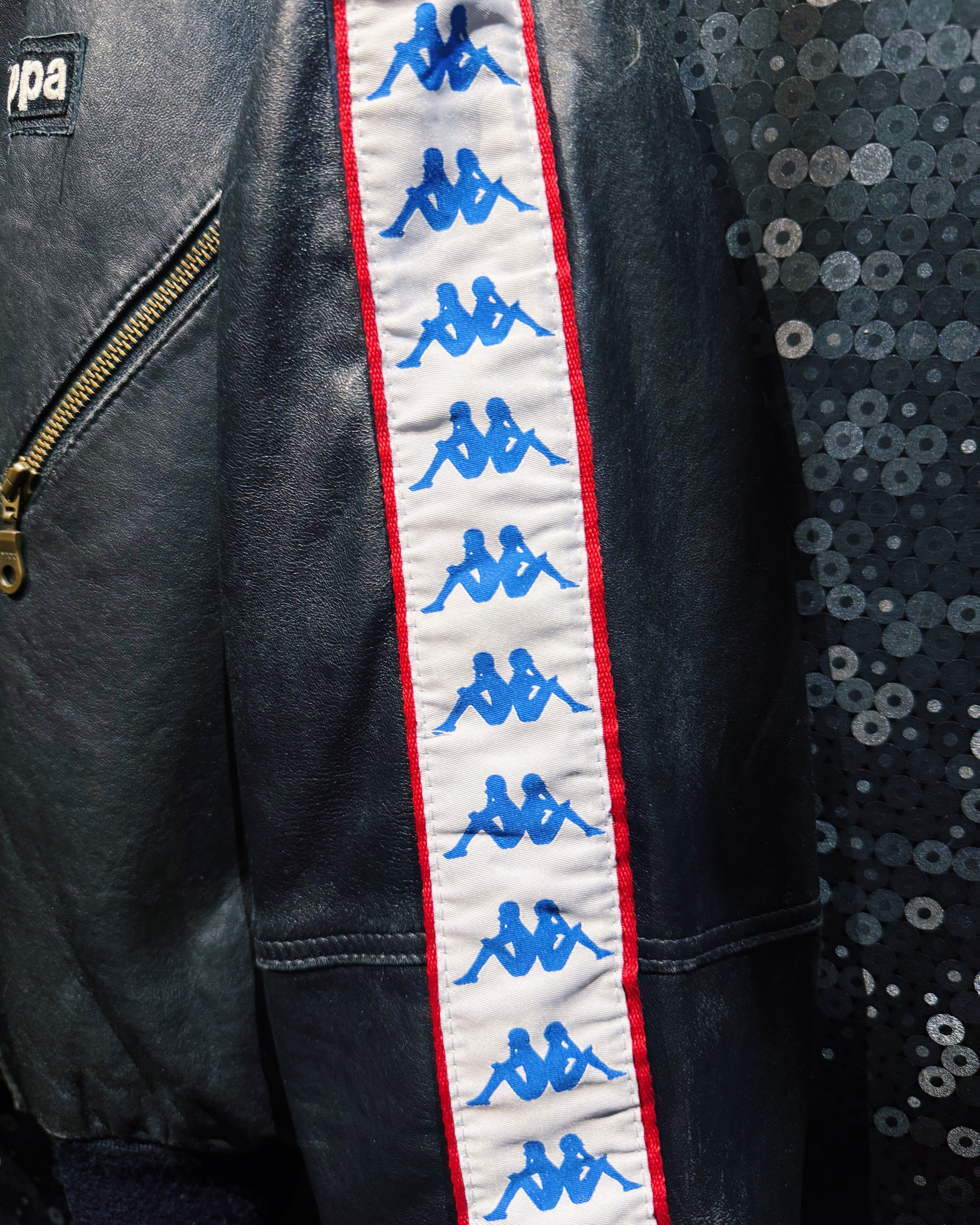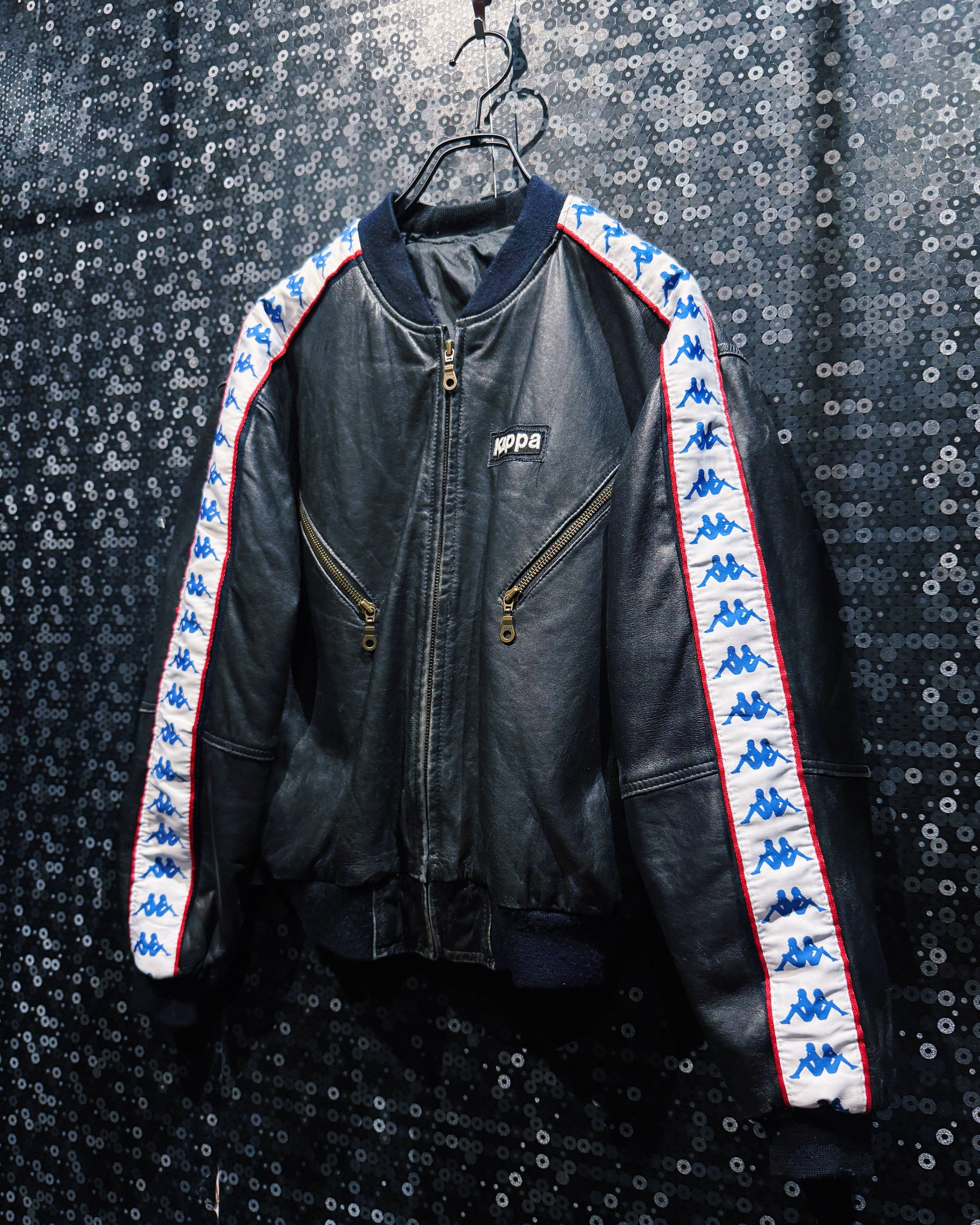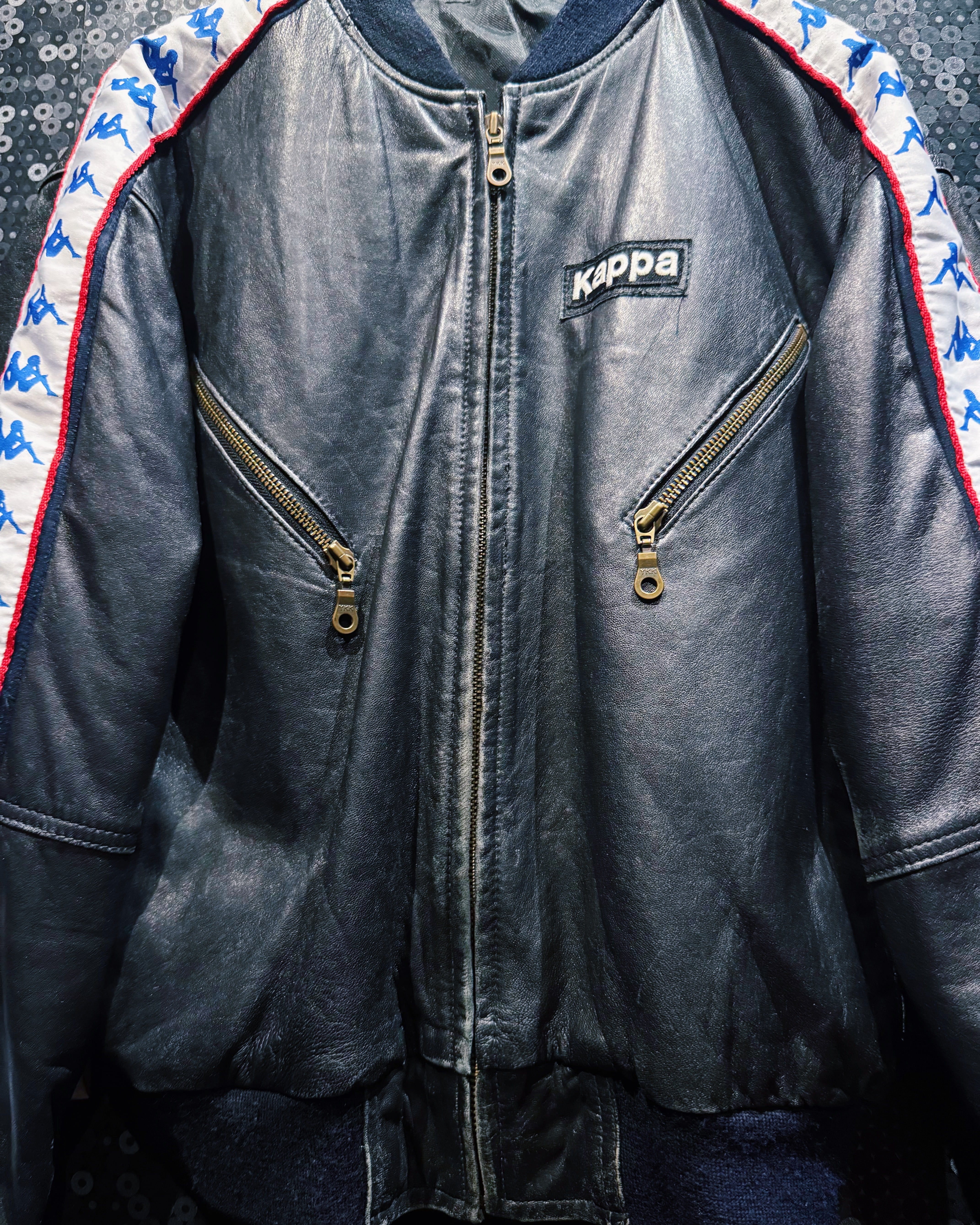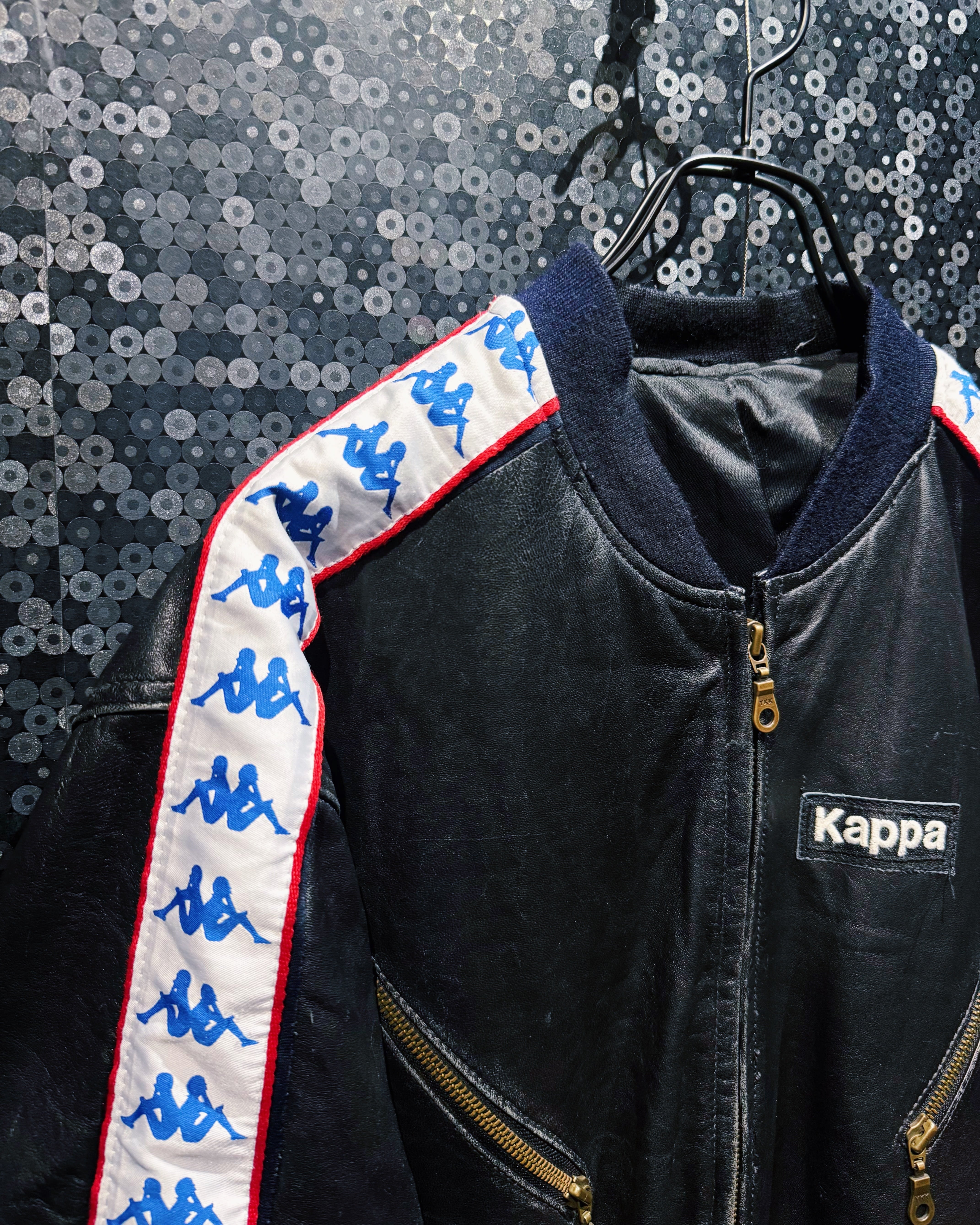 一点物として仕立てられたこのジャケットは、90sストリートとヨーロピアンスポーツブランドカルチャーを掛け合わせたハイブリッドなプロダクト。ヴィンテージレザーとKappaのテープという異素材ミックスが生み出す、唯一無二のリメイクレザー。