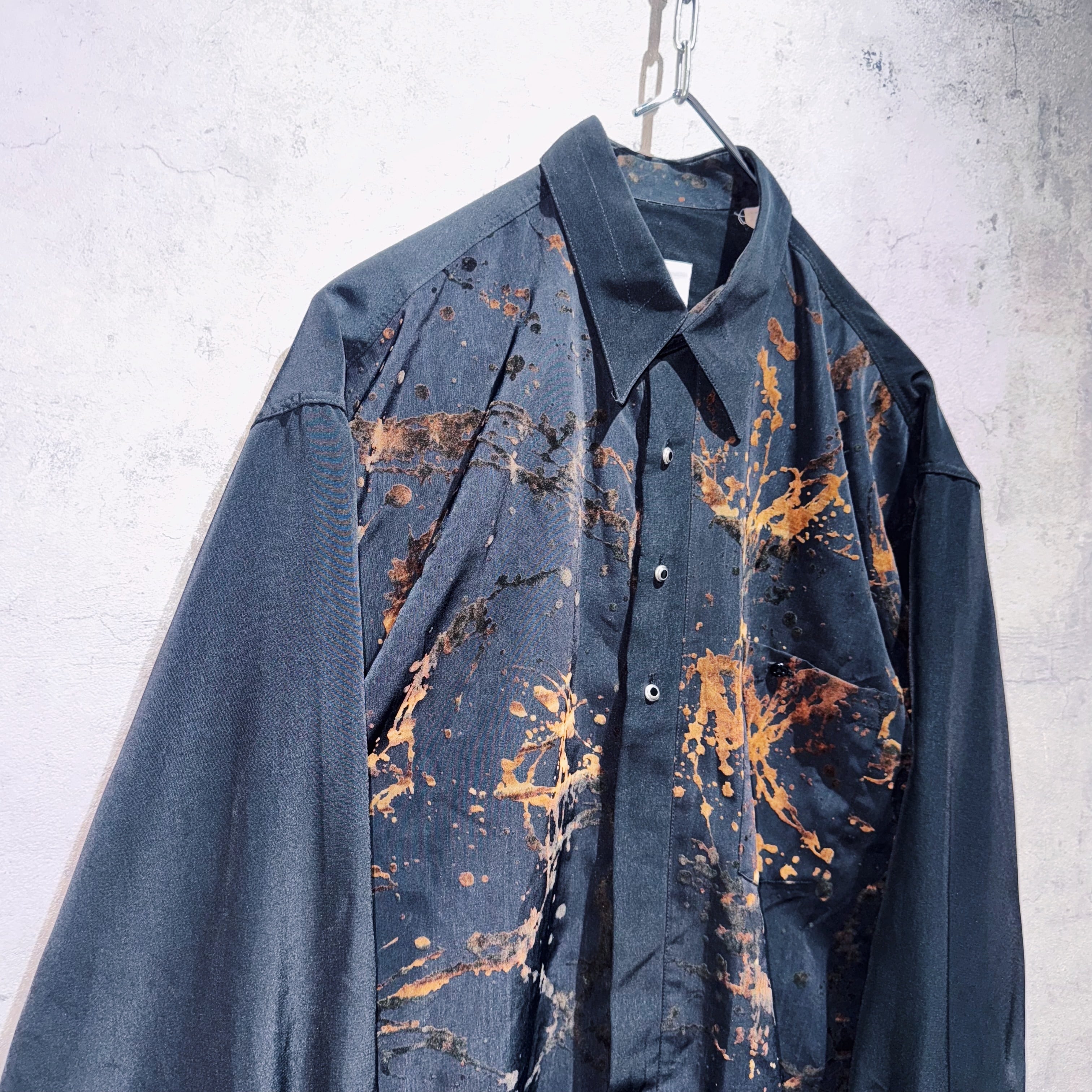 ブラックのボディにベロアのような素材でドリッピングデザインをあしらったアーティスティックなデザインシャツ。