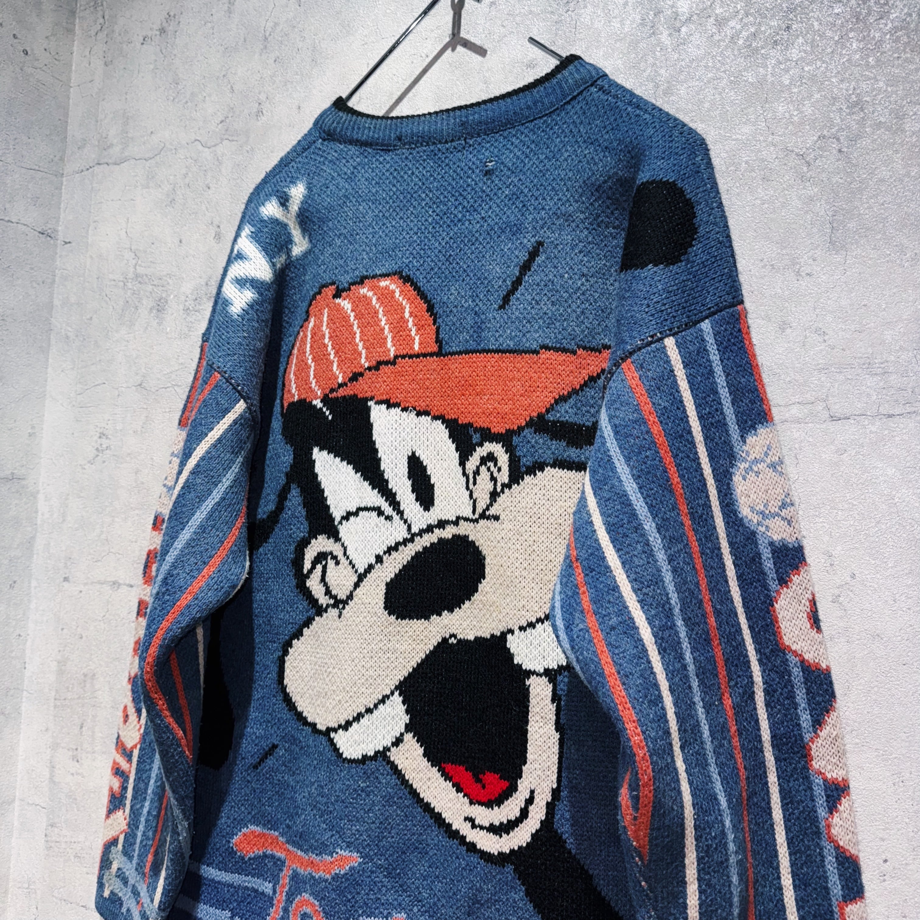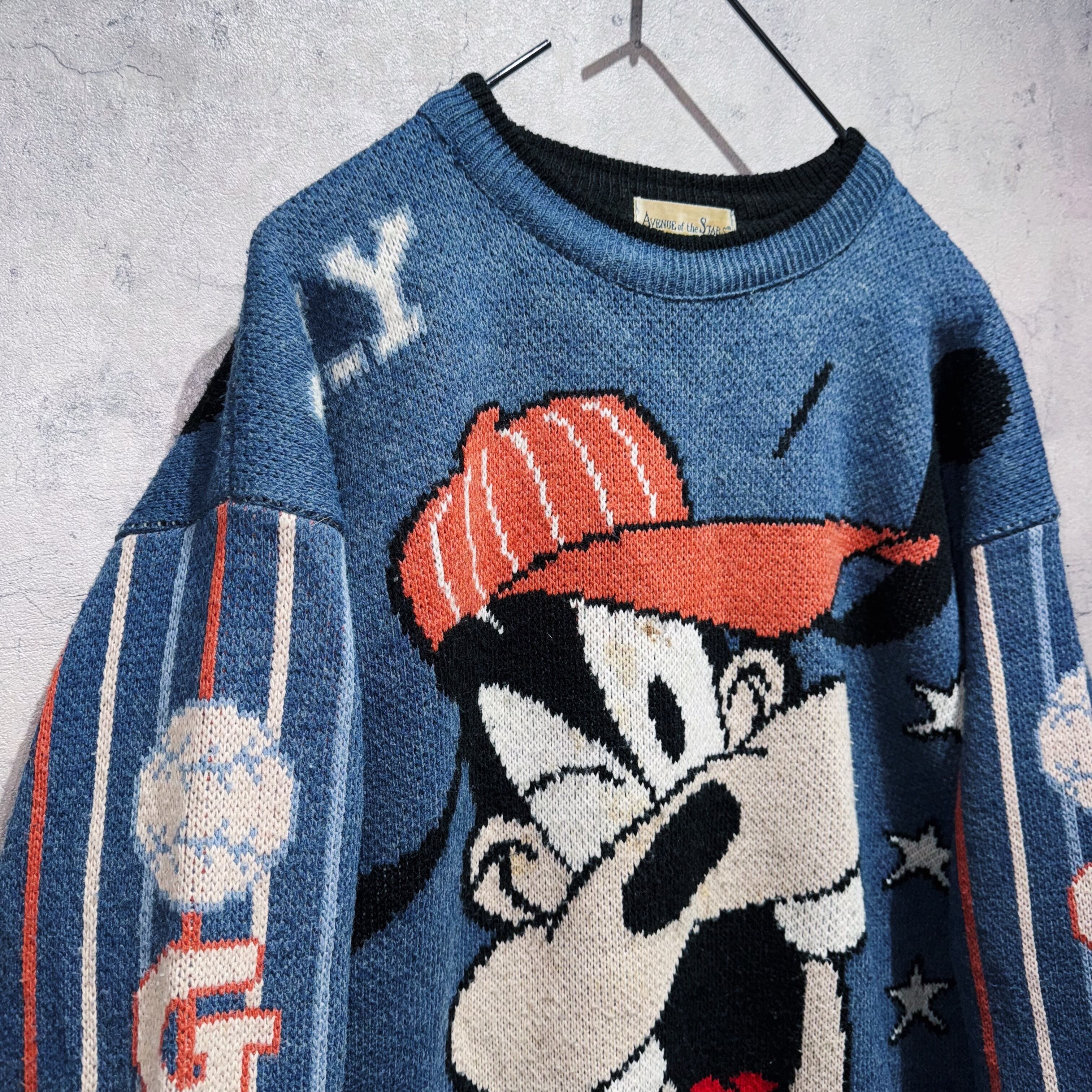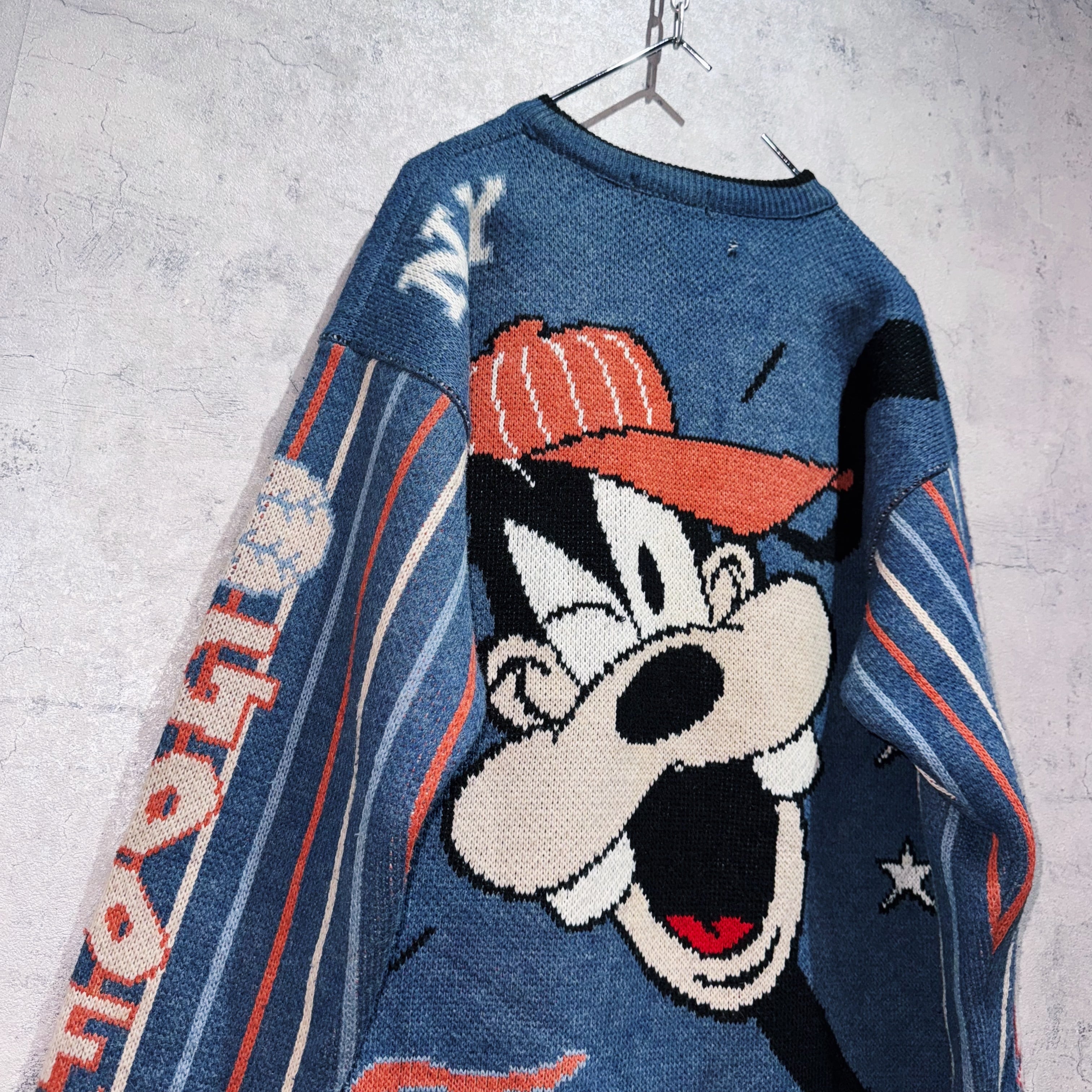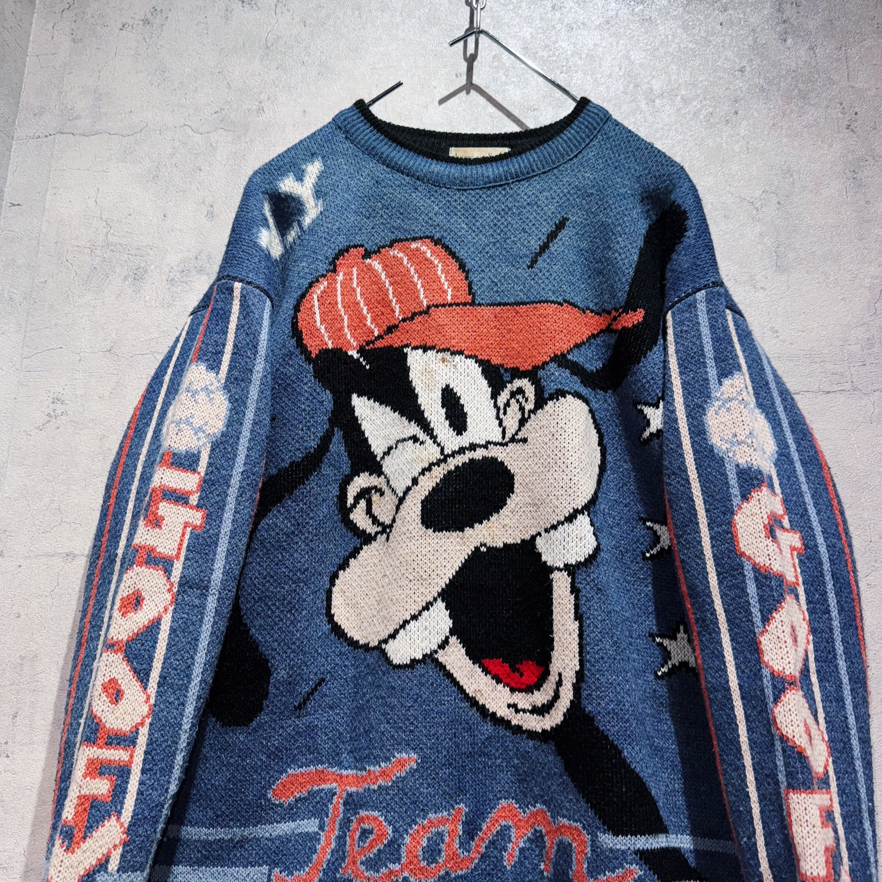 90年代"ディズニー"グーフィーベースボールデザインプルオーバーニット