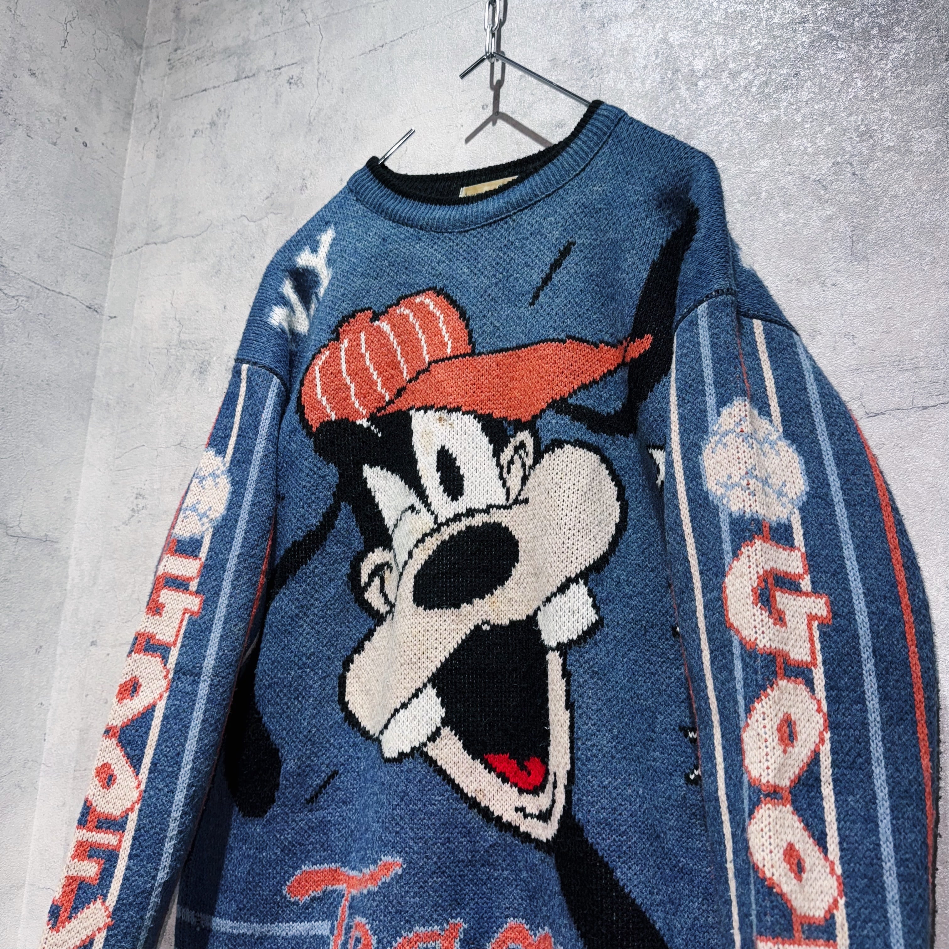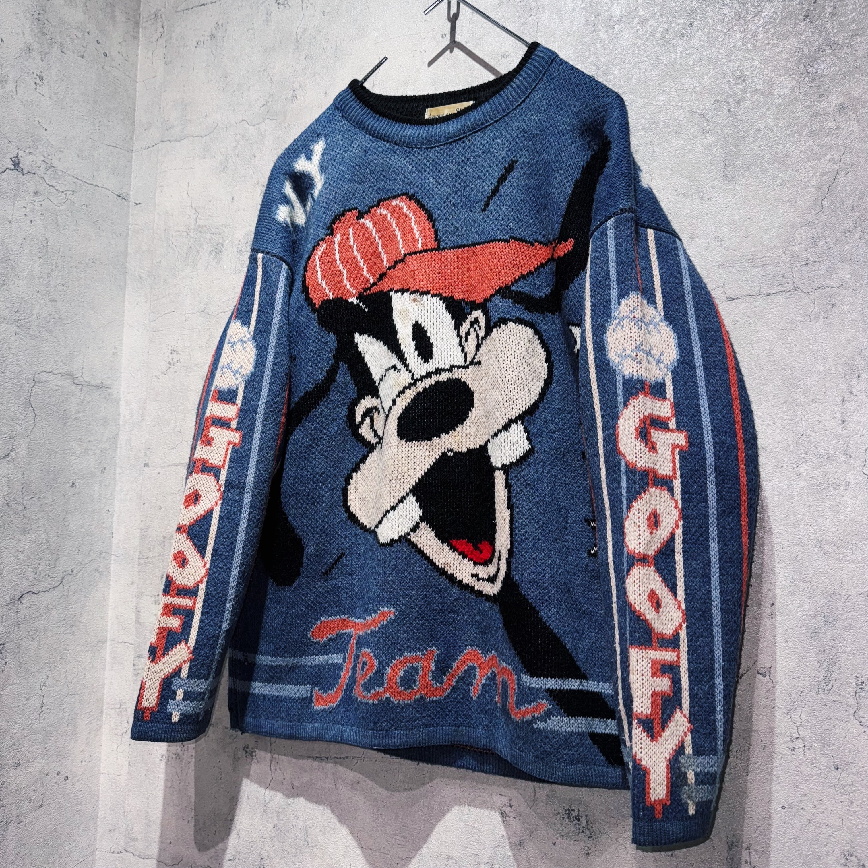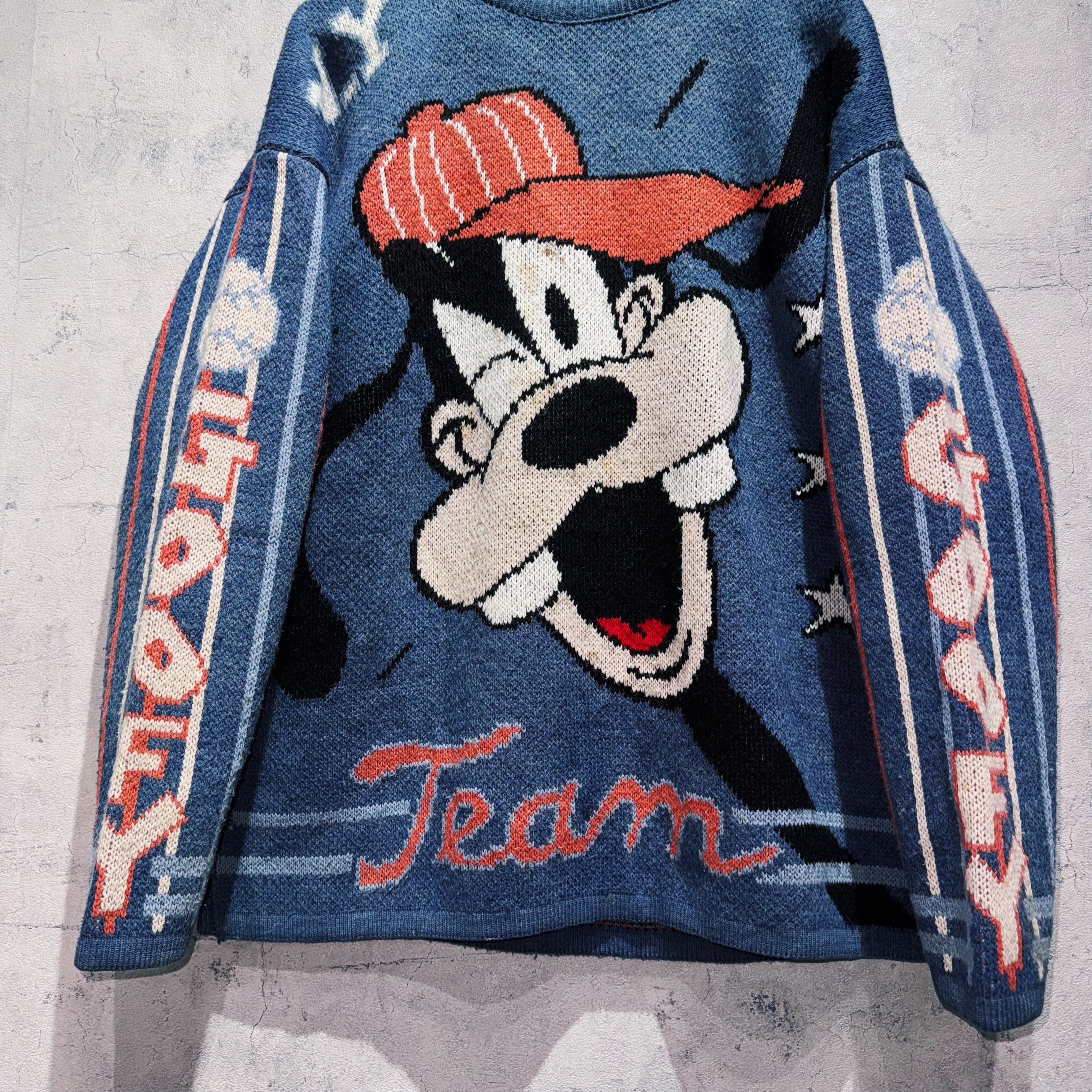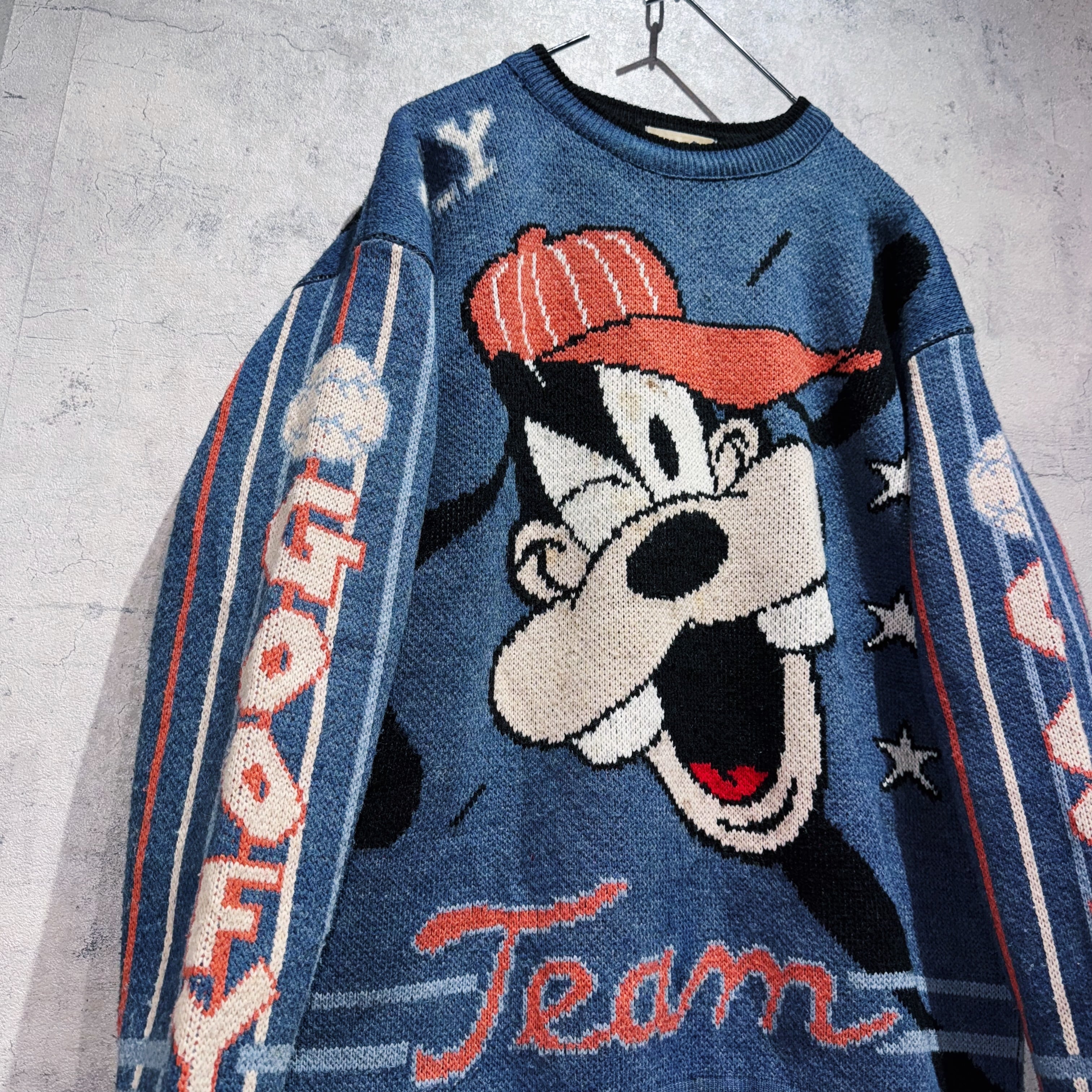 90年代"ディズニー"グーフィーベースボールデザインプルオーバーニット