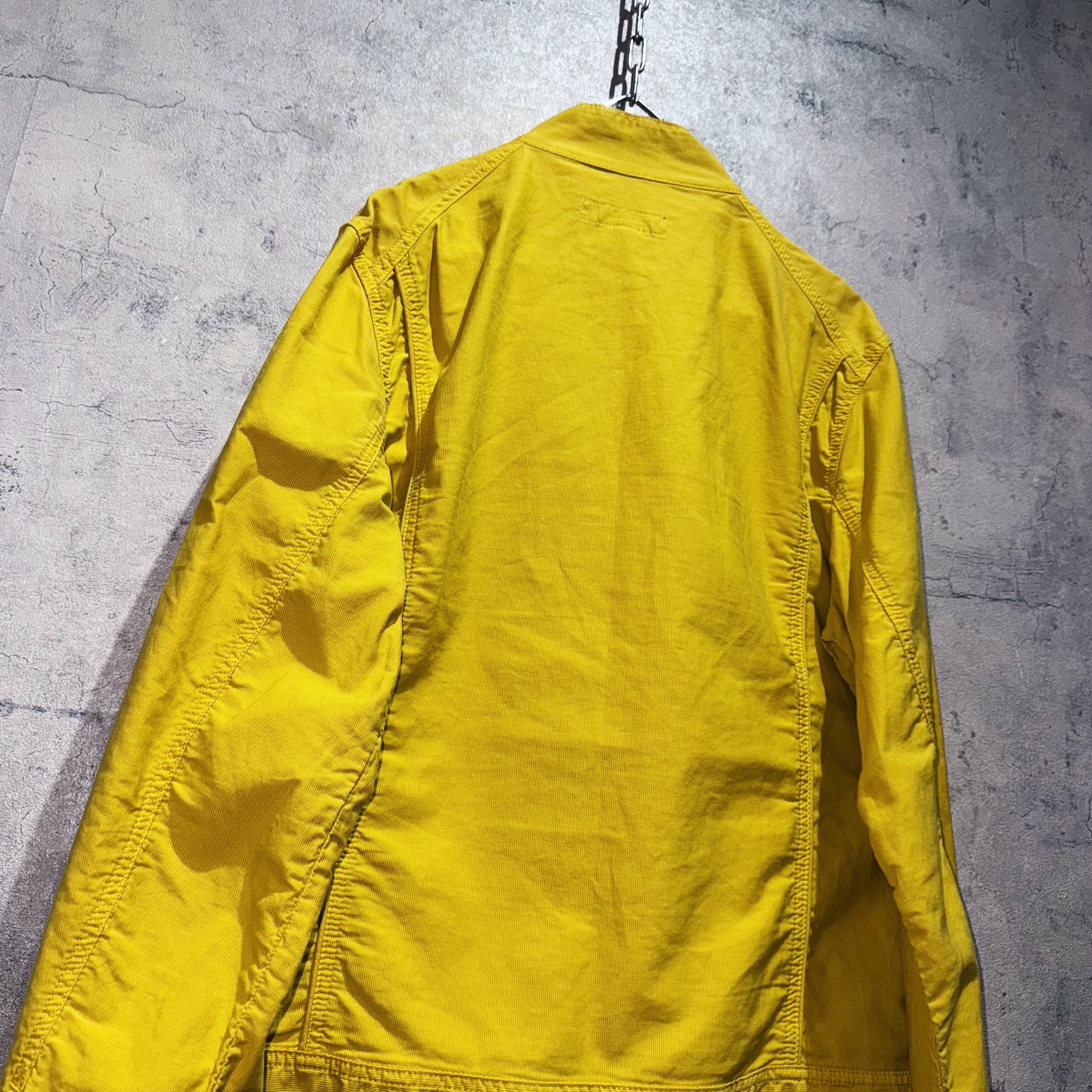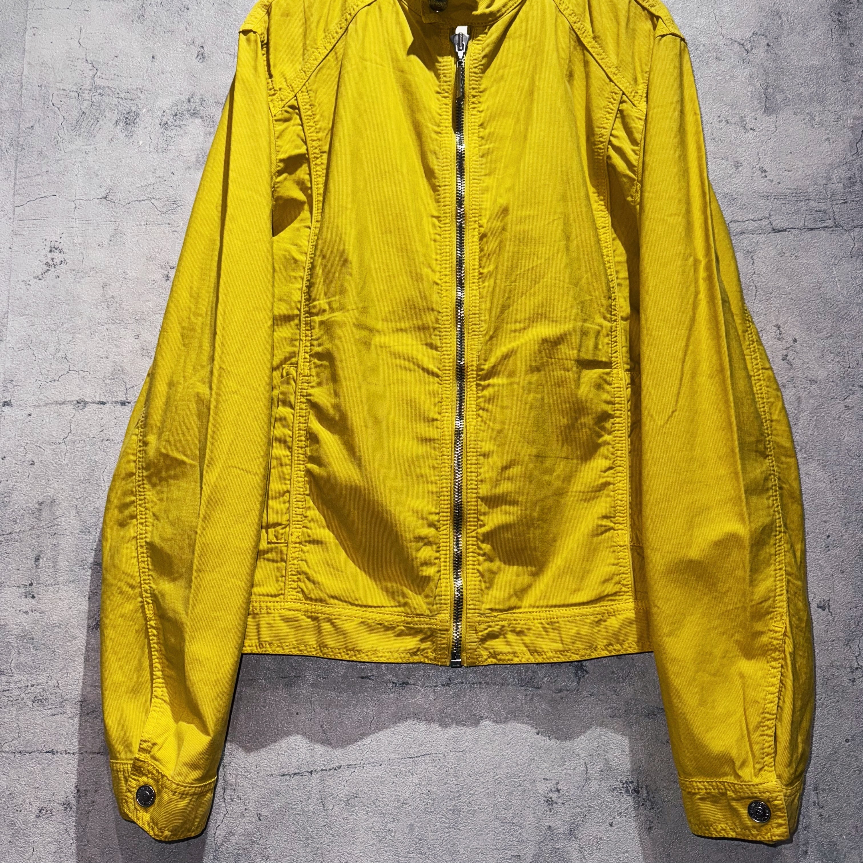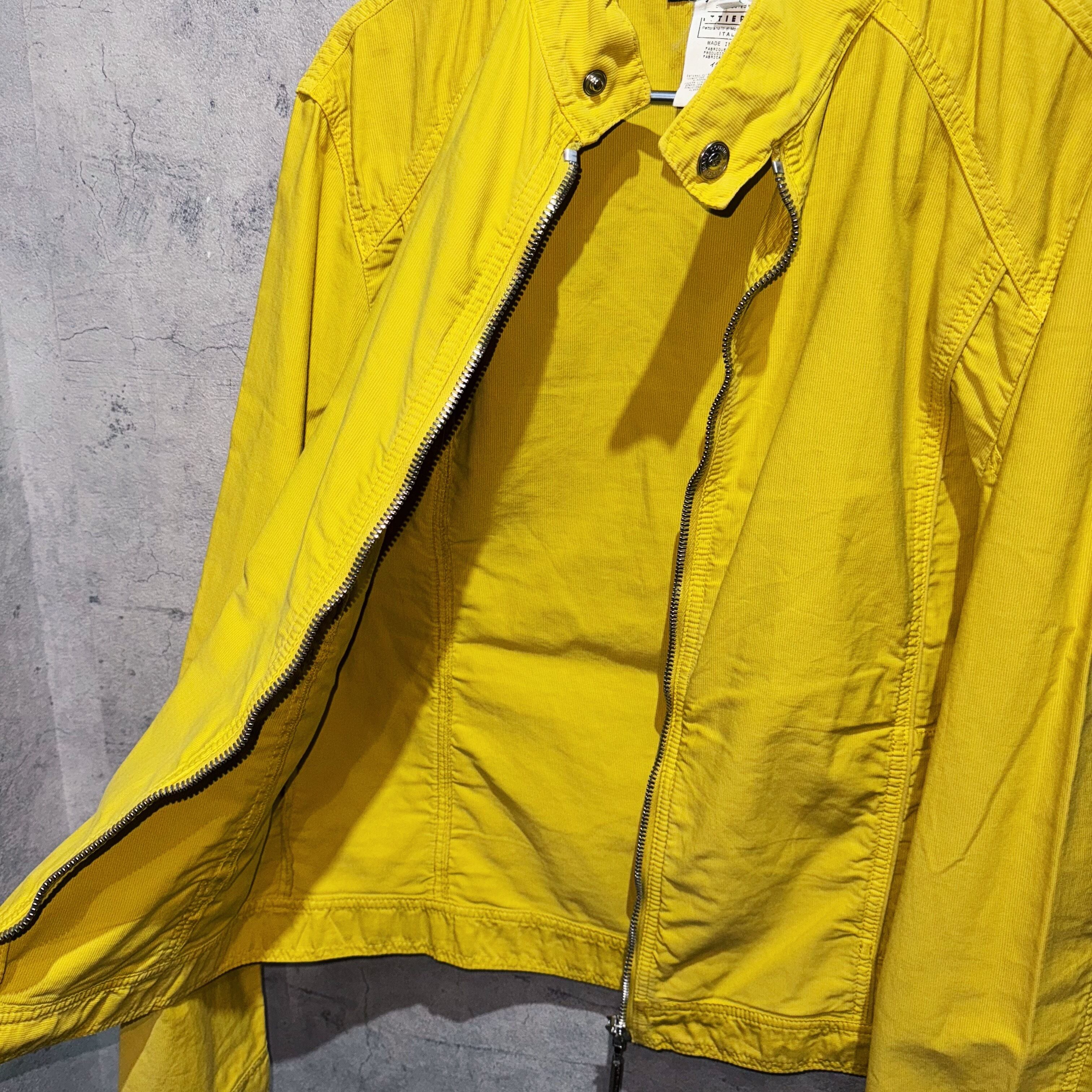 今回はヴェルサーチのカジュアルラインからの1着。非常に発色のいいクロムイエローカラーを身に纏ったシングルライダースジャケット。