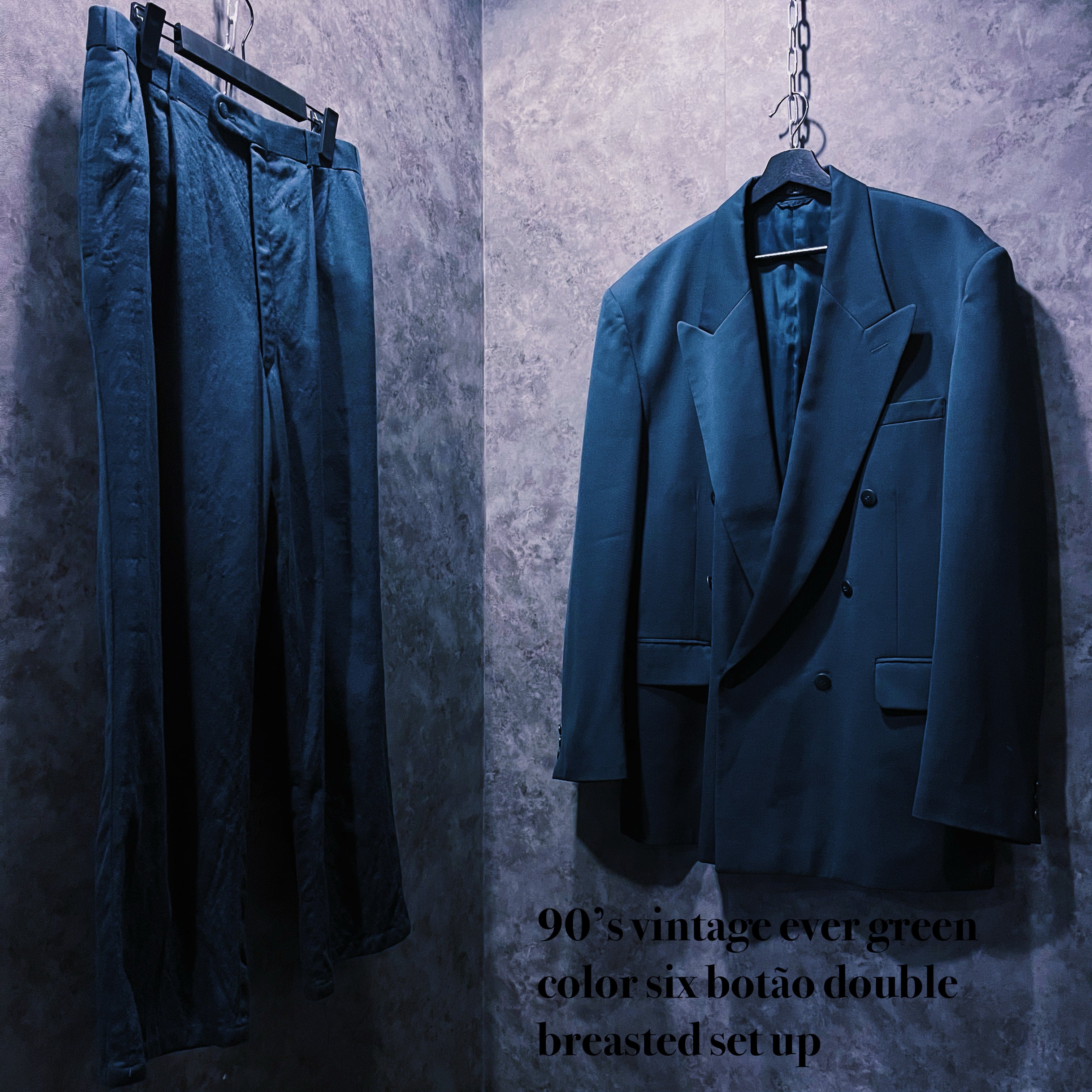 【doppio】90’s vintage ever green color six botão double breasted set up