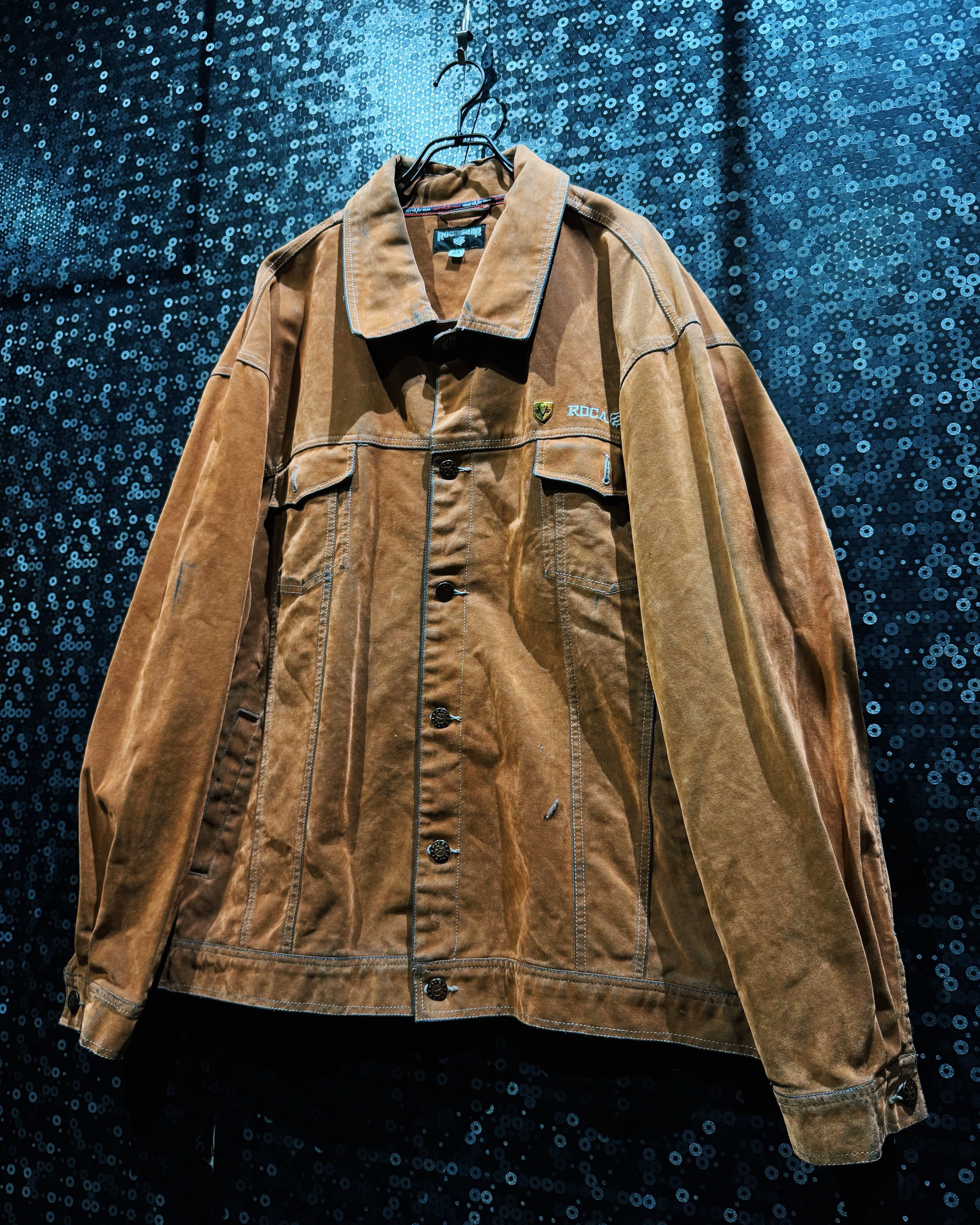 ブラウンのフェード感は経年による自然なエイジングで、ヴィンテージライクな深みを演出。オーバーサイズのシルエットが00年代らしいストリートスタイルを再現し、スウェットやレザーパンツとの相性も抜群。NYストリートの“リアル”を感じさせる、ROCAWEAR黄金期の名作ワークジャケット。