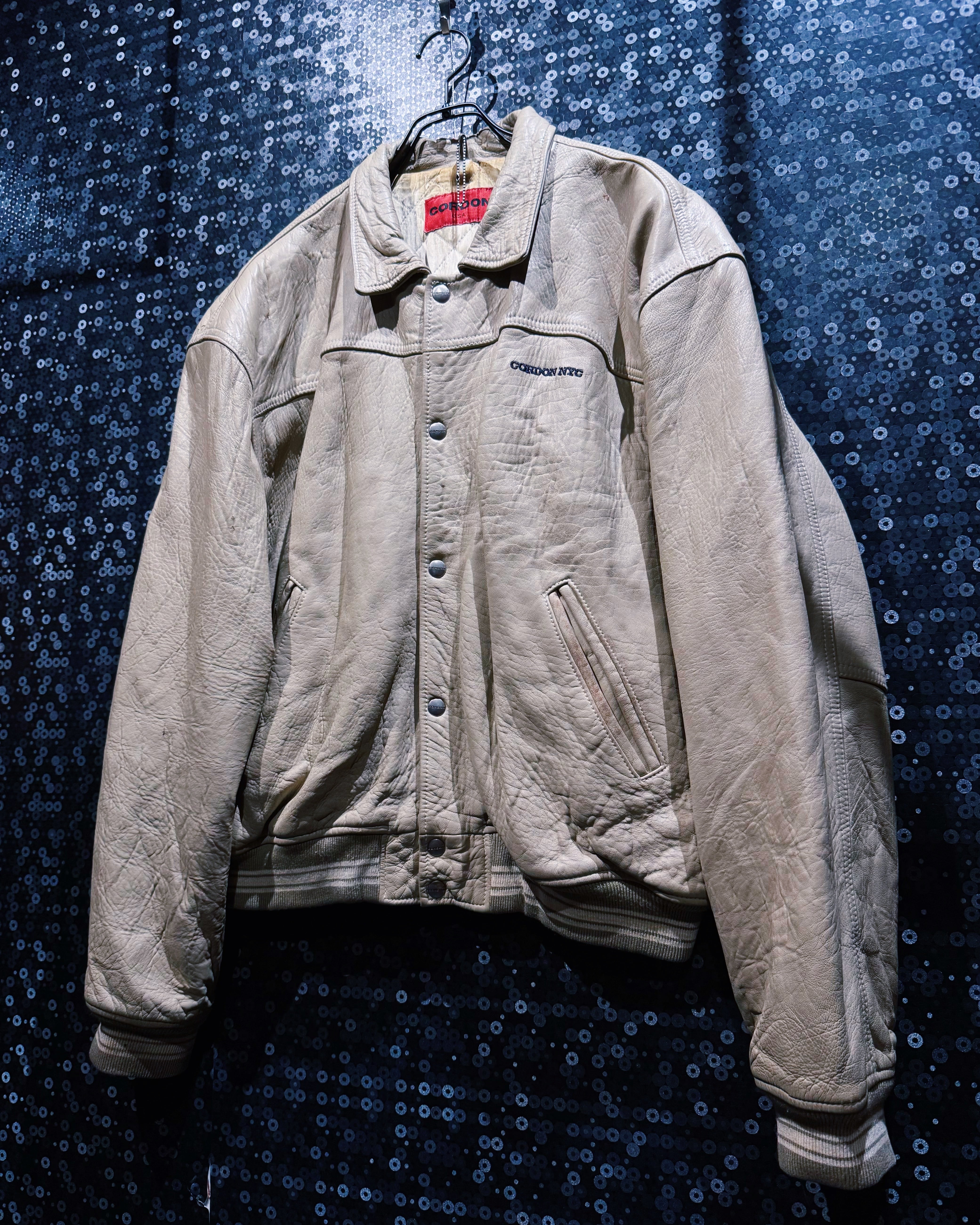 ヴィンテージカウレザークラシックベージュカラーボンバージャケット