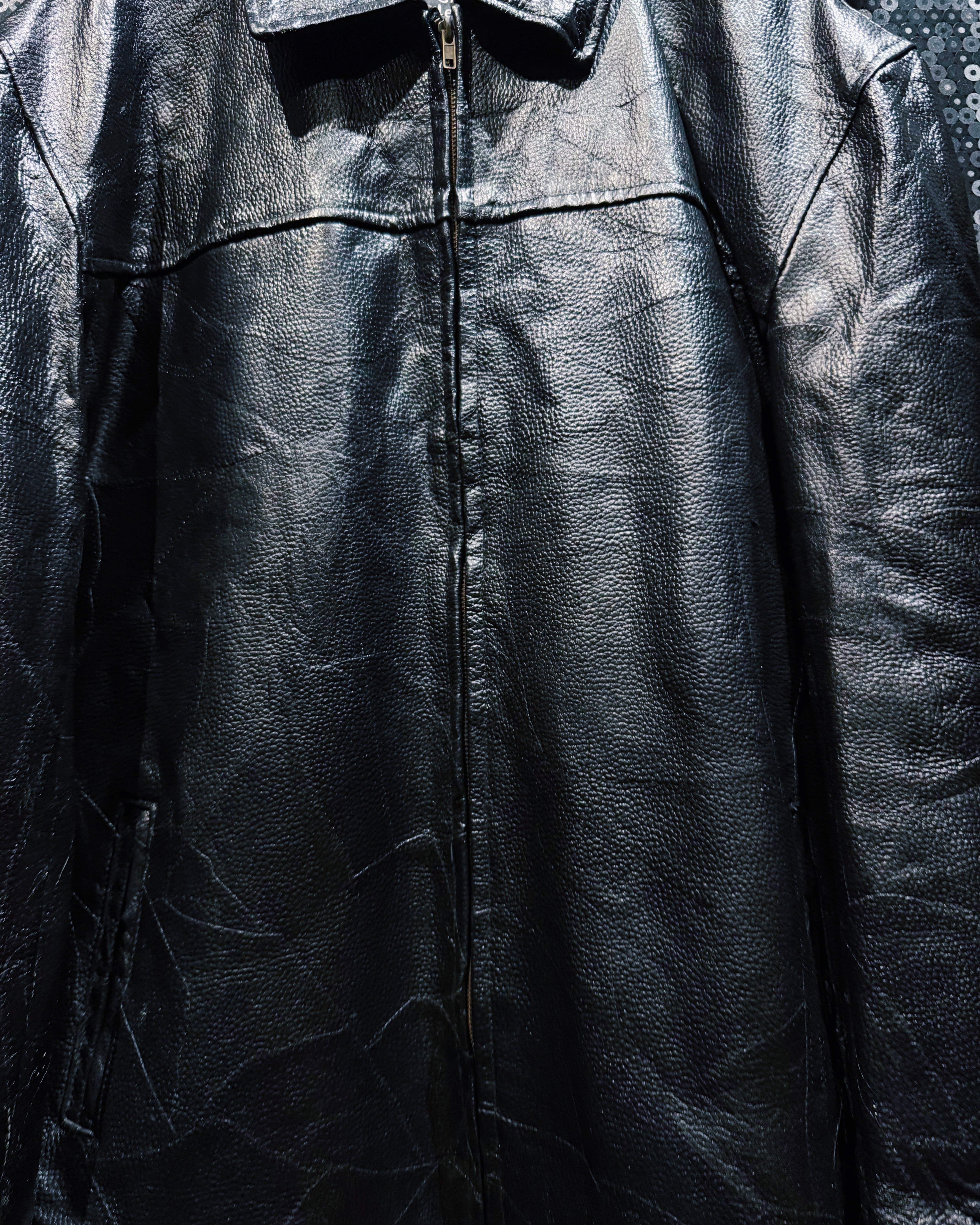 写真からでも伝わってくるような美しい独特の光沢を身に纏い、無骨さと品格さを兼ね備えた質実剛健を我が身とする上質なリアルレザーを採用したレザージャケット。ボディ全体にはステッチワークをあしらうことで立体感と重厚感を演出。