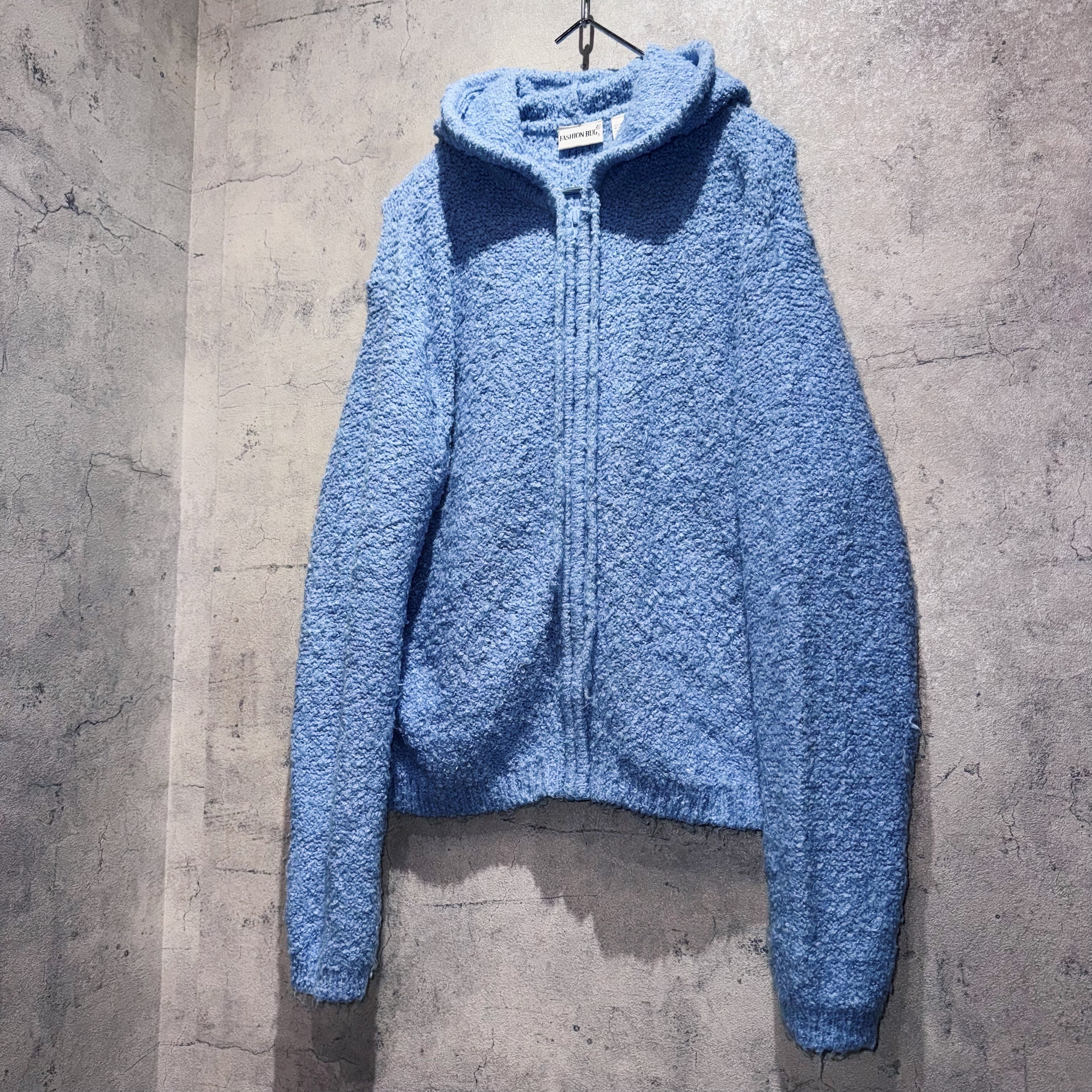 ベイビーブルーカラーボアマテリアルジップアップフーディー