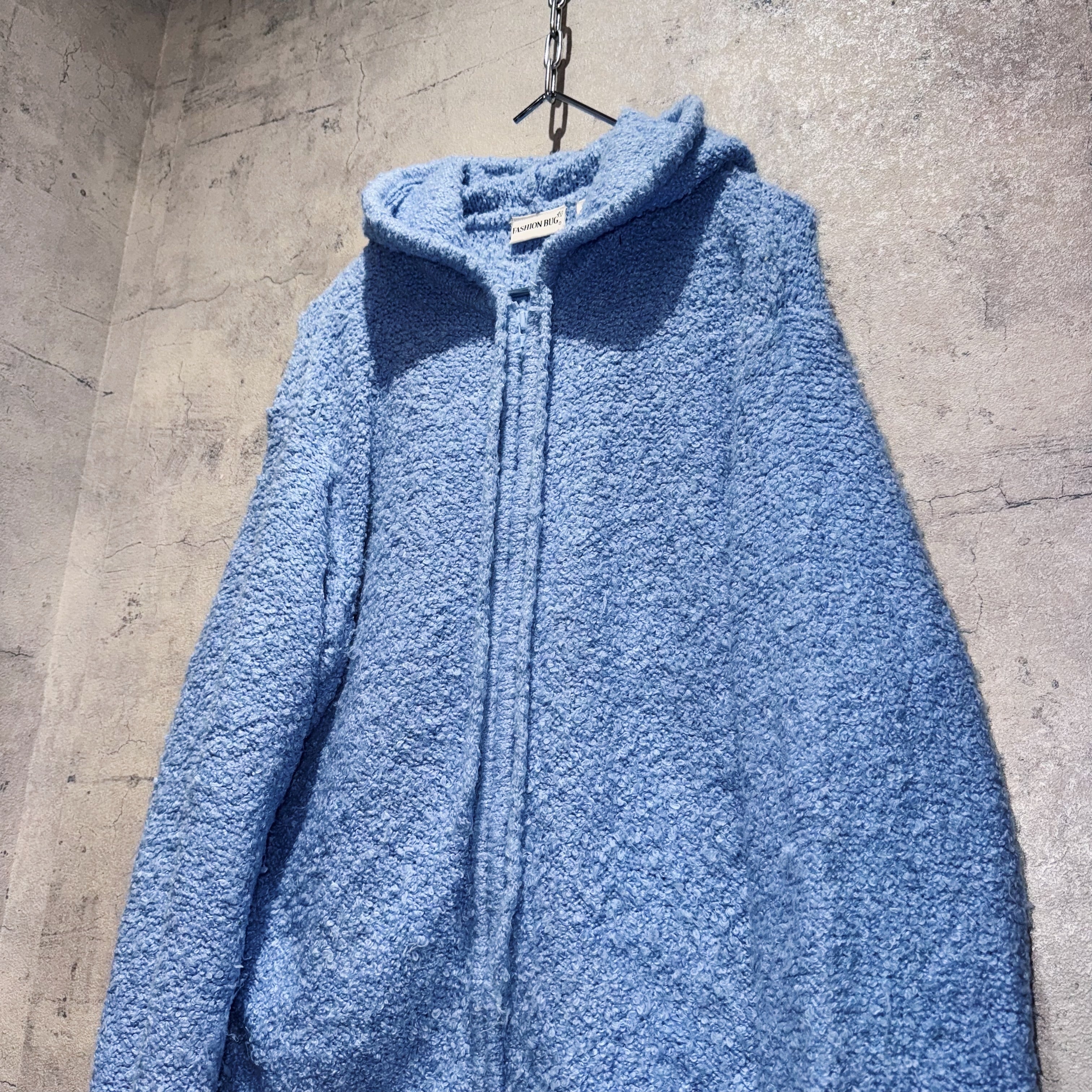色鮮やかなベイビーブルーに身を包んだ、色合いがグッドなジップフーディー。ボア素材のモッフモフの素材を採用し、柔らかみもあり秋冬に最適な素材を採用しています。