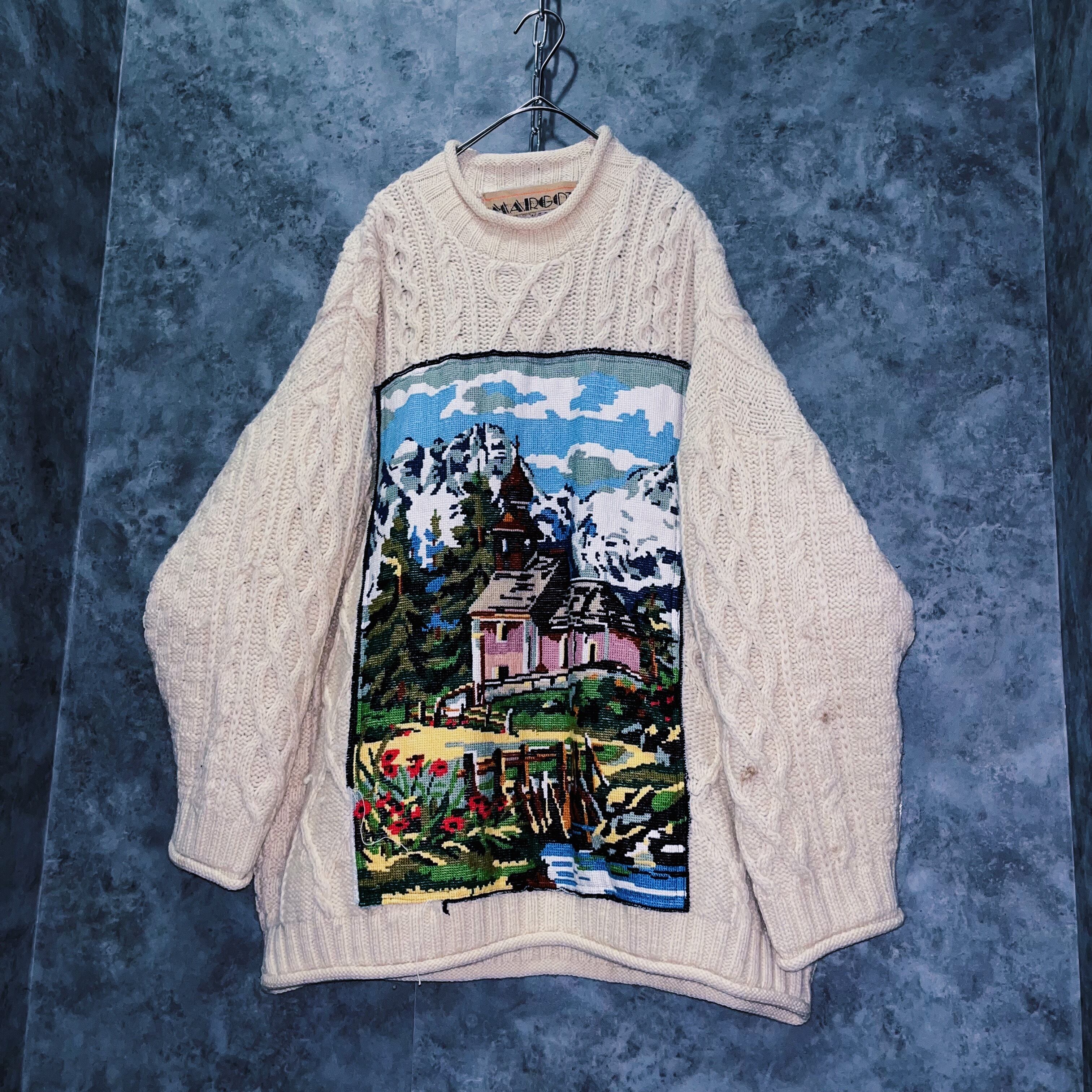 ヴィンテージヨーロピアンアンティークラグデザインプルオーバーニット