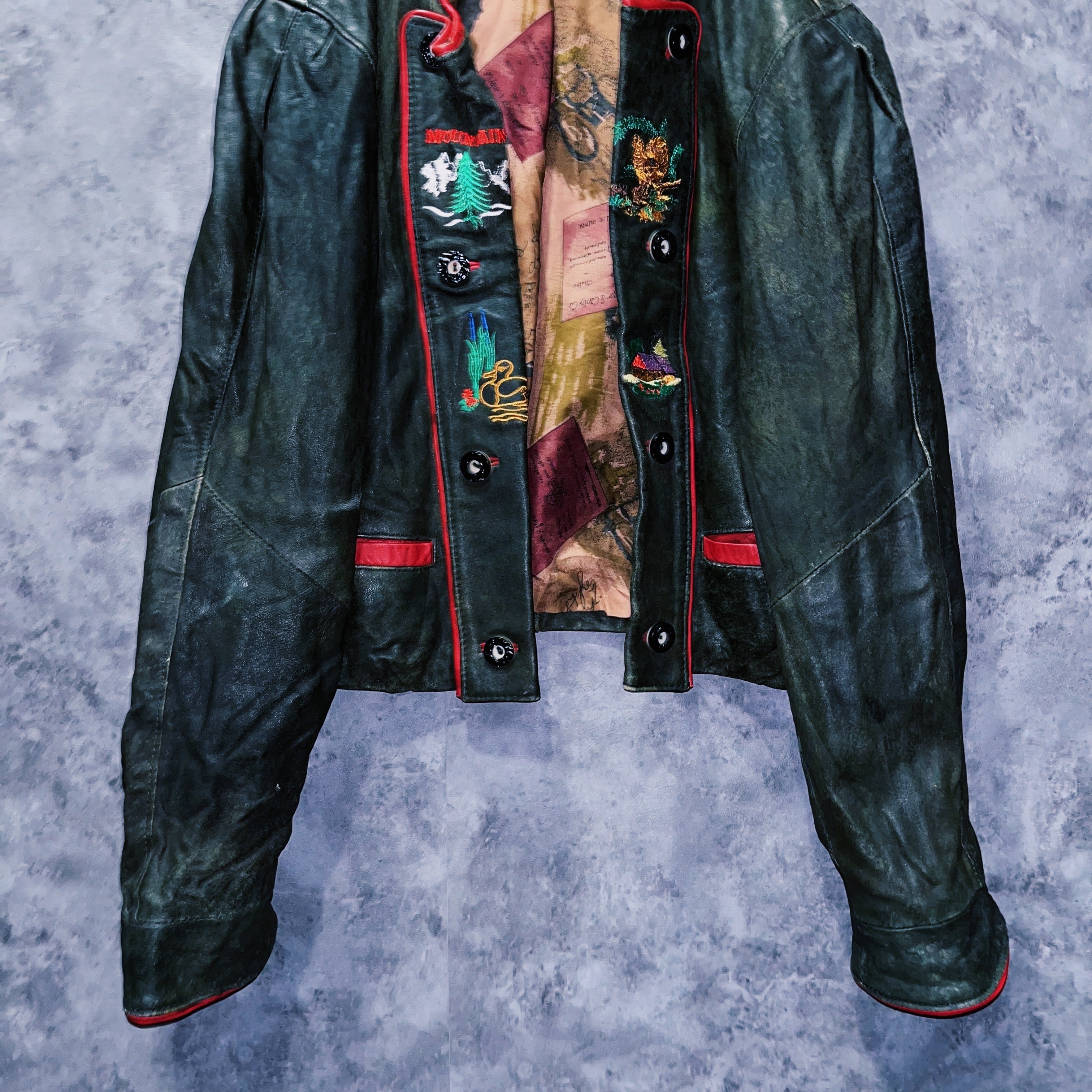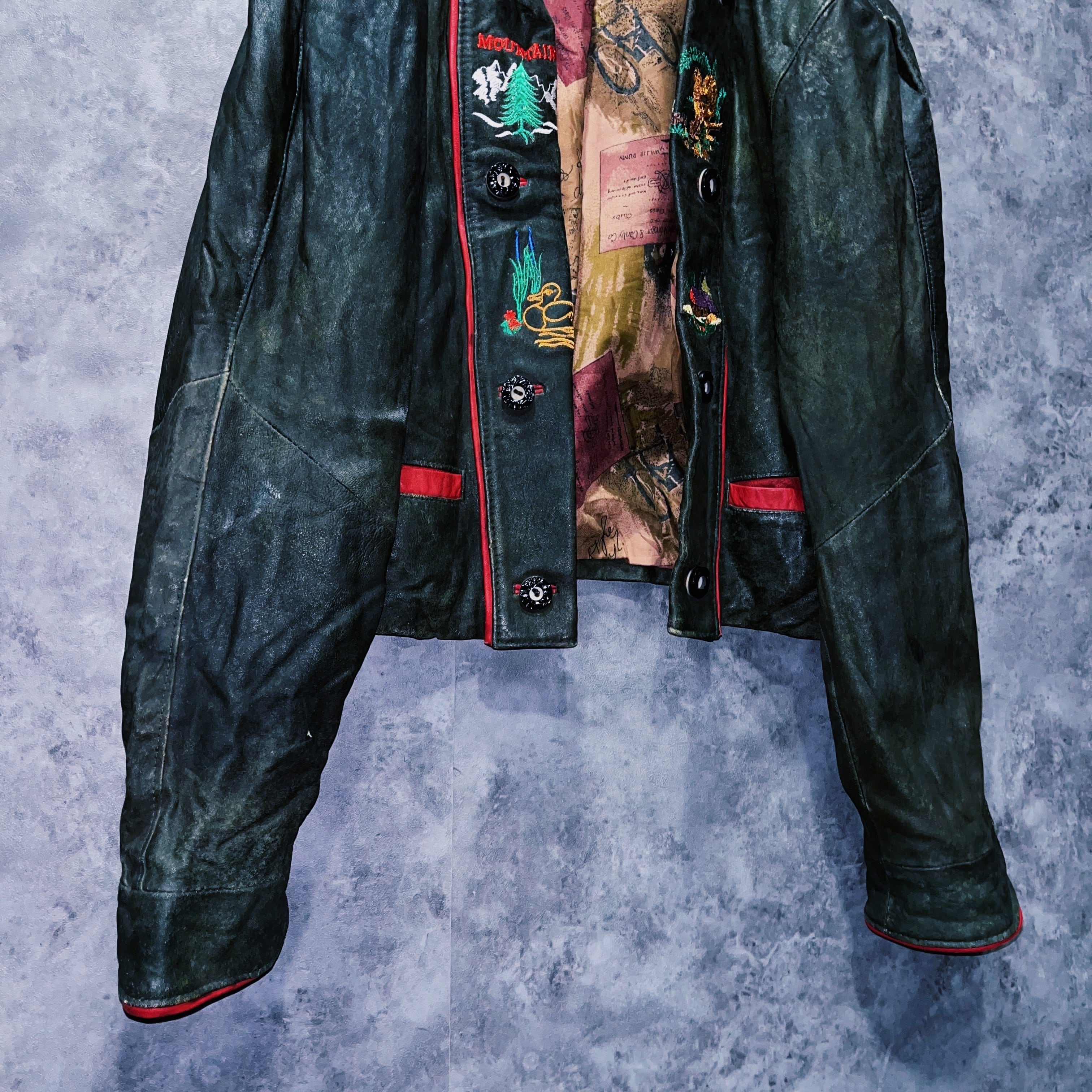 ユーロヴィンテージ“チロリアン”エスニックエンブロイダリーデザインクロップドレザージャケット