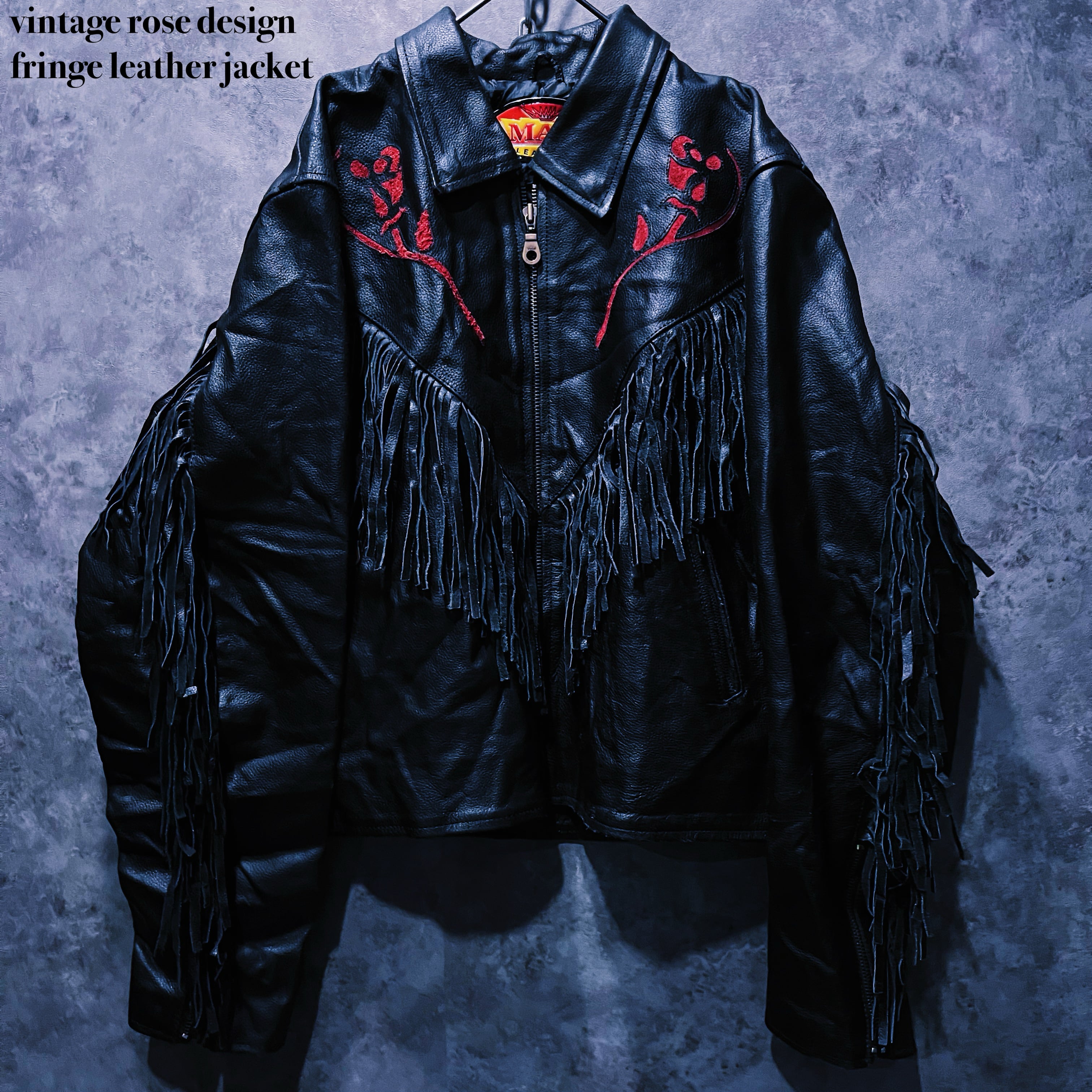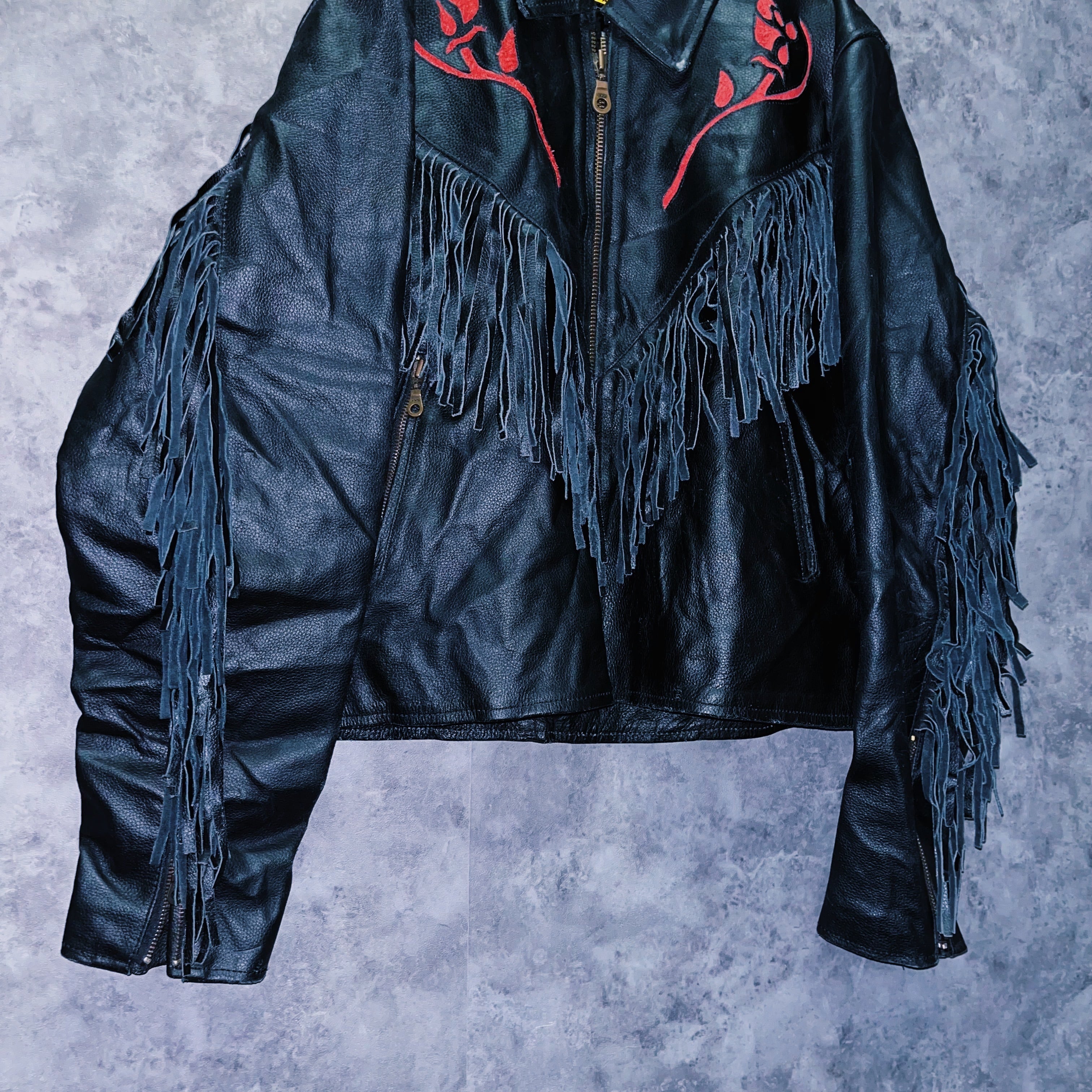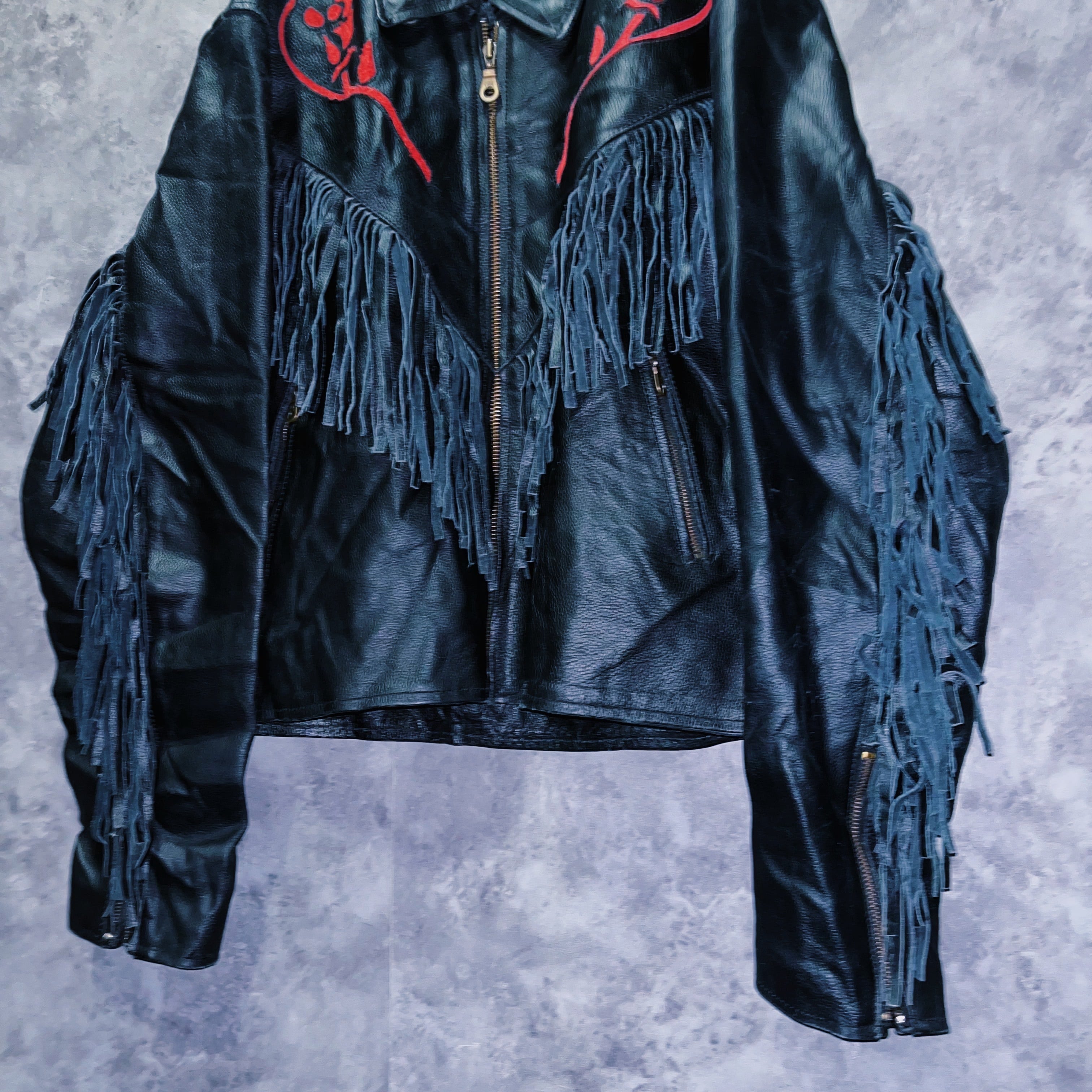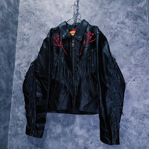 全体にフリンジを施した華やかなデザインのレザージャケット。
