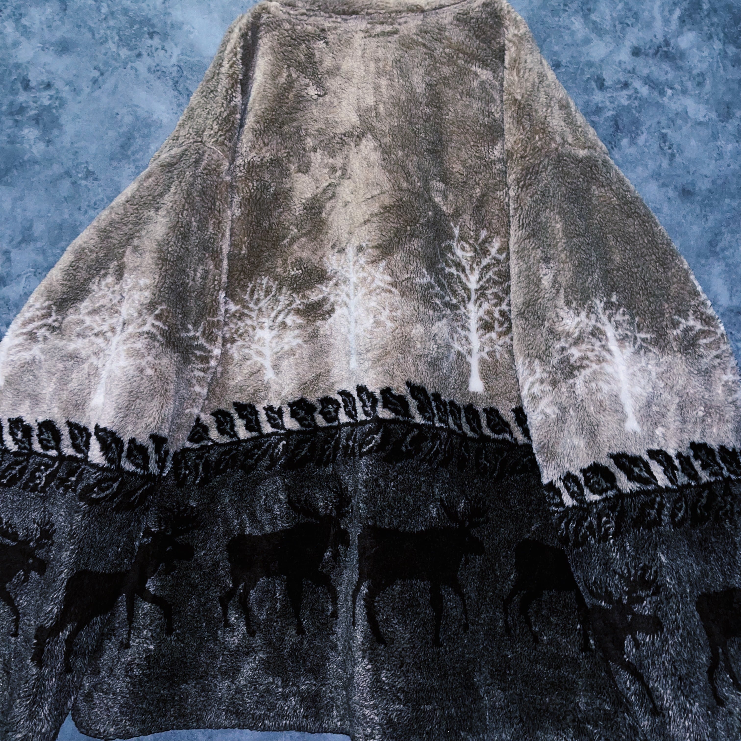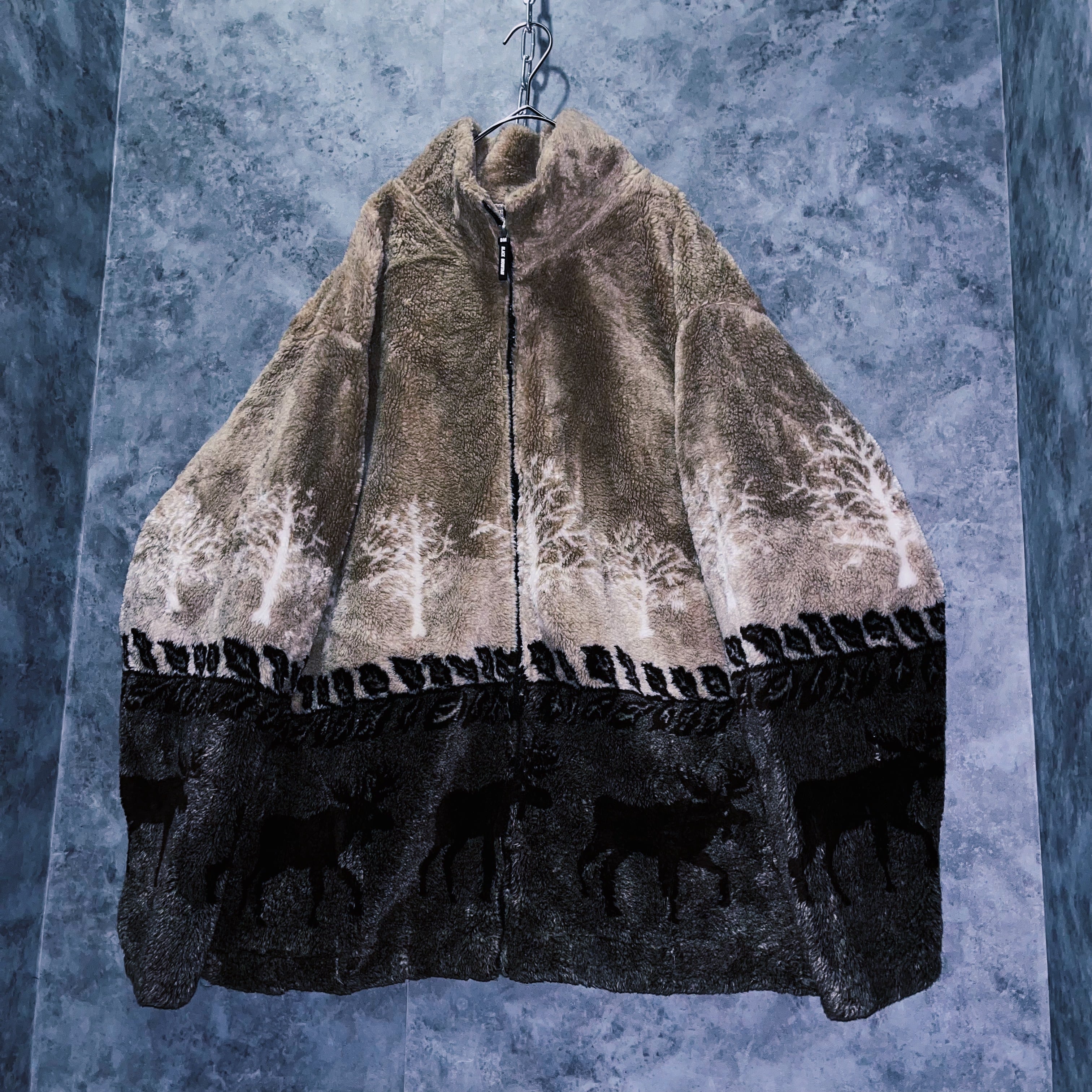【doppio】vintage pack of reindeers design zip up fleece jacket