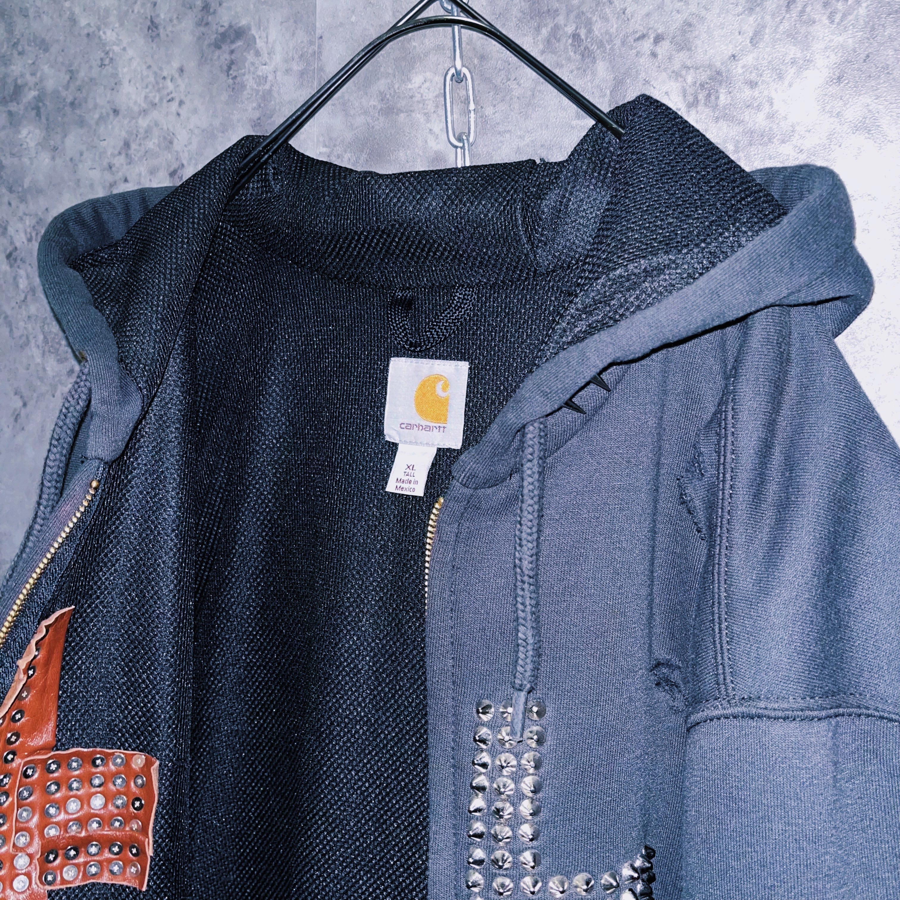 ヴィンテージ“Carhartt”クロススタッズデザインボロカスタムジップアップフーディ