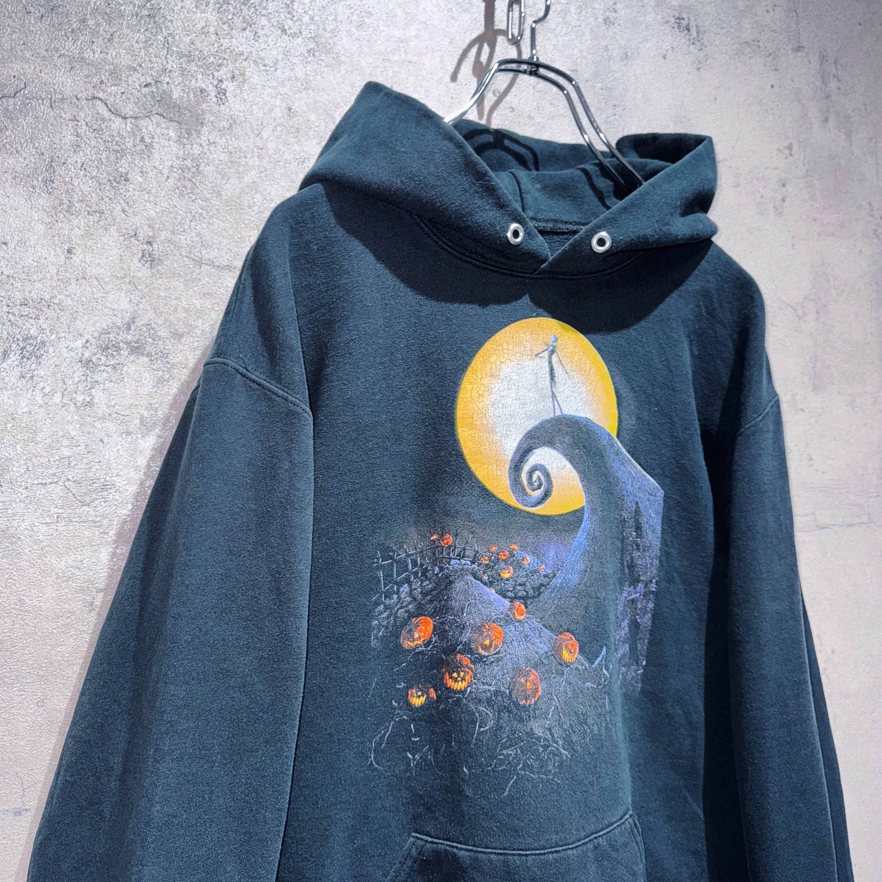 ハロウィンタウンの住人たちが繰り広げる騒動を美しい映像と歌で描いたストップモーションアニメ”The Nightmare Before Christmas”。今回はナイトメアのデザインといえばの月を背景にしたデザインで、Tシャツでもよく見られ、特に価格高騰が著しいです。今回はそんなデザインのプルオーバーフーディー。
