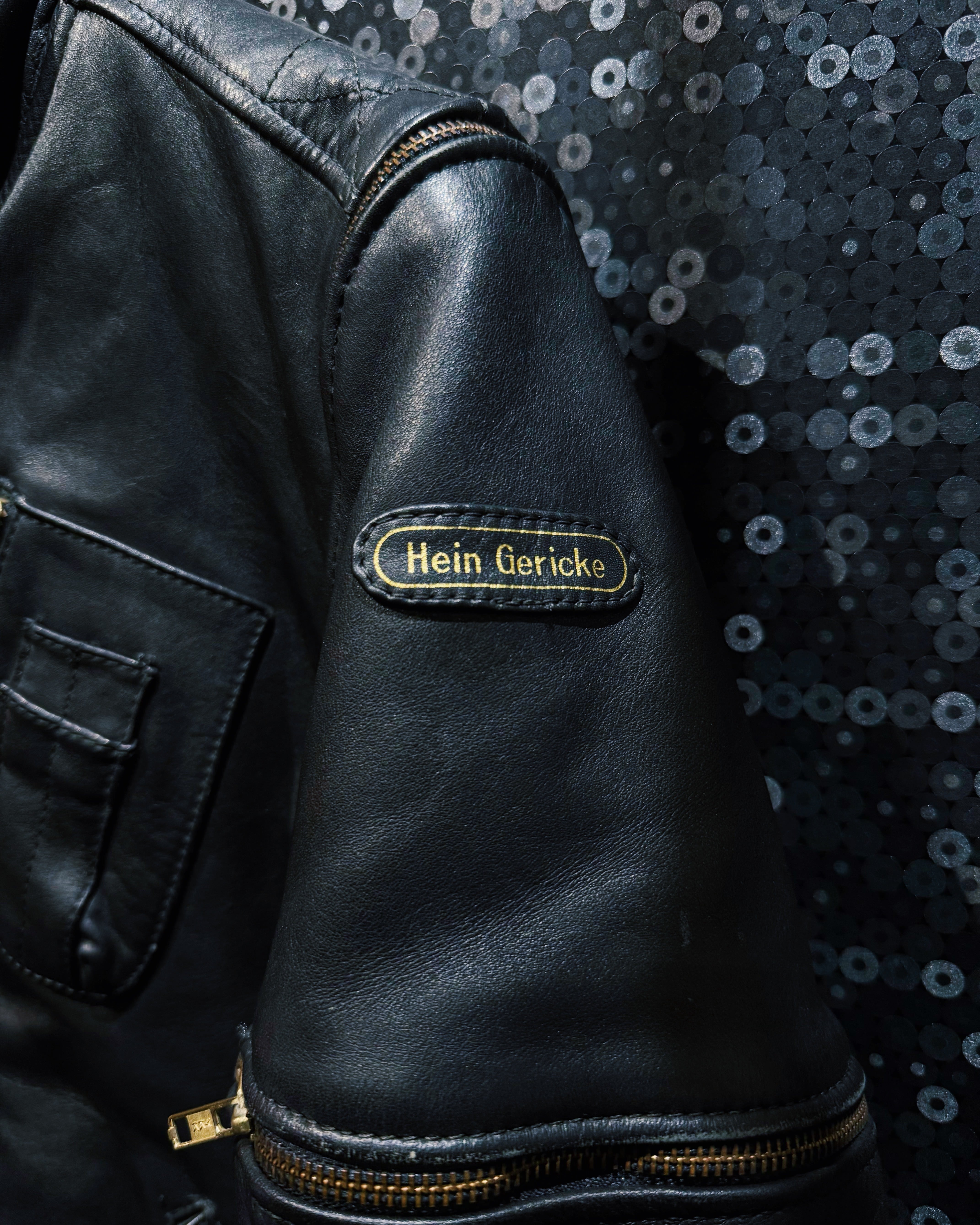 Hein Gerickeは1970年代からヨーロッパで高品質なライダースウェアを製造してきた老舗で、ドイツらしい堅牢な縫製技術と機能美が特徴。耐久性のある厚手レザーを使用しながらも、ライダーの動きを計算したパターンメイキングが際立つ。ヴィンテージ市場でも高い評価を受ける逸品で、実用性と美しさを兼ね備えた“プロ仕様のクラシックレザー”。
